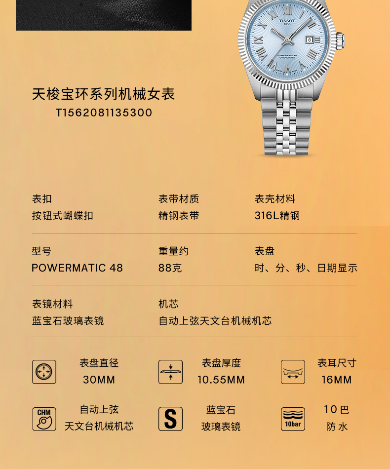 【New Product】Tissot Official Baohuan Series Chronometer Certified Mechanical Women's Watch