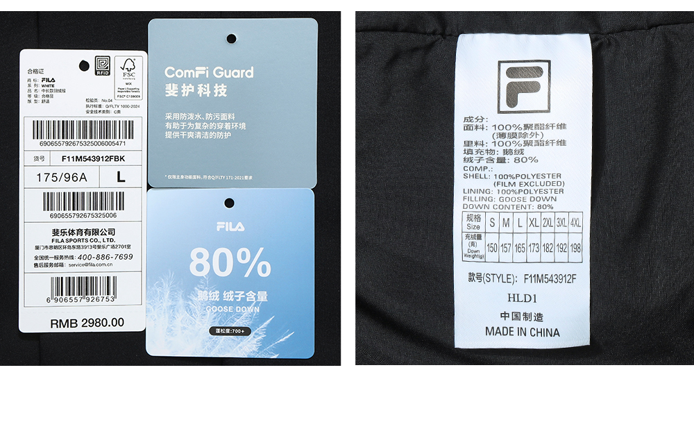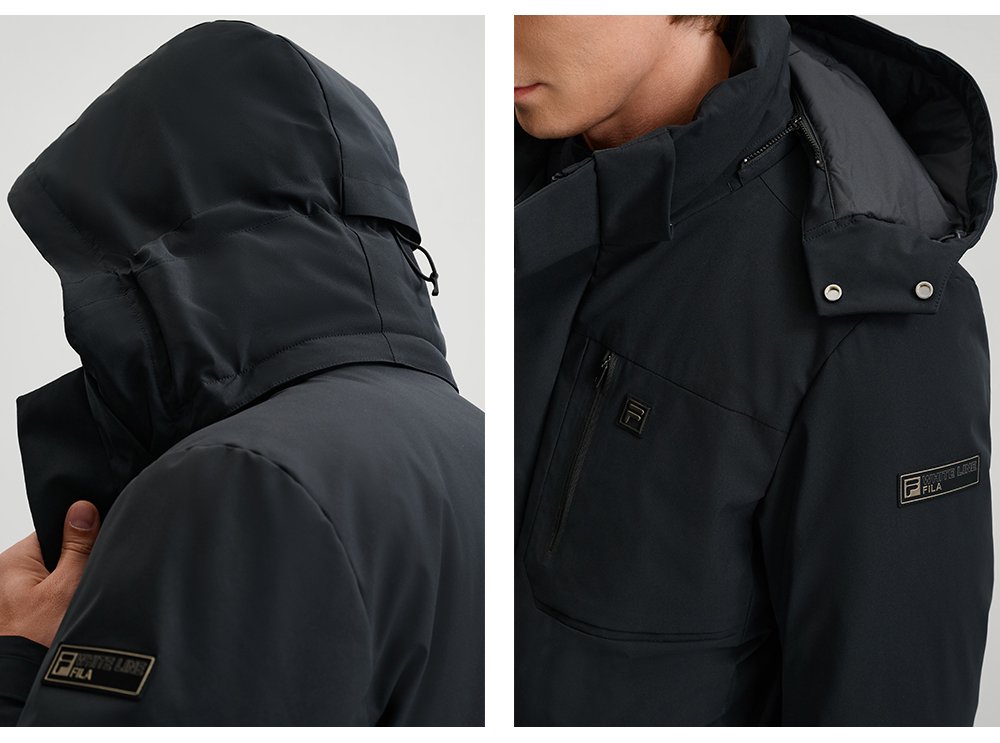 Goose down Fila Men's Mid-Length down Jacket 2025 Winter New Business Style Comfortable Warm Hooded Coat