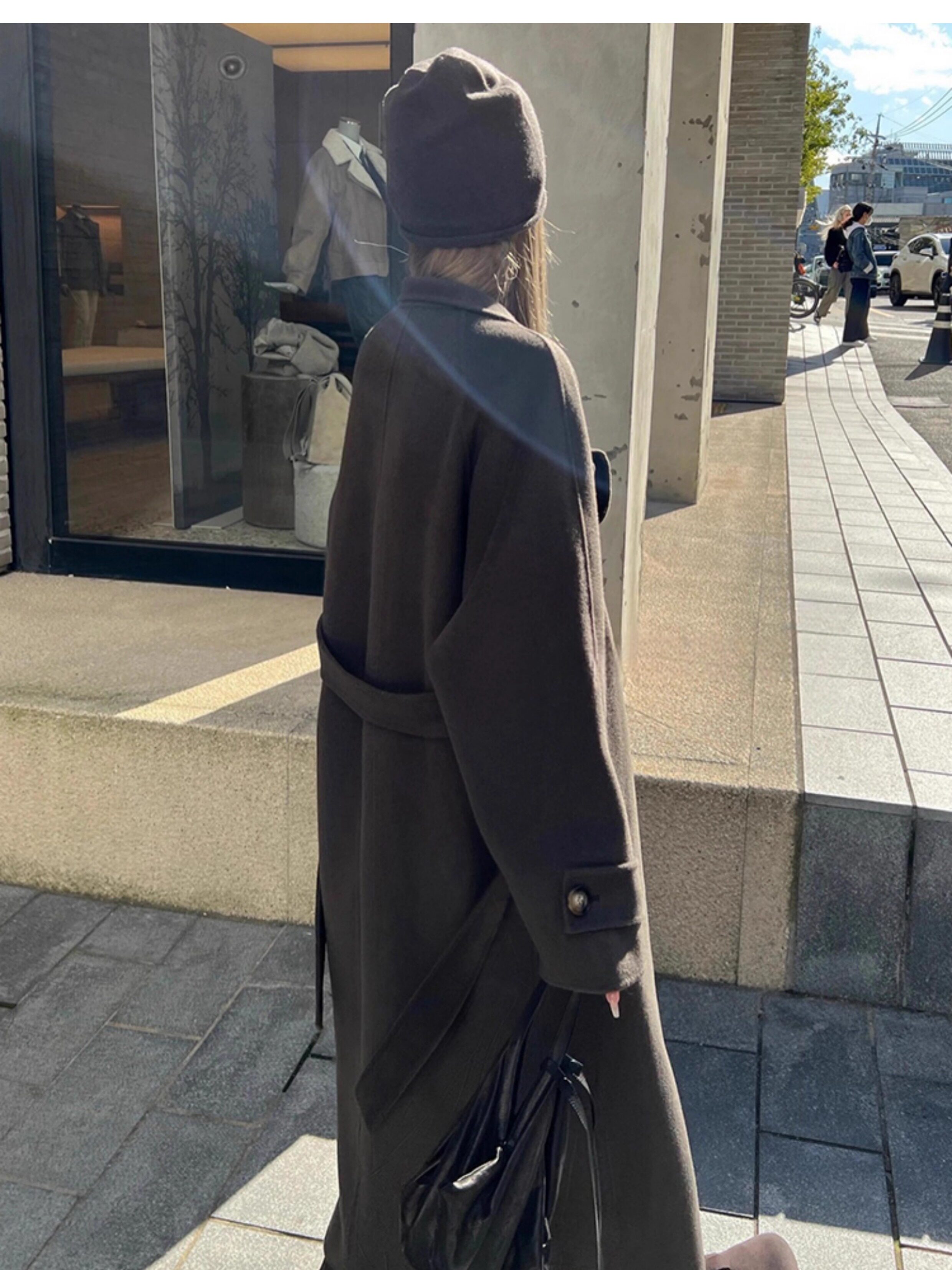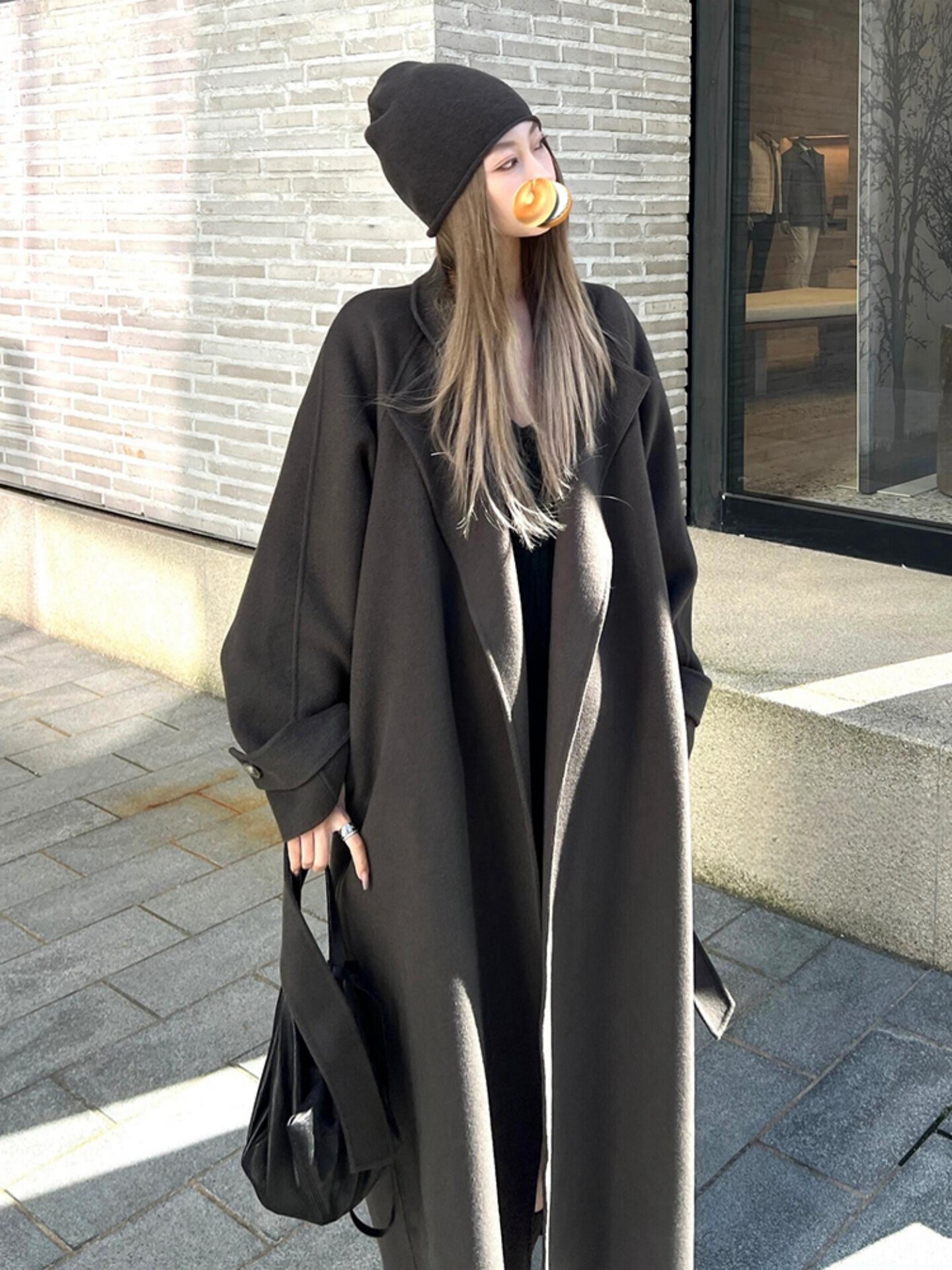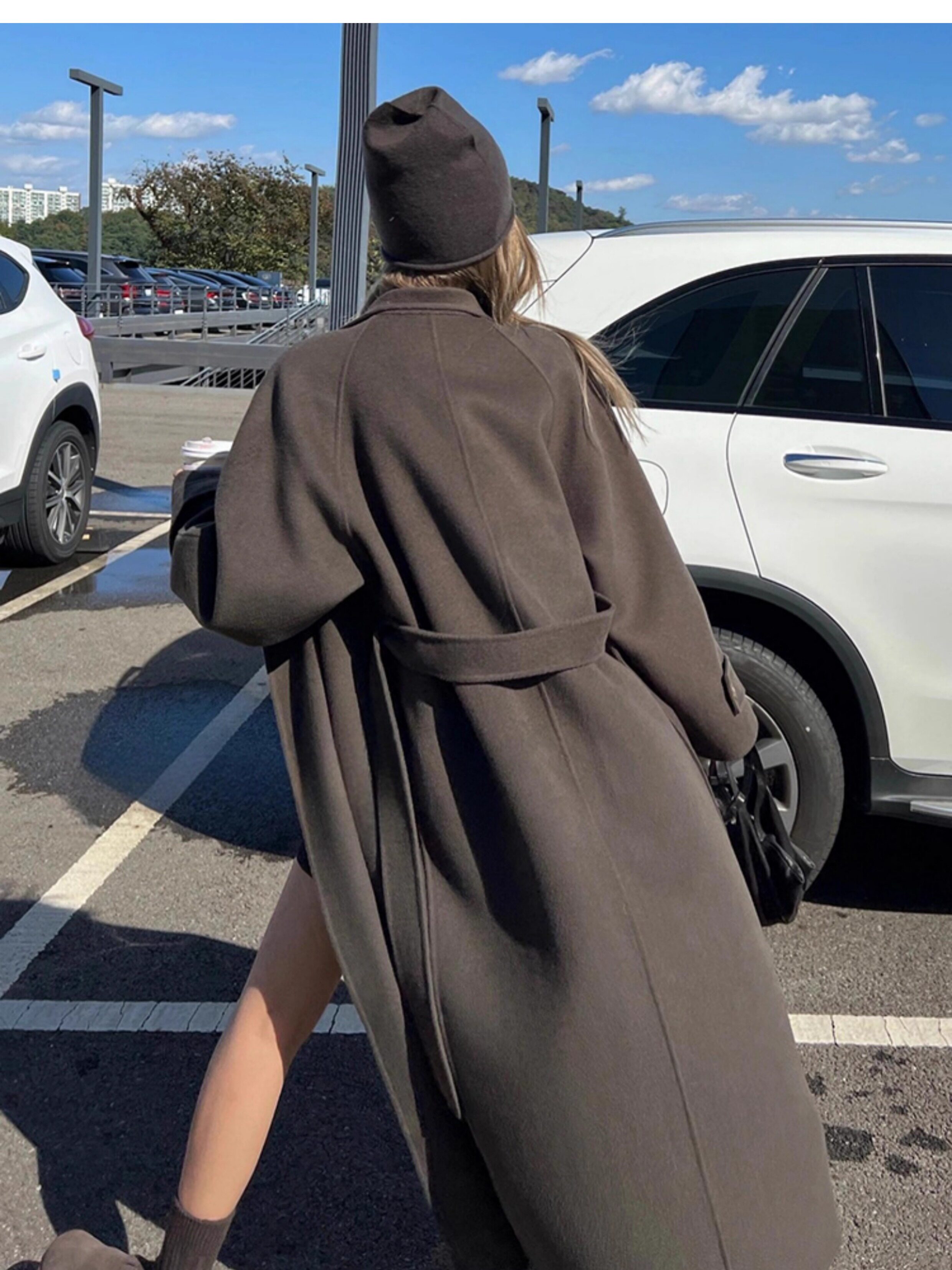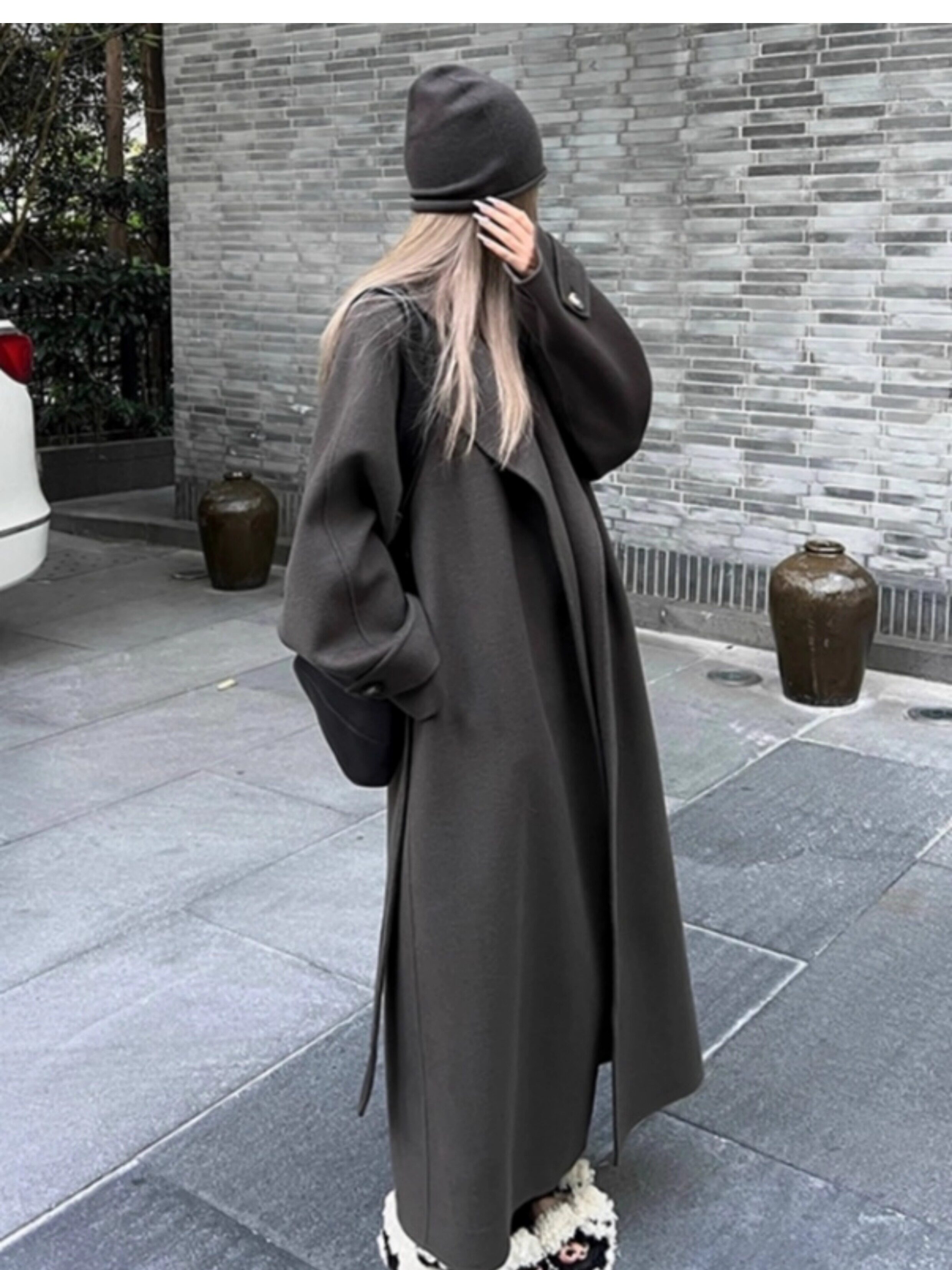 Double-Sided Cashmere Coat for Women 2025 Winter New Style Elegant Korean Style High-End Loose Lace-Up Mid-Length Woolen Coat