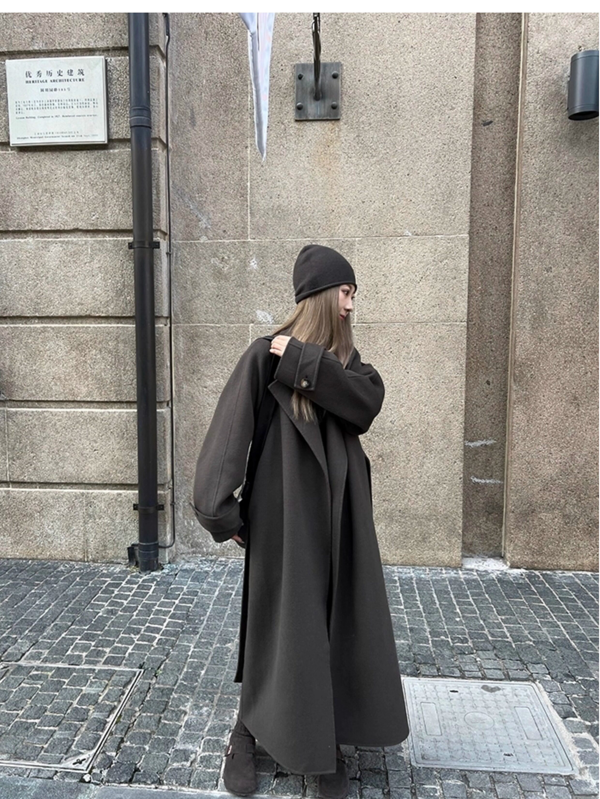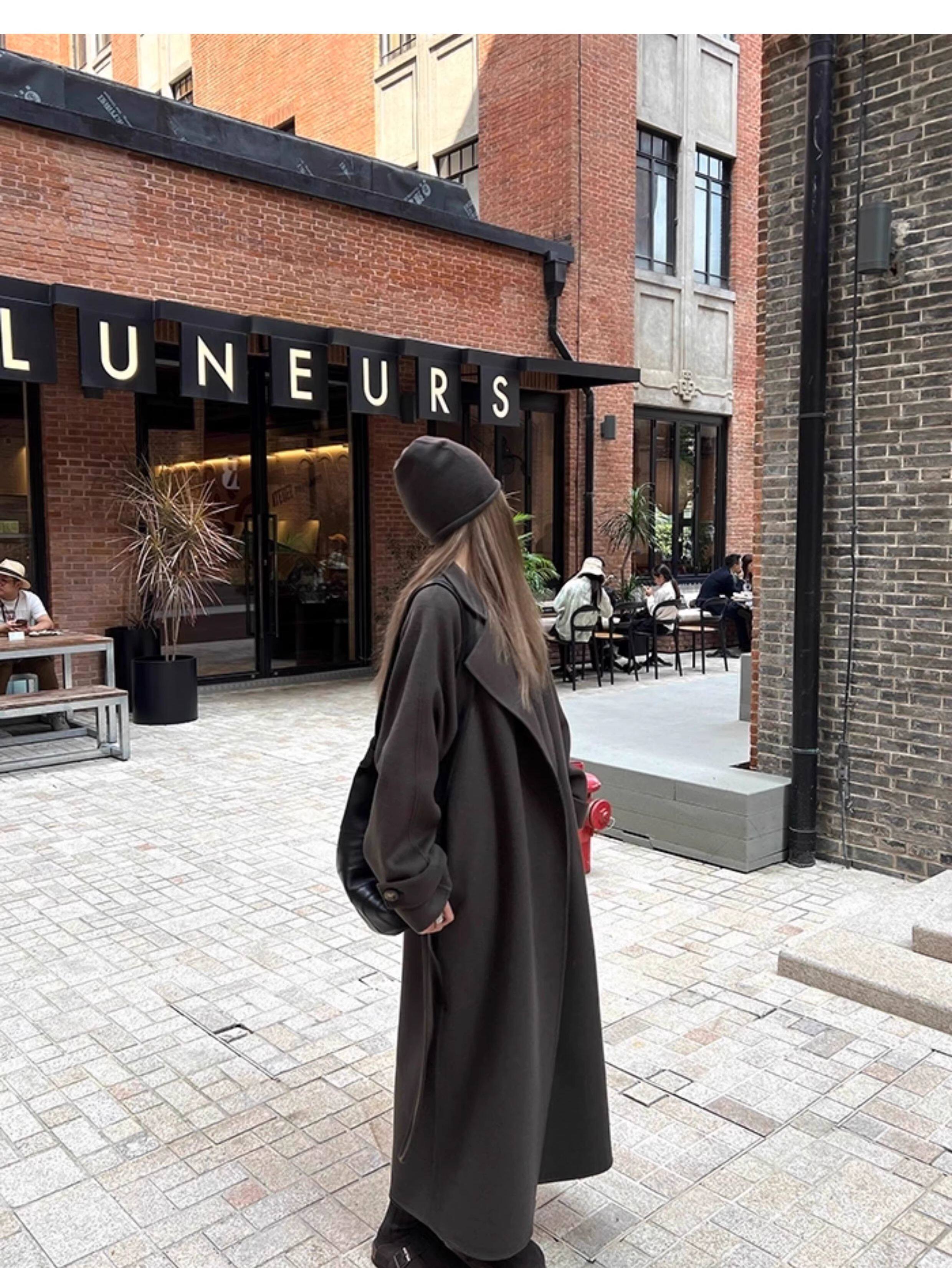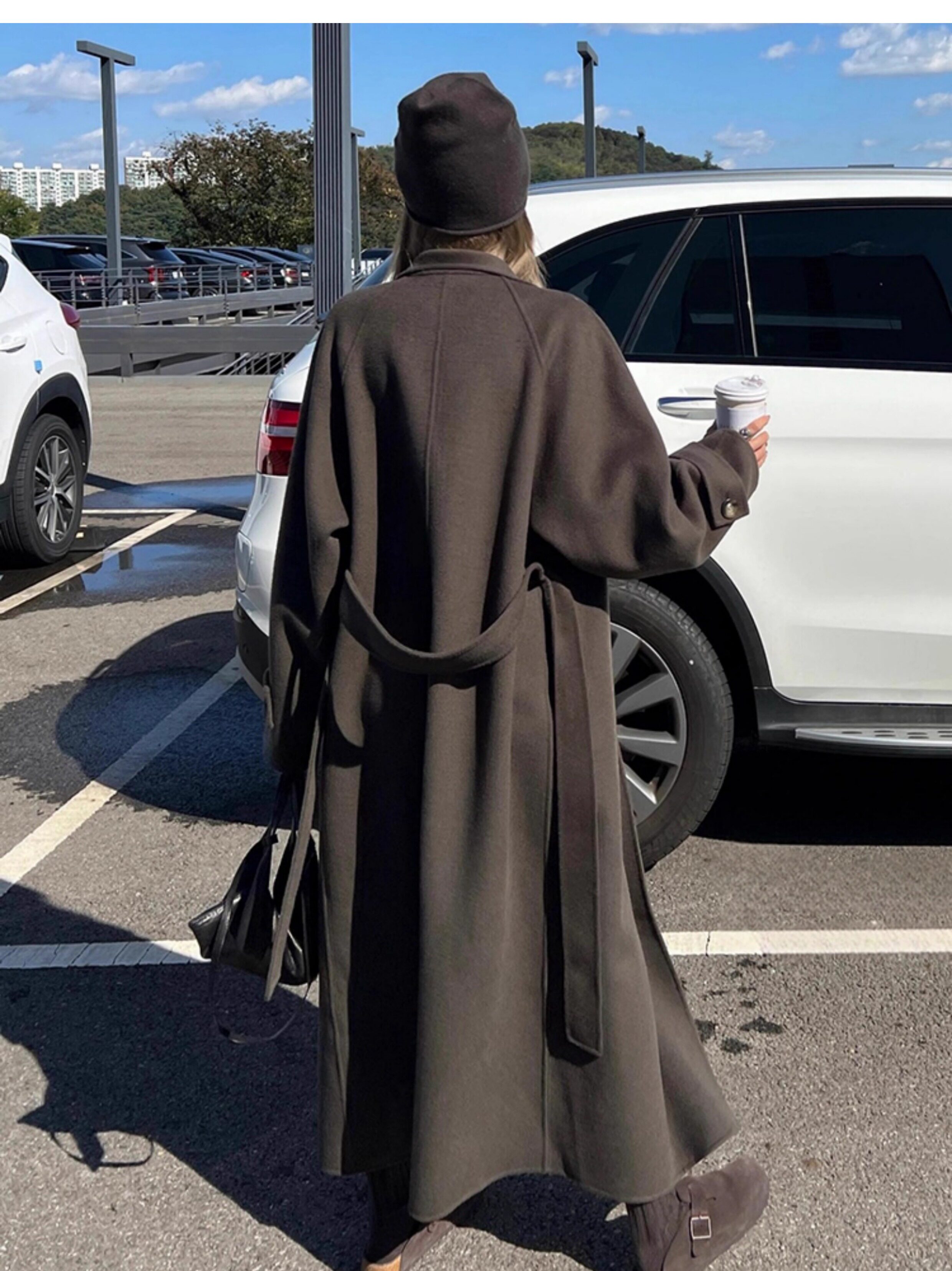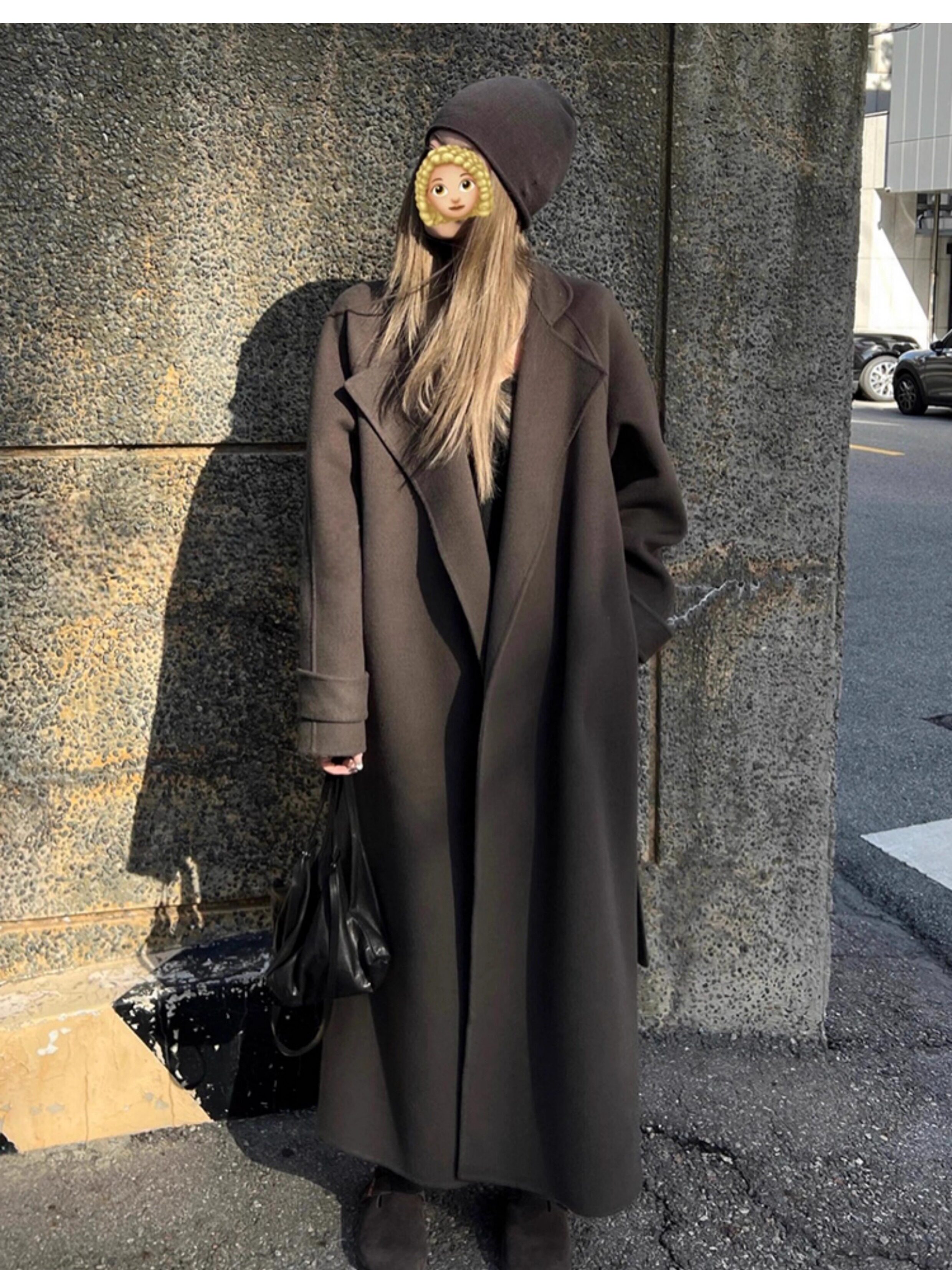 Double-Sided Cashmere Coat for Women 2025 Winter New Style Elegant Korean Style High-End Loose Lace-Up Mid-Length Woolen Coat