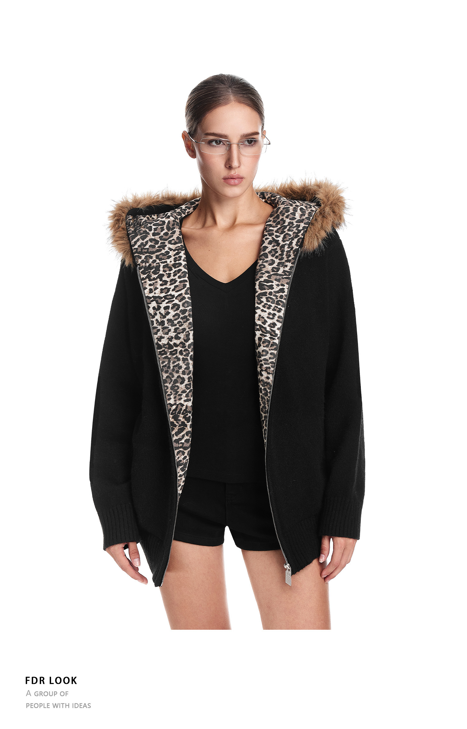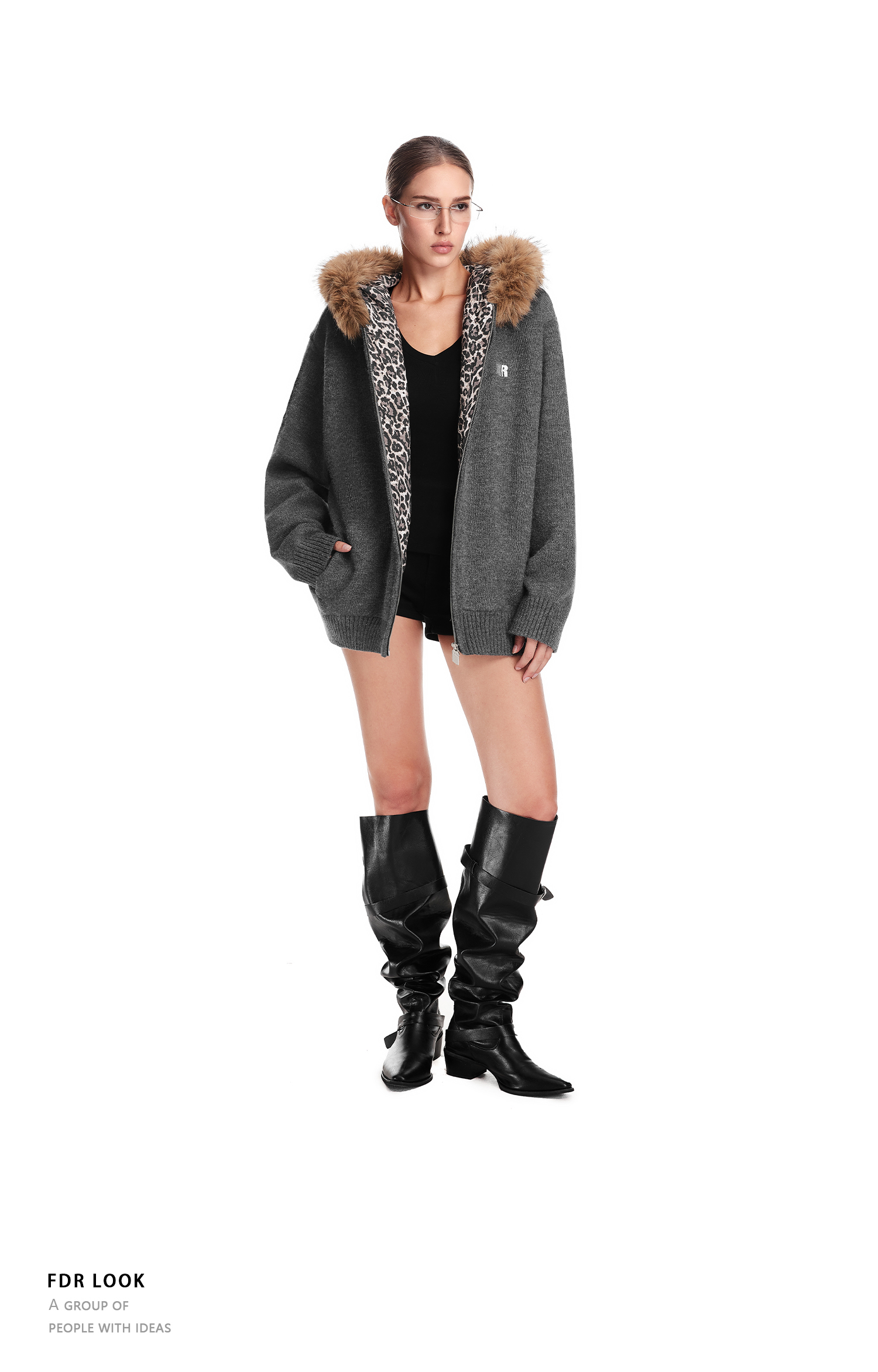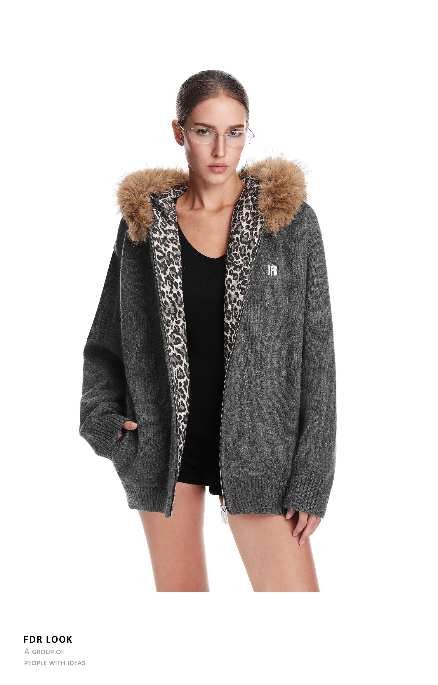 Fdr Lazy and Sophisticated Knitwear 2025 Autumn and Winter Thick Cardigan for Outerwear Men's Leopard Print Fur Collar Sweater Jacket Women's