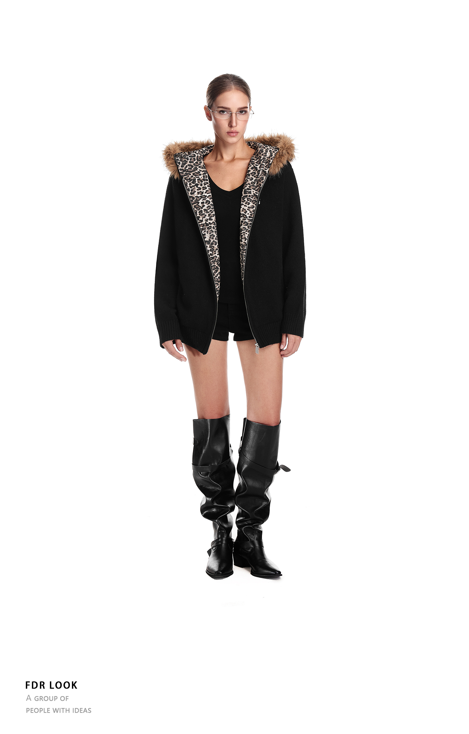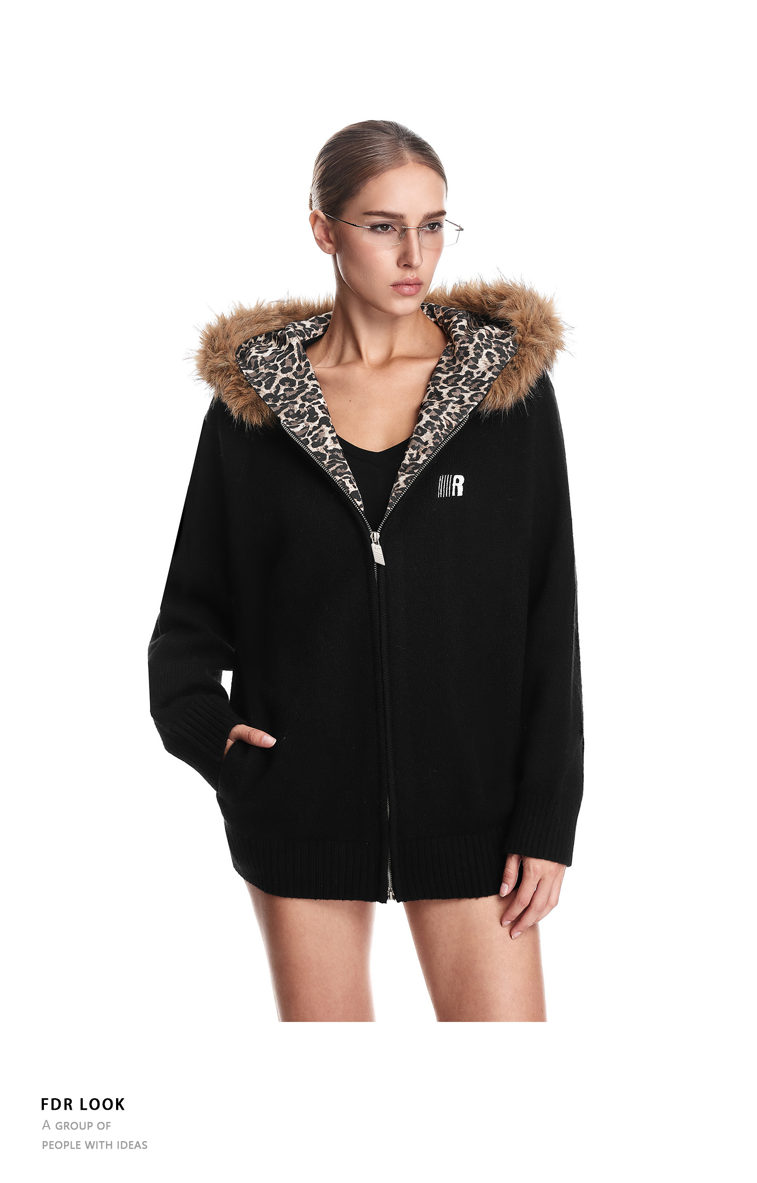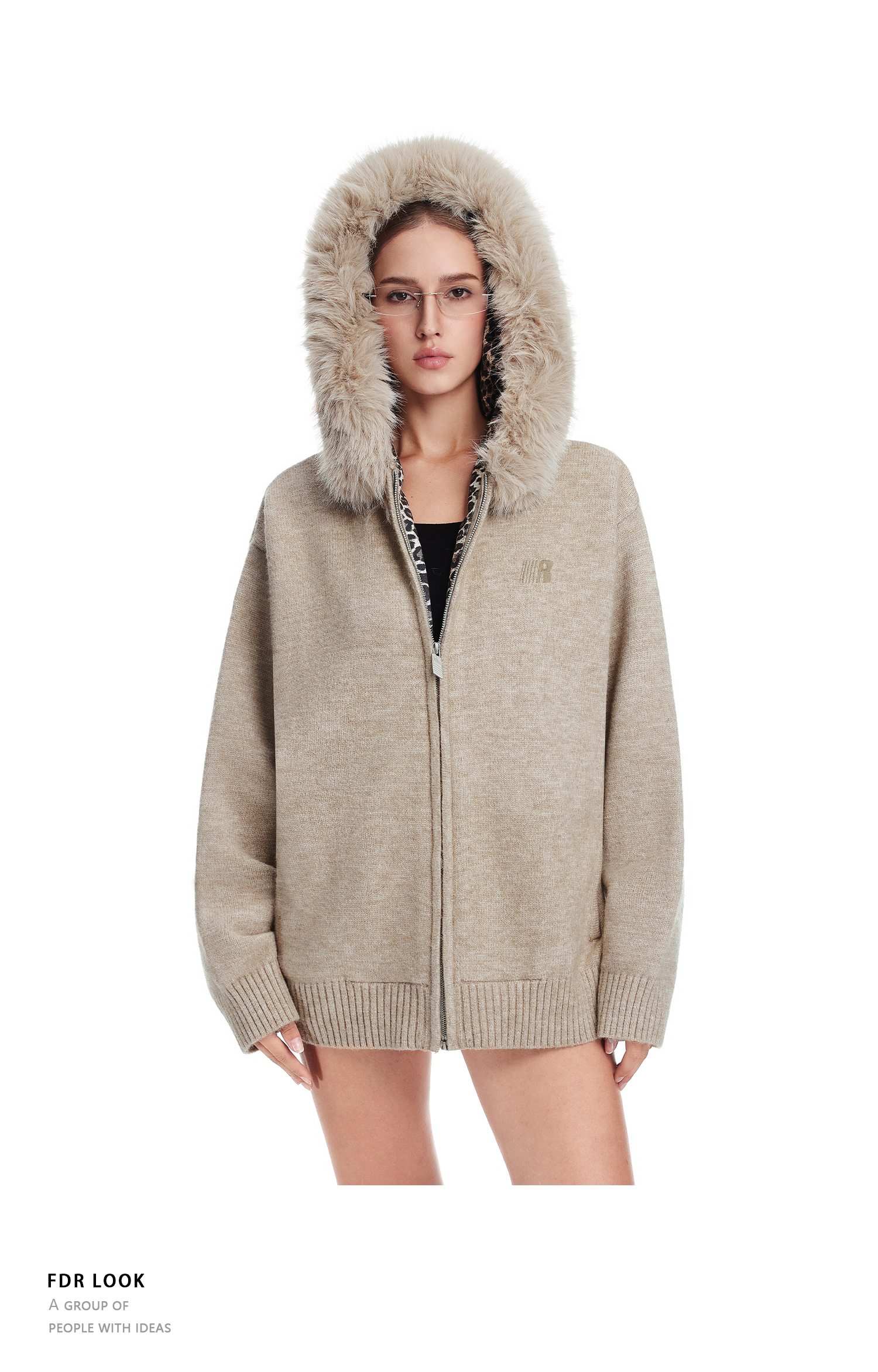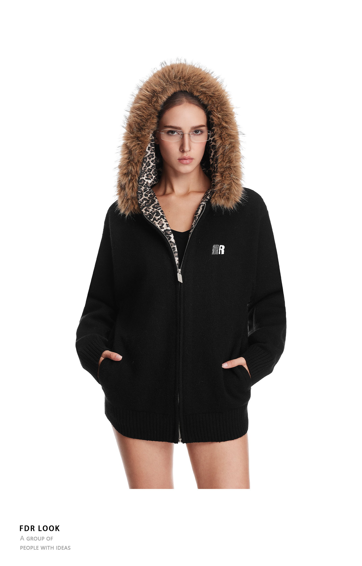 Fdr Lazy and Sophisticated Knitwear 2025 Autumn and Winter Thick Cardigan for Outerwear Men's Leopard Print Fur Collar Sweater Jacket Women's