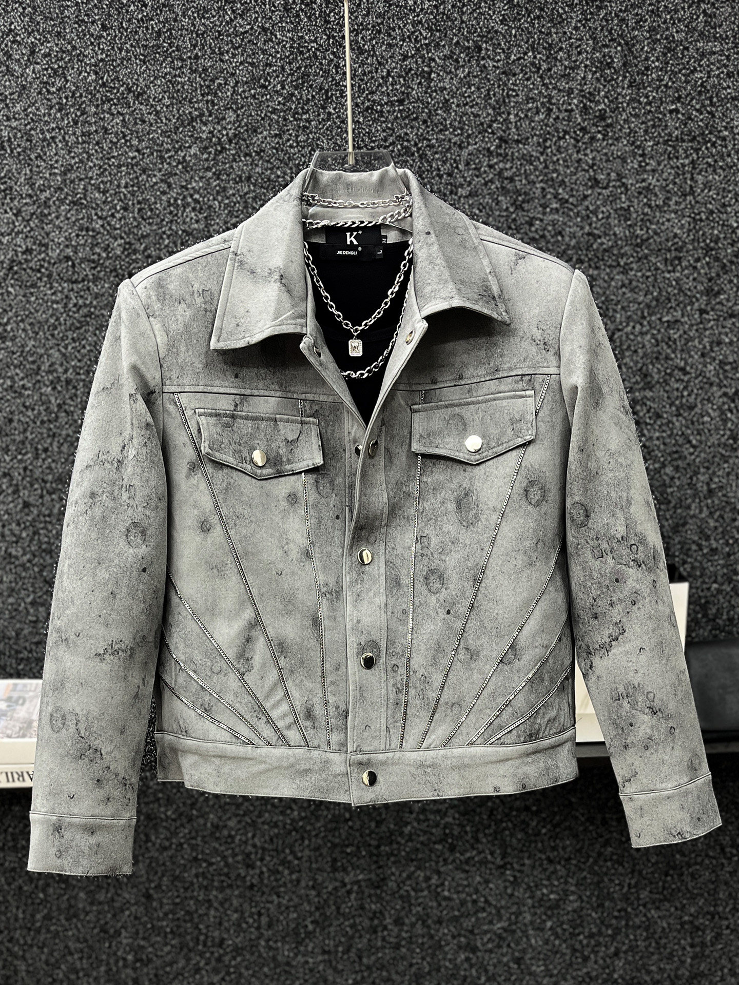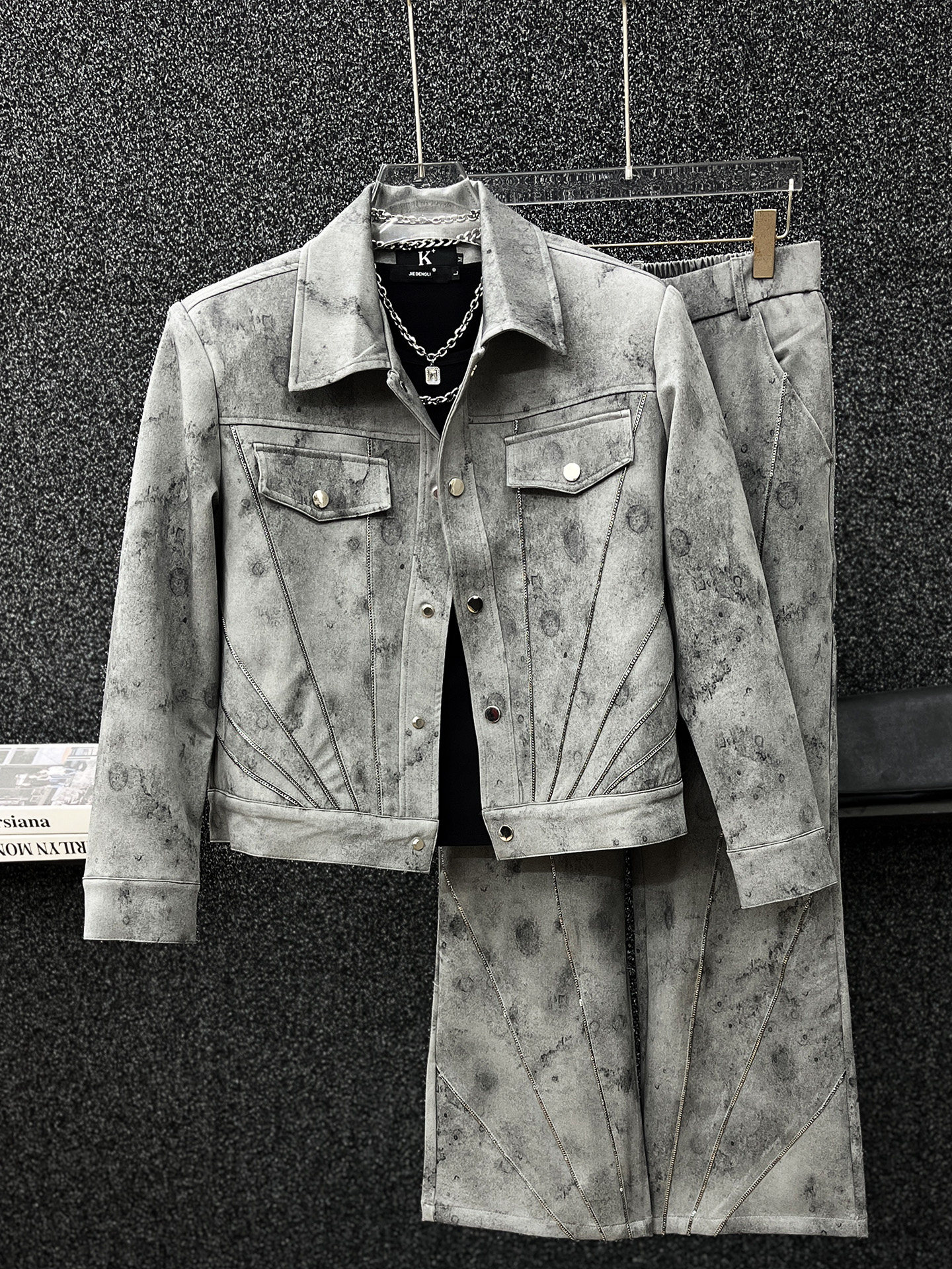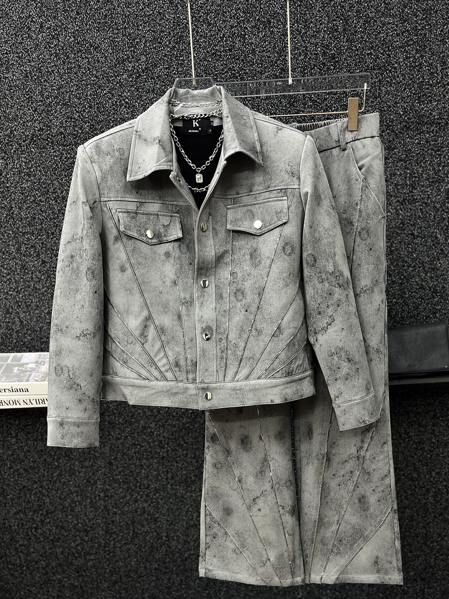 High-End American Retro Deconstructed Gray Jacket Suit for Men, New Autumn Style Loose Jacket Paired with Pants Set