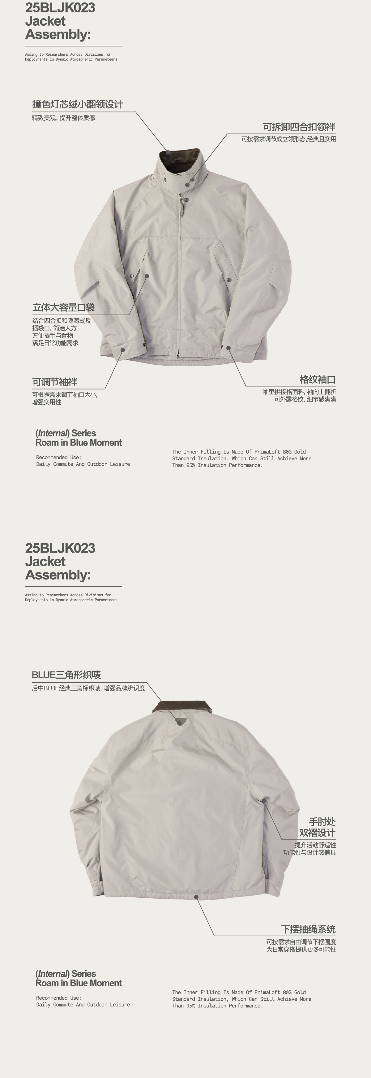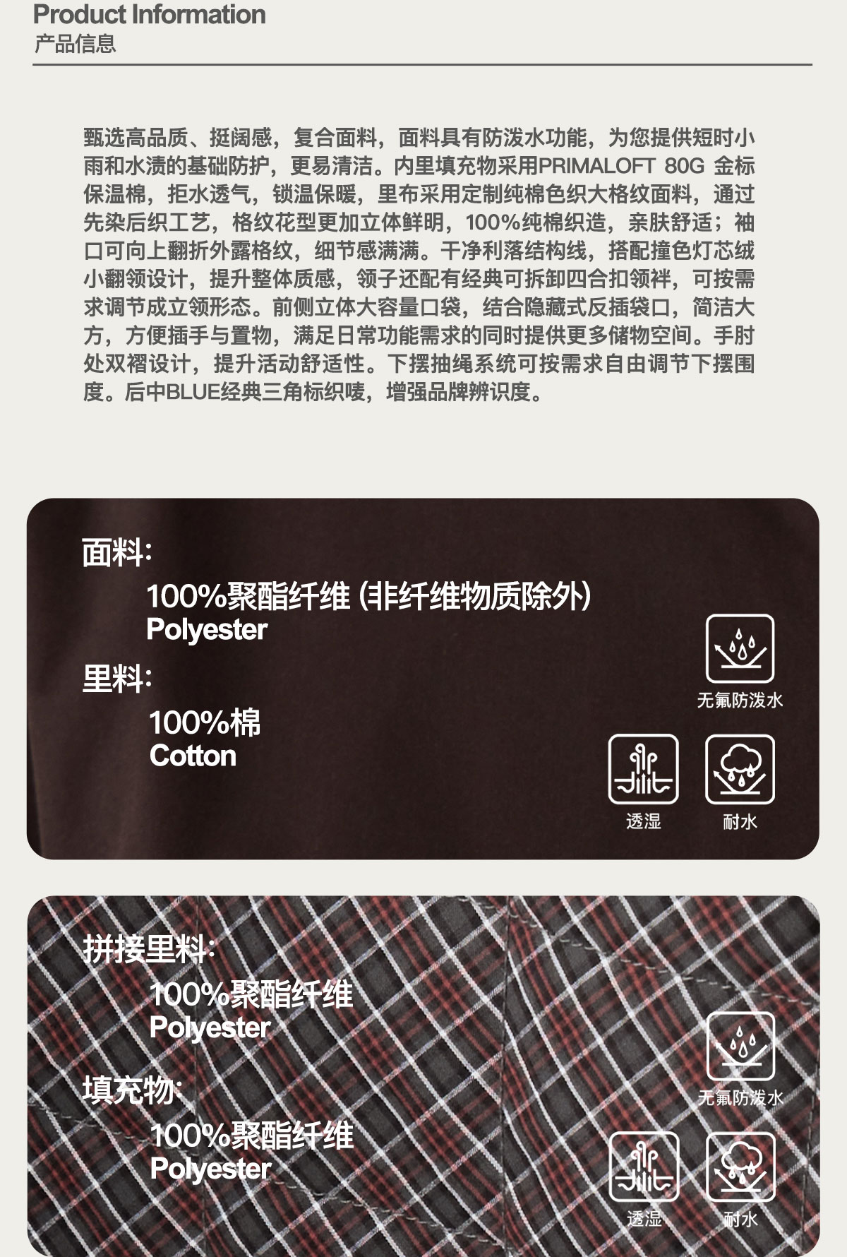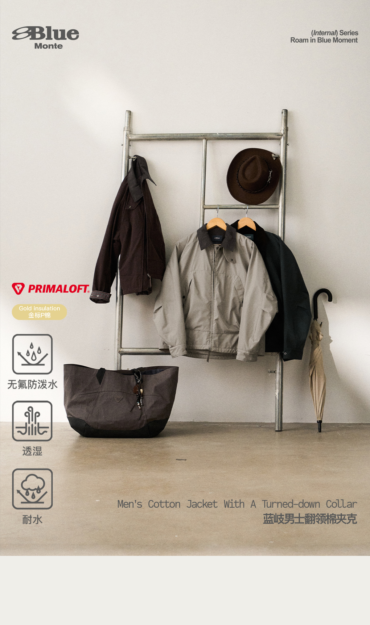 Lanqi Gold Label P Cotton Primaloft Breathable Water-Resistant Cotton Jacket Fluorine-Free Water-Repellent Barn Wind Hunting Jacket for Men