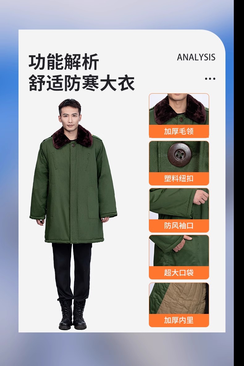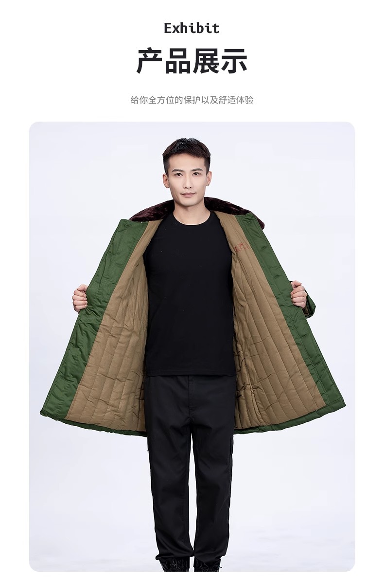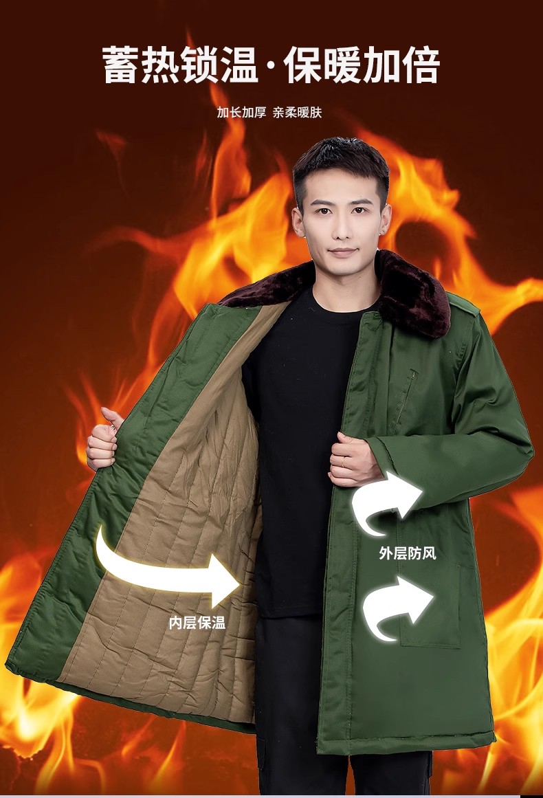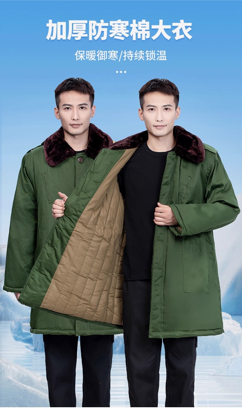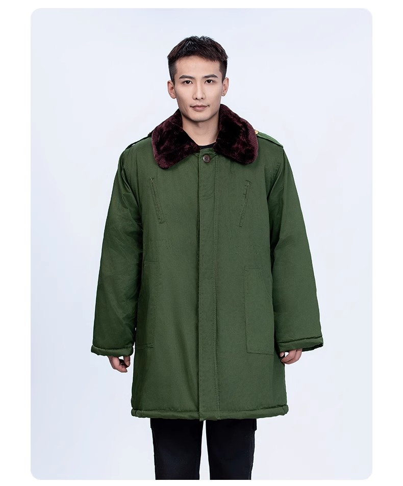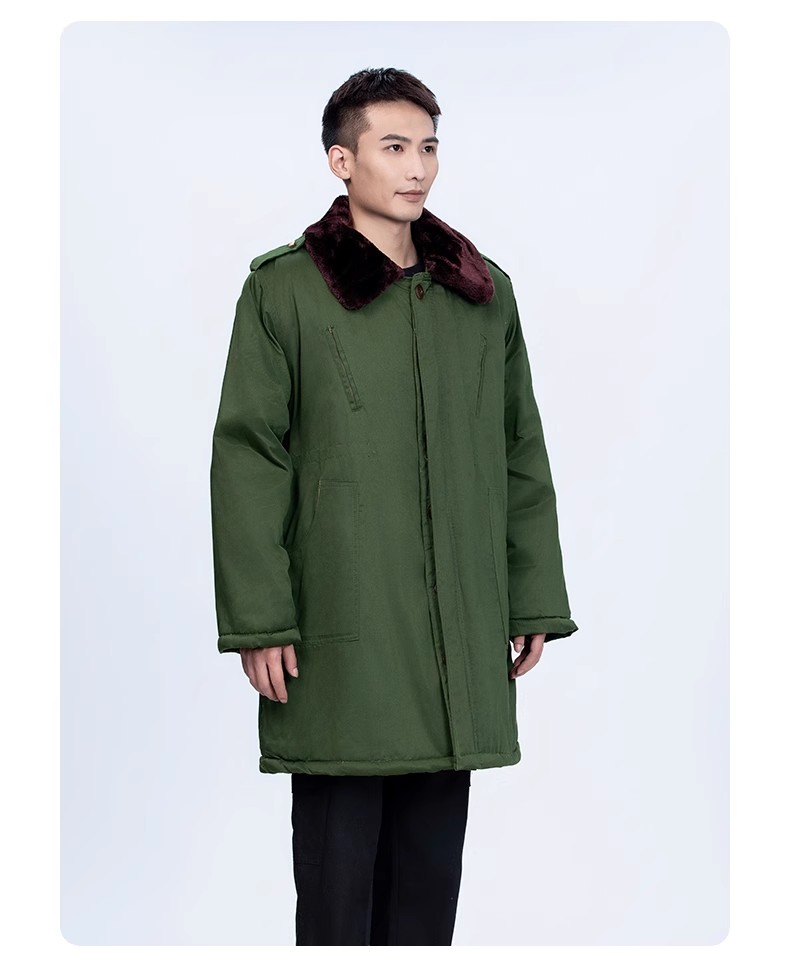 Old-Fashioned Cotton Military Coat, Short Style for Men, Thickened Mid-Length Style, Winter Warm Green Cotton Jacket, Women's Old-Style Labor Protection Cold-Proof Clothing