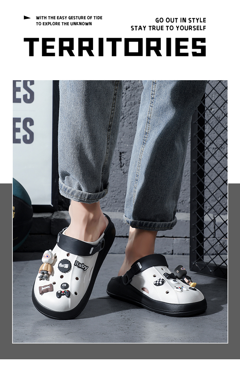 Croc Shoes for Men 2025 New Summer Thick-Soled Outdoor Wear soft sole Outdoor Beach Couple Style Closed-Toe Slippers for Women