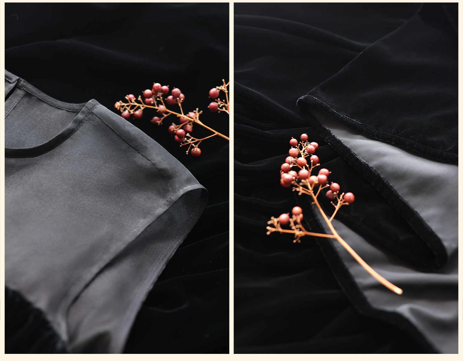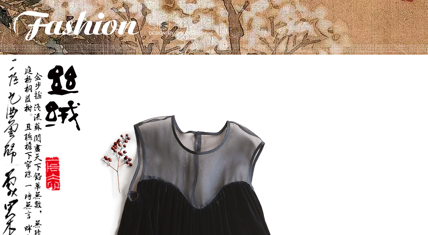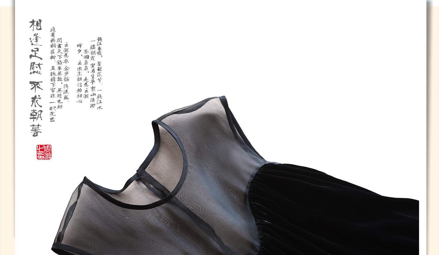 Yunshu Original Silk Velvet Spliced with Silk Organza Loose Round Neck Casual Sleeveless Long Dress for Autumn and Winter