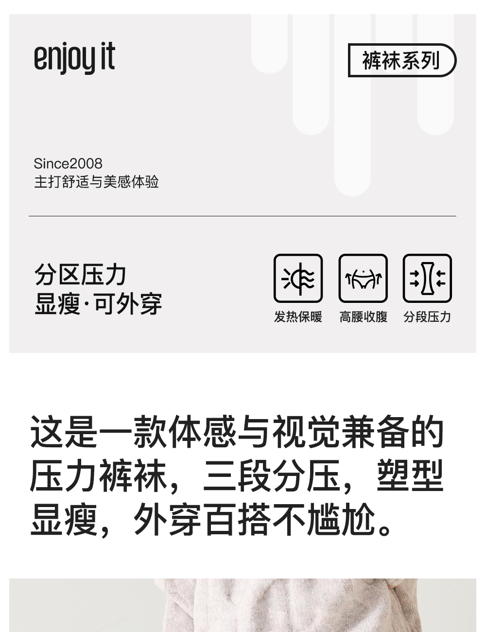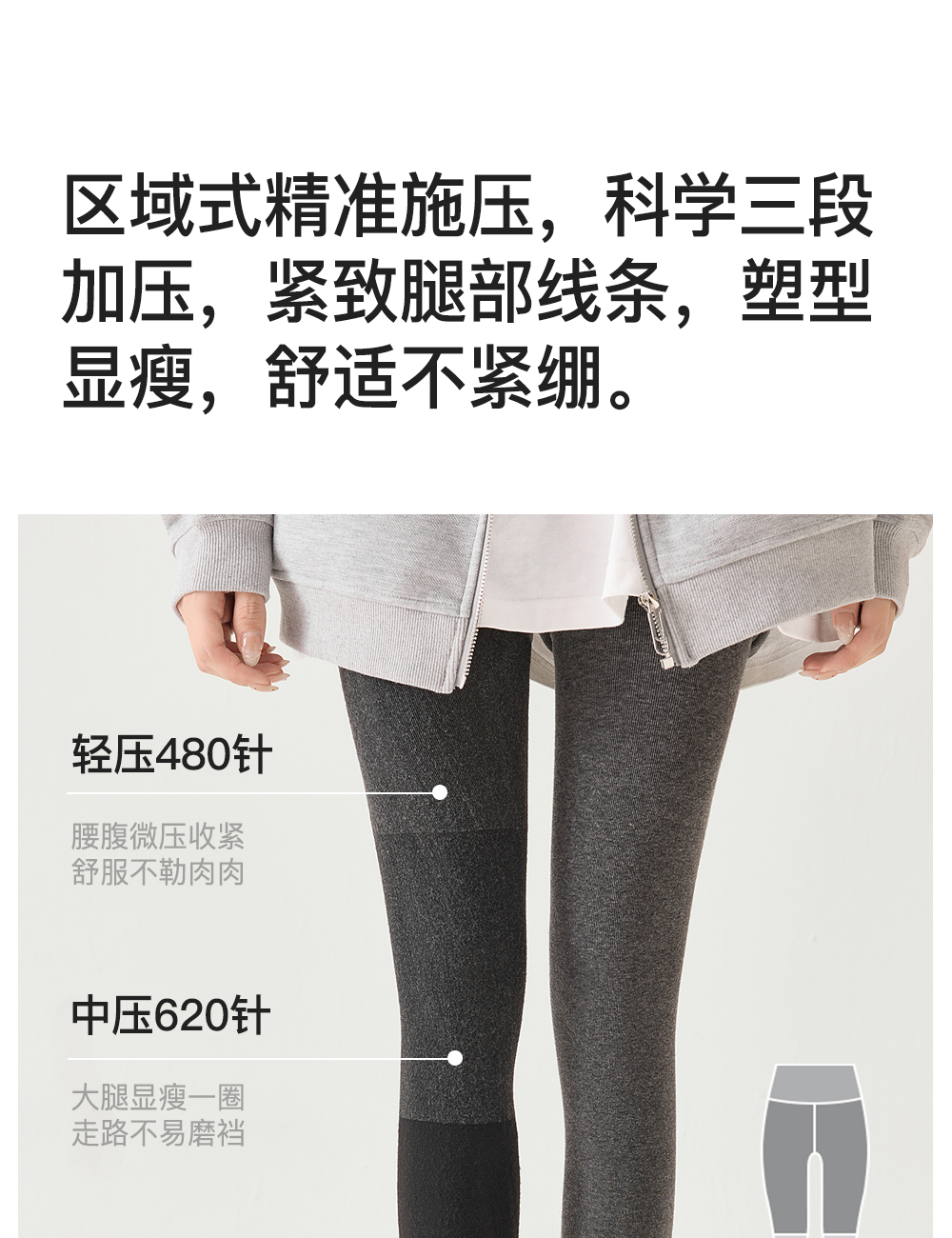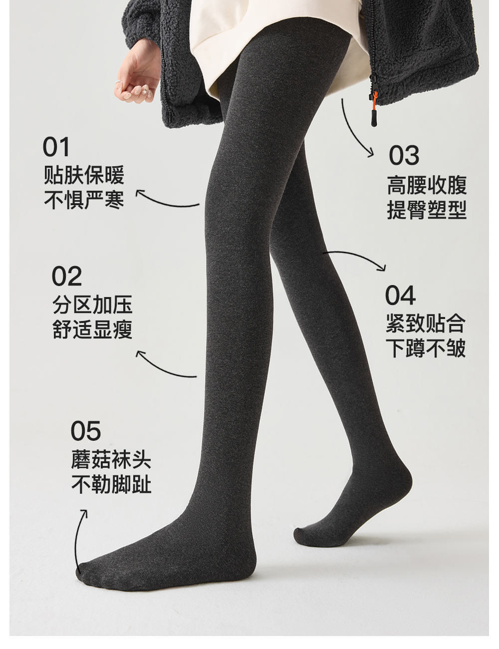 Enjoy It Segmented Pressure Tights for Women, Autumn and Winter 2025 New Style, Fleece-Lined, Warm Gray Leggings for Outer Wear