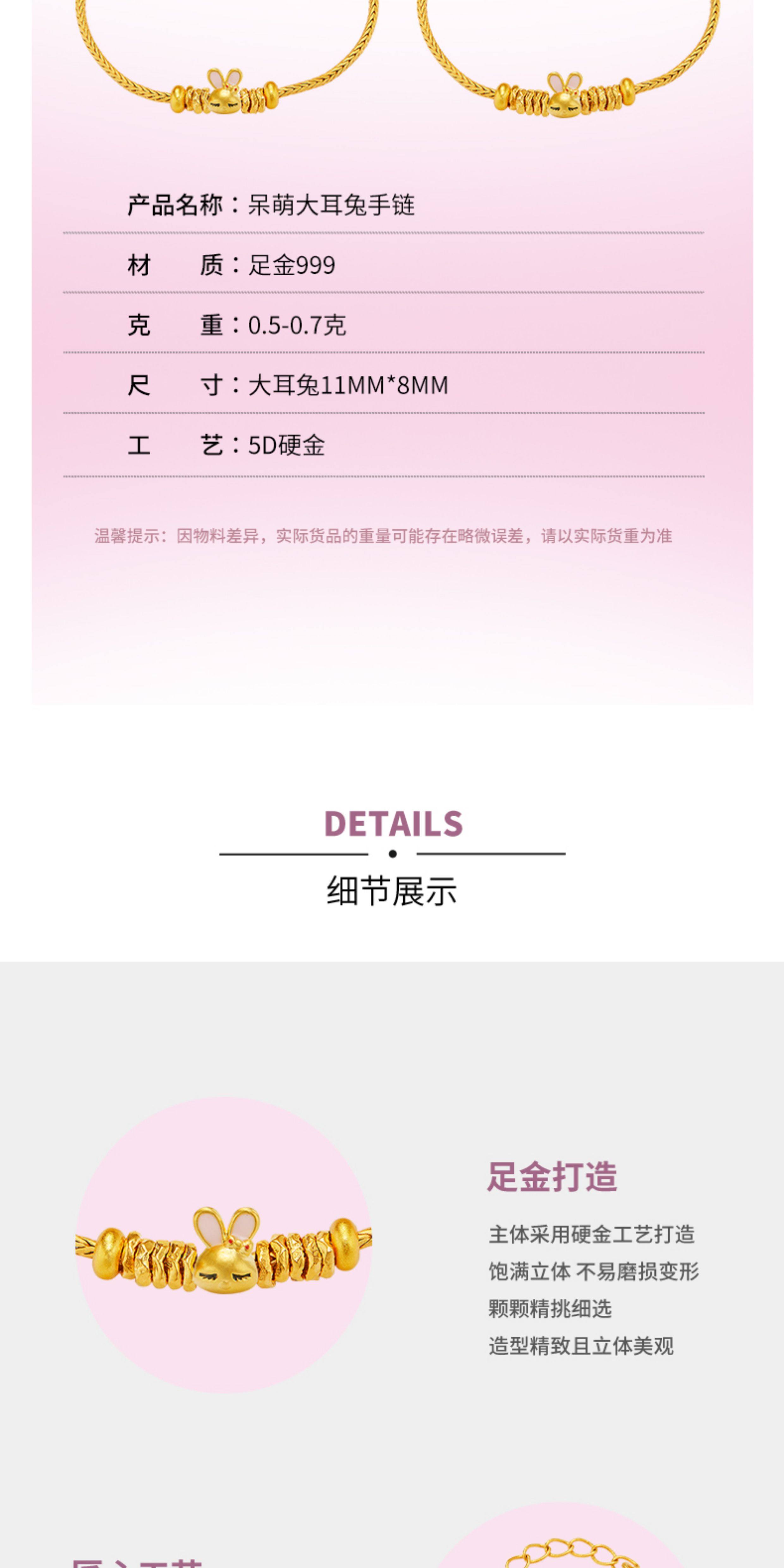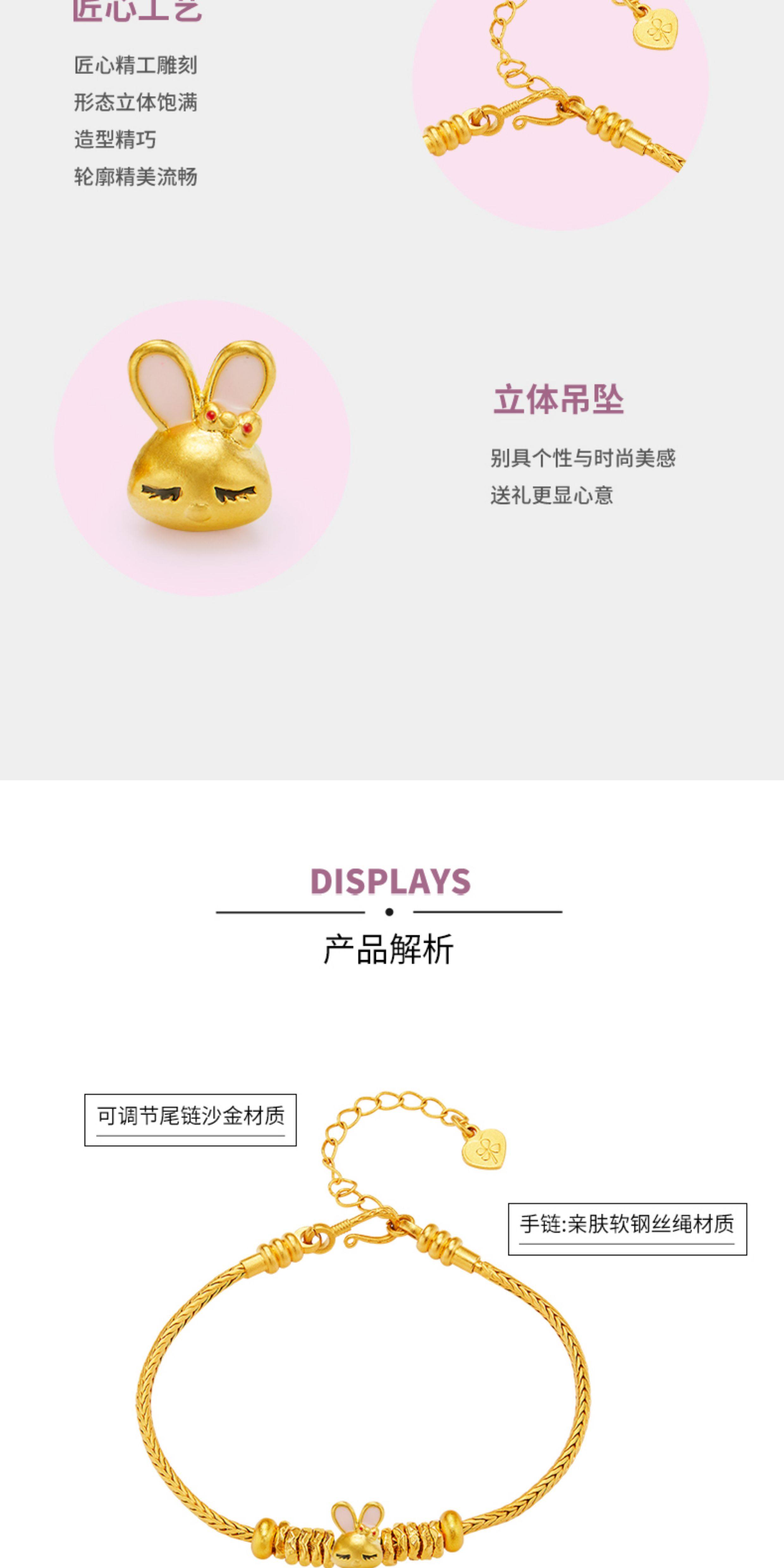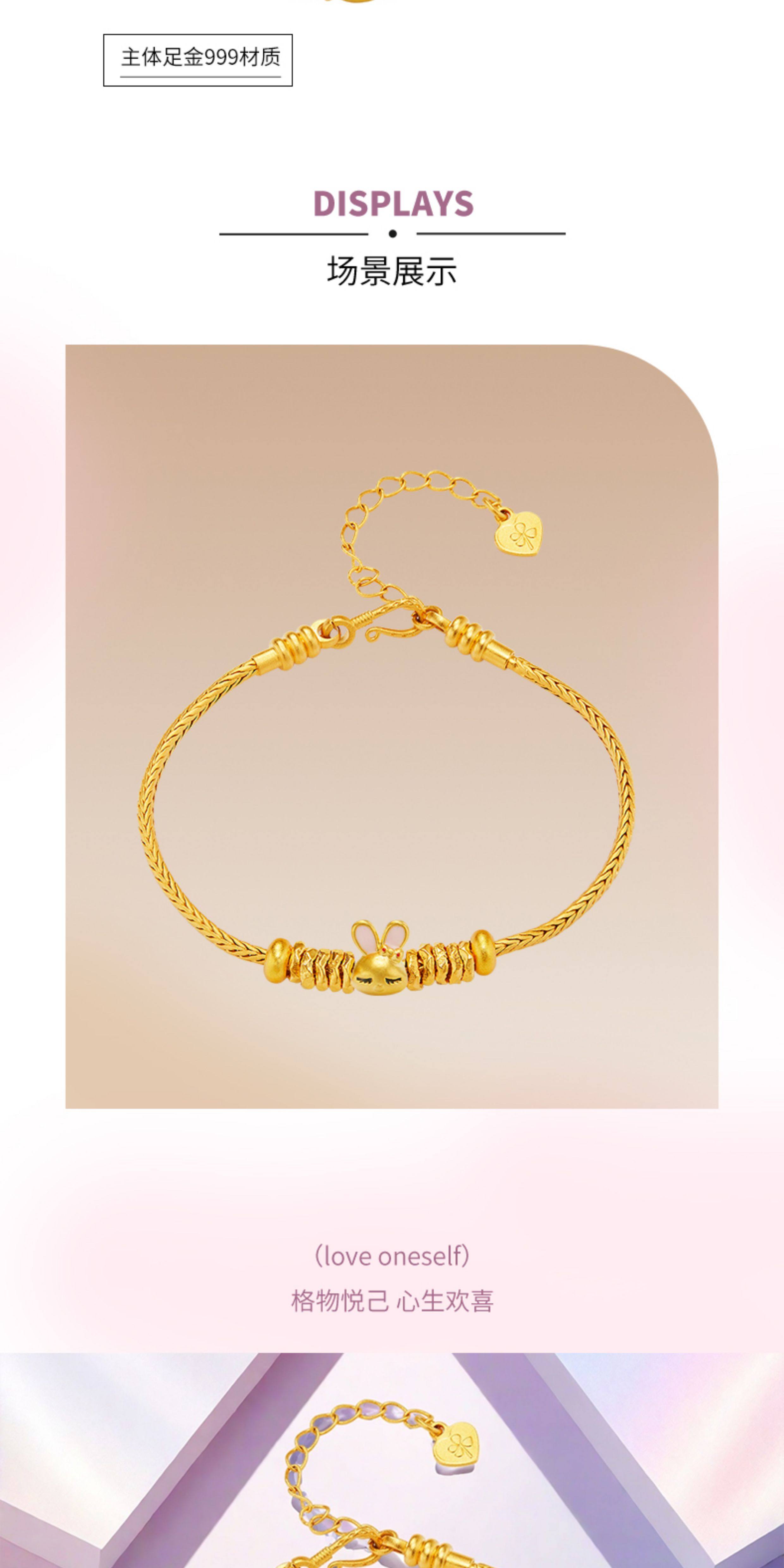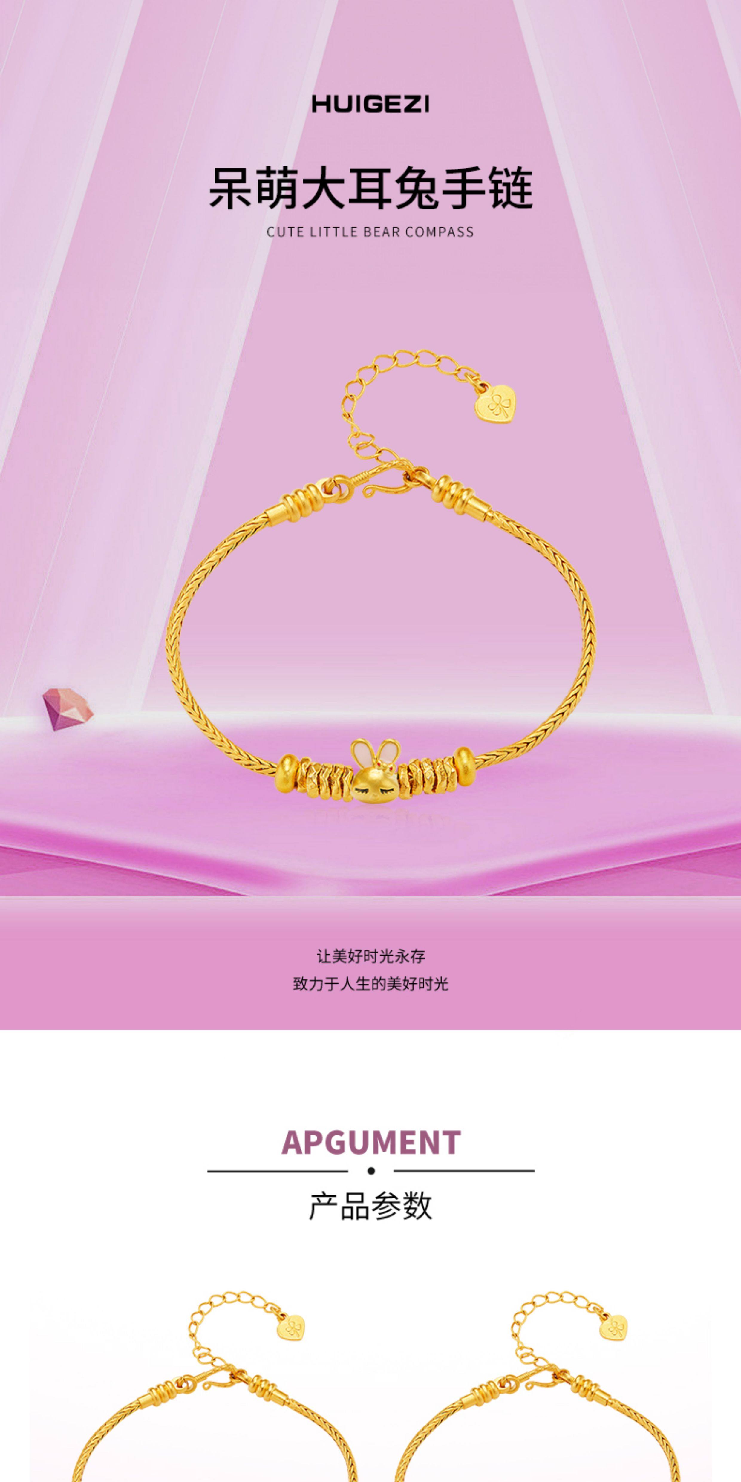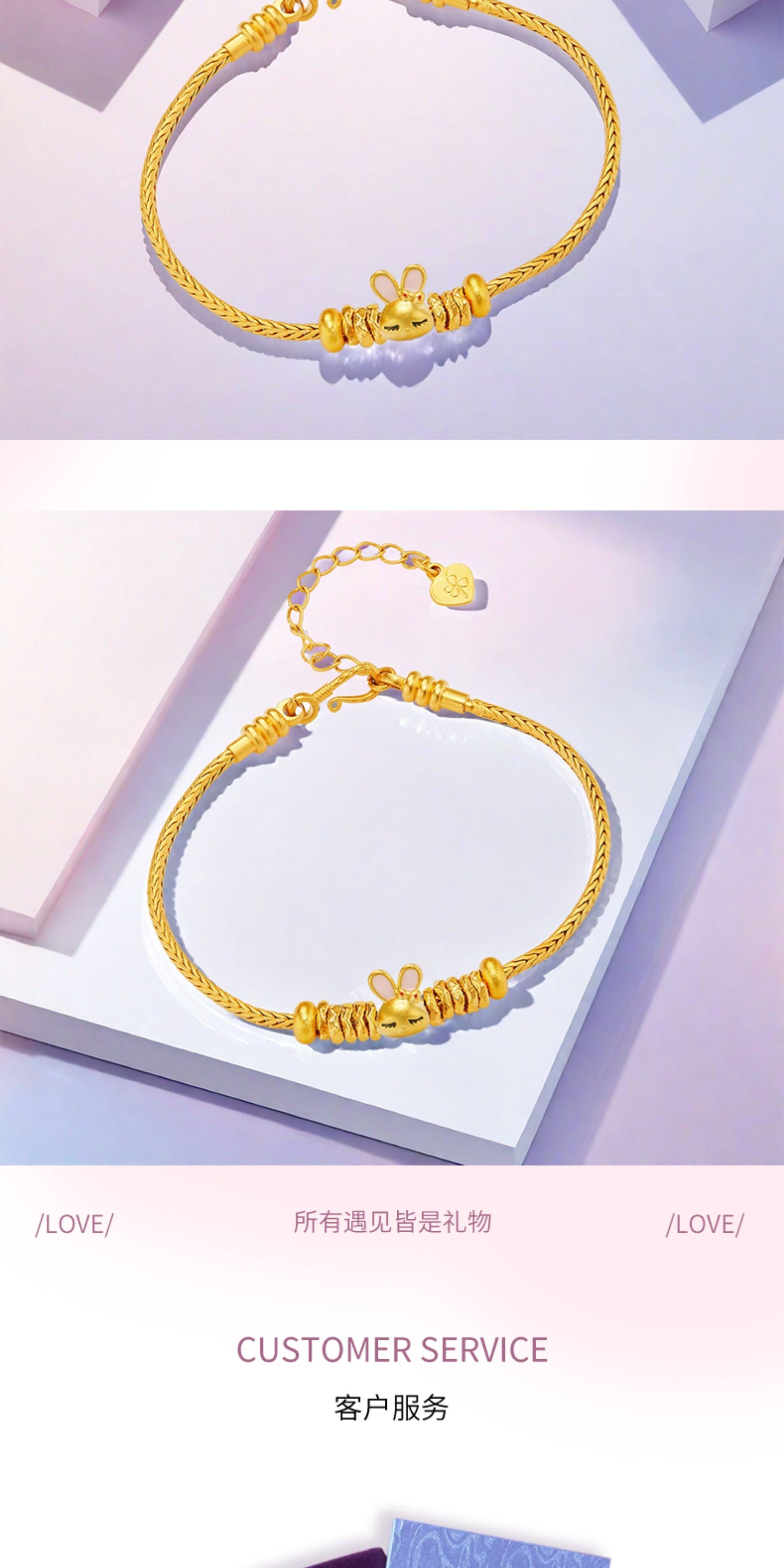 Huigezi Gold Big-Eared Rabbit Bracelet, Stylish Gold Jewelry, Exquisite 999 Pure Gold Bracelet, Gift for Girlfriend
