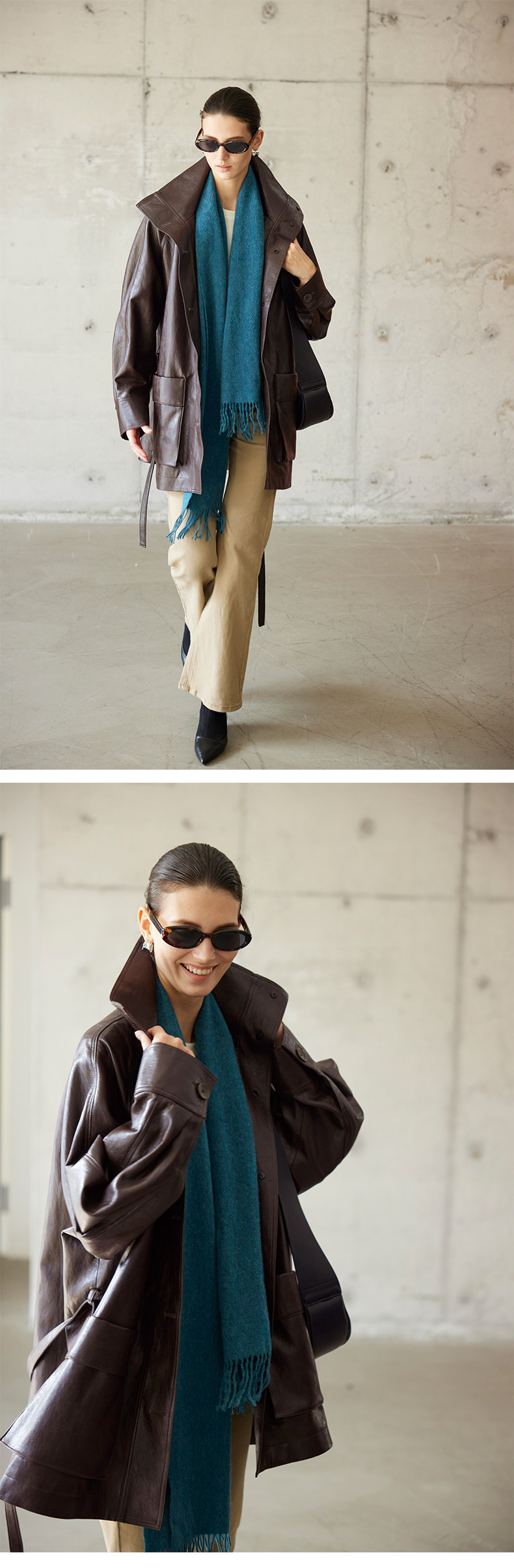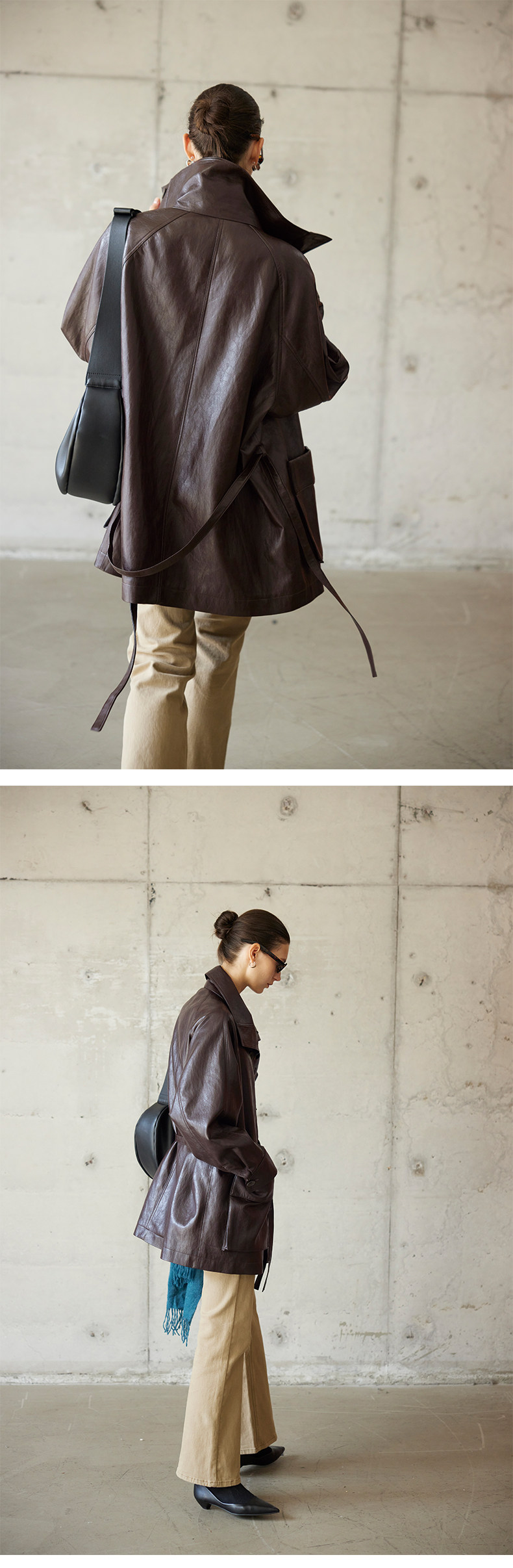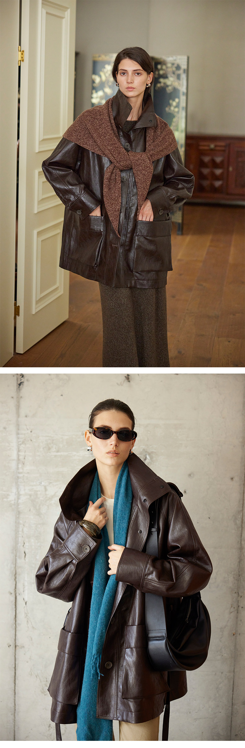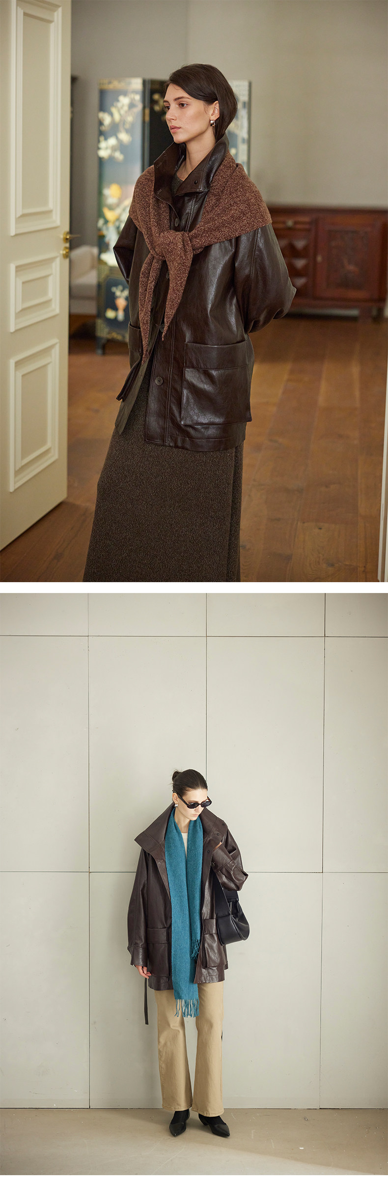 Moofeel Ultra-Soft Eco-Friendly Pu Jacket, Mid-Length, 2025 Autumn, Lace-Up Stand Collar, Glossy Melard Leather Jacket