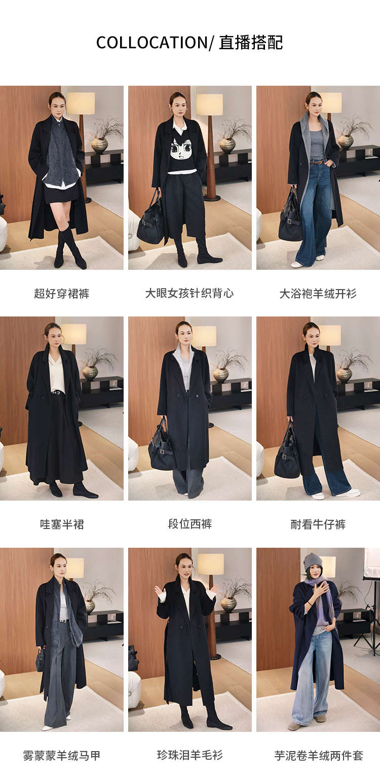 MEIYANG MEIYANG 10,002 full cashmere coat 110 + lapel round buckle belt woolen Outwear-Monday
