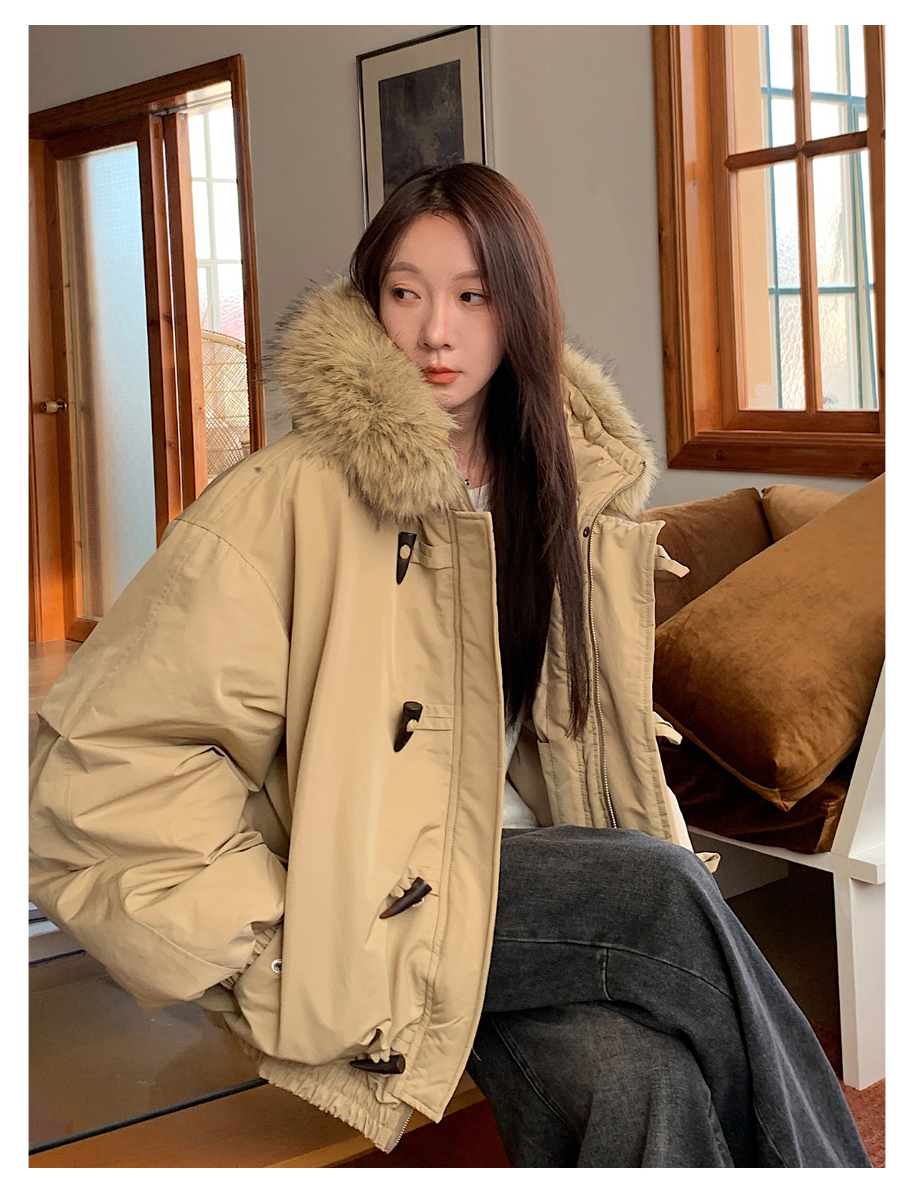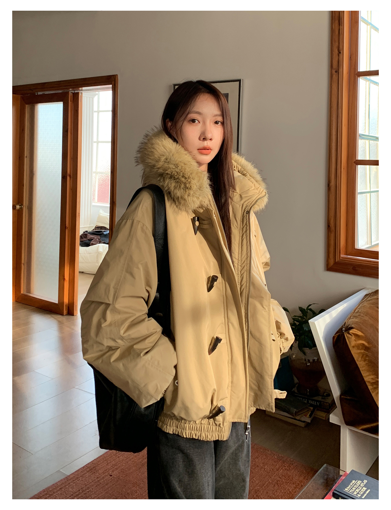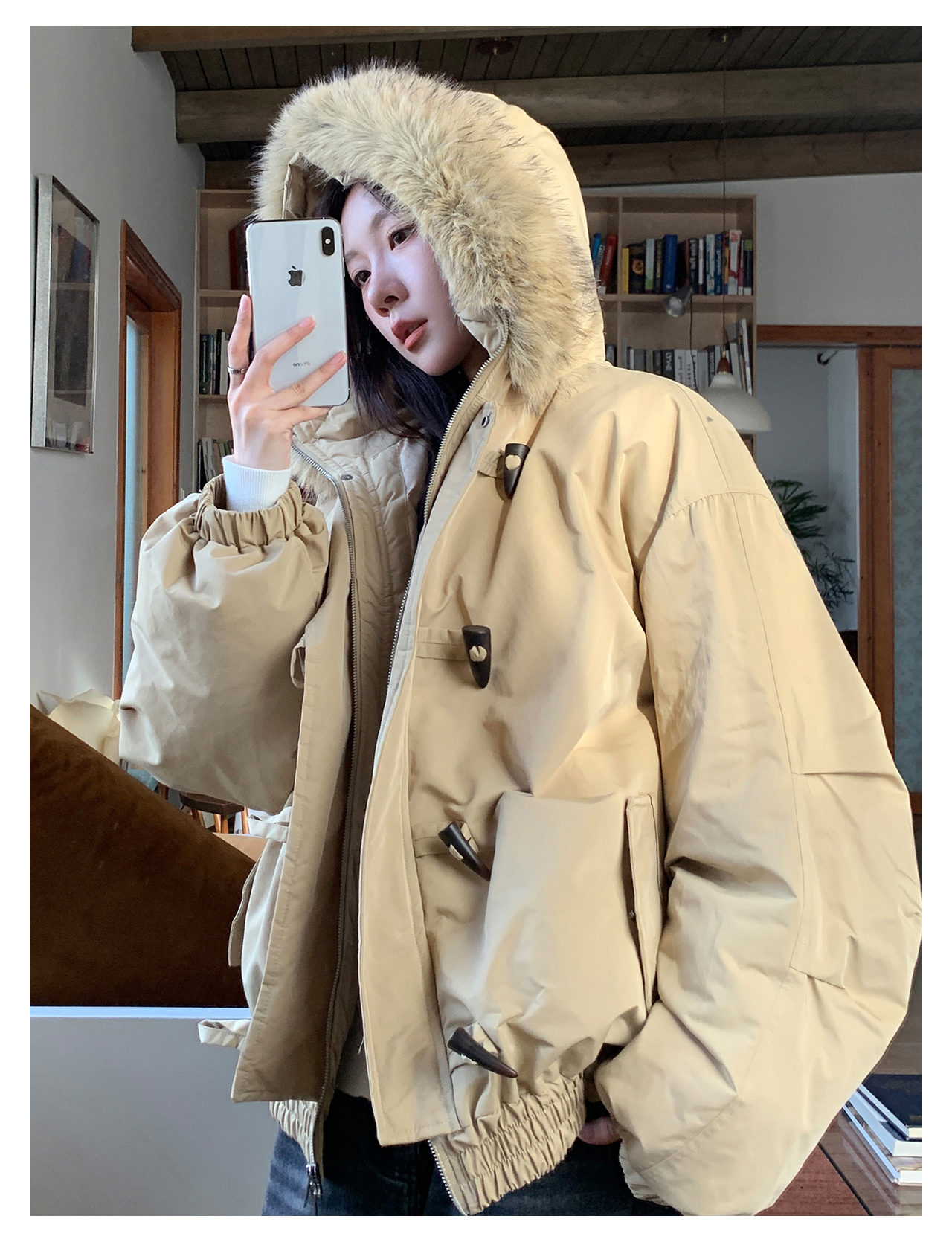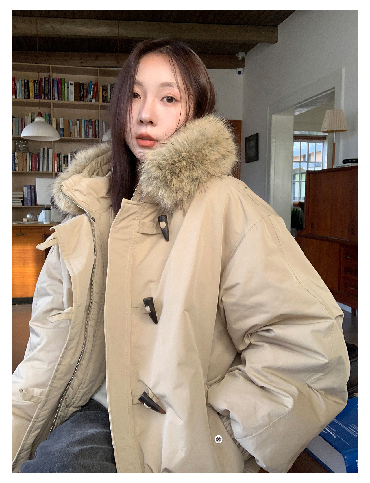 Vs What "Snow Mountain Secret Realm" Fur Collar Hooded Parka Women's Warm Cotton Coat Winter Toggle Button Thick Jacket