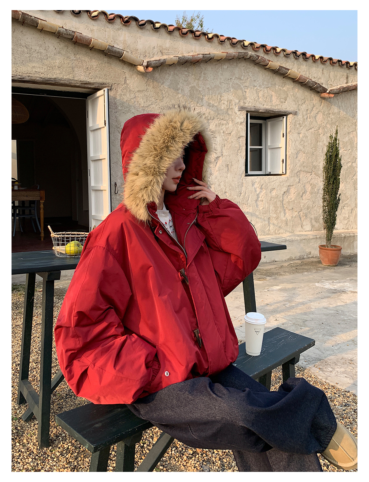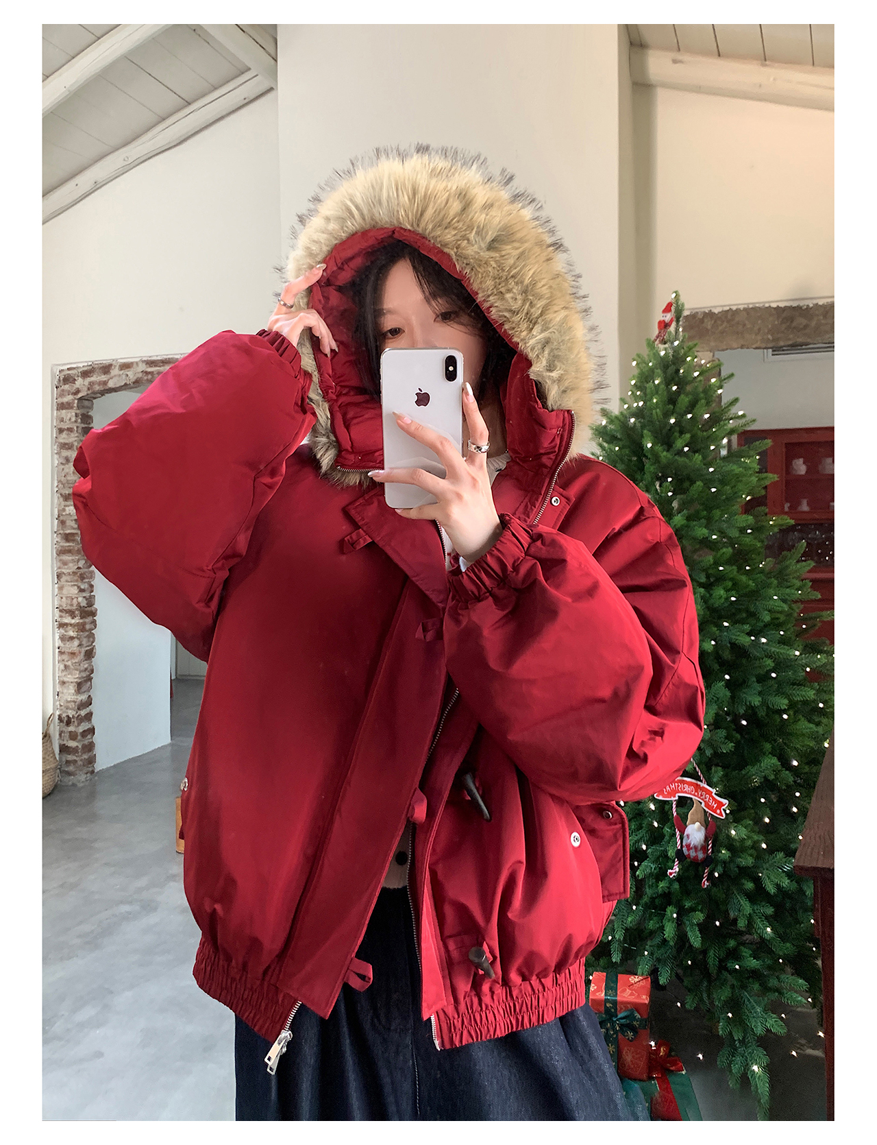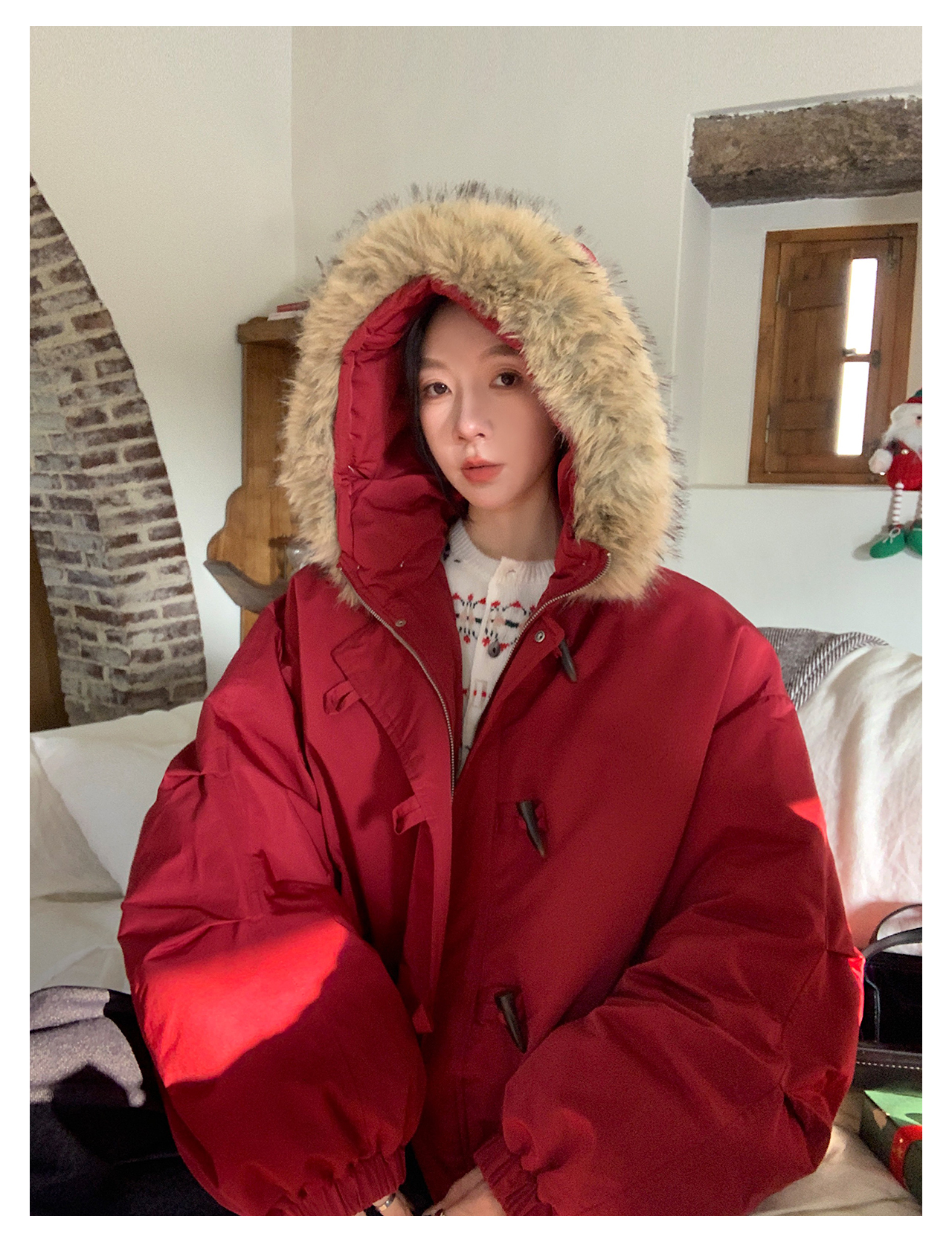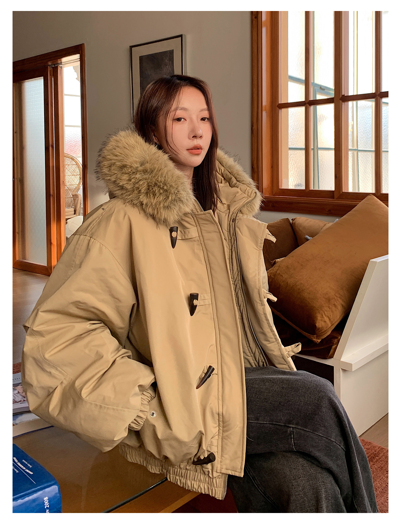 Vs What "Snow Mountain Secret Realm" Fur Collar Hooded Parka Women's Warm Cotton Coat Winter Toggle Button Thick Jacket