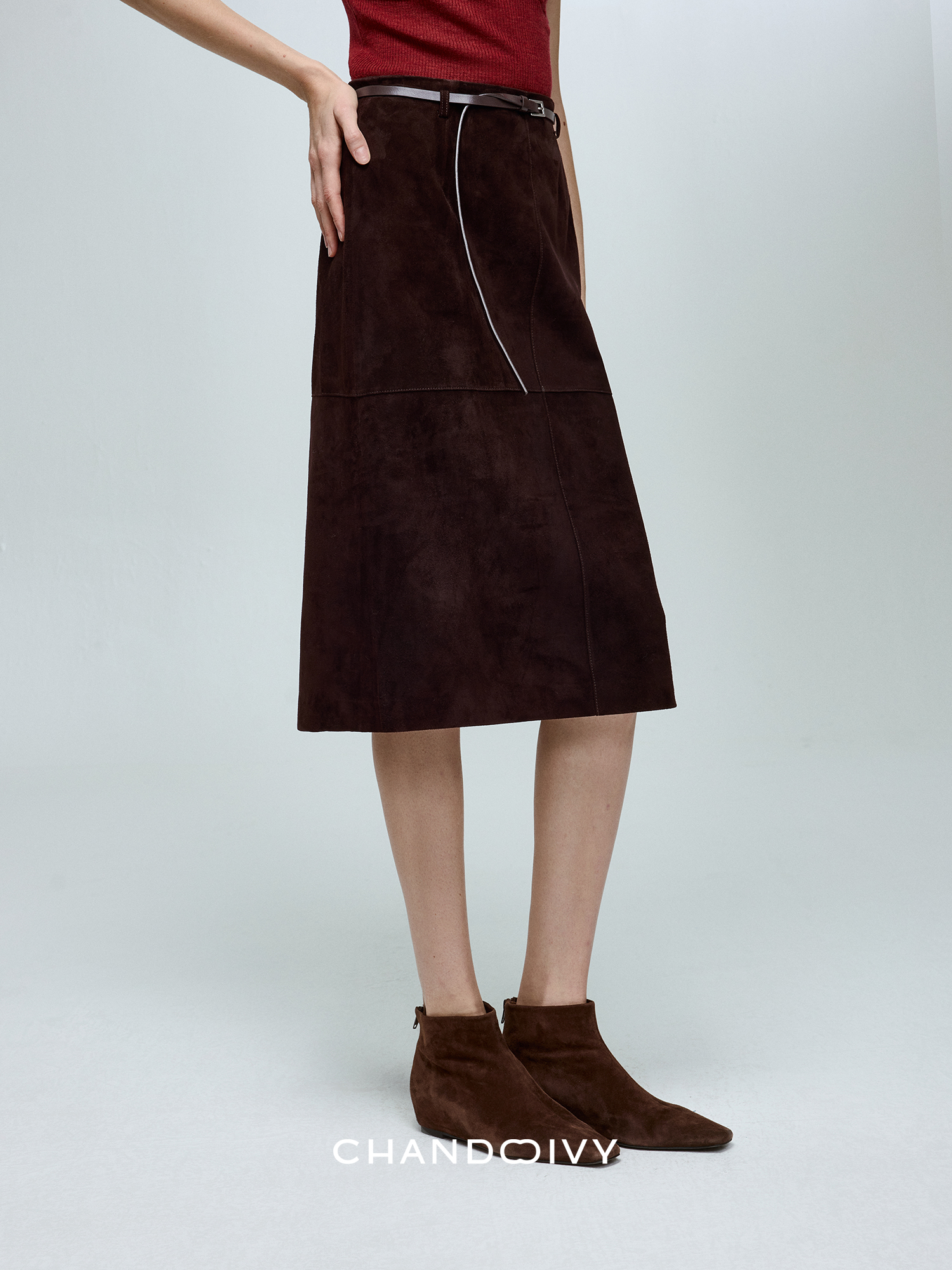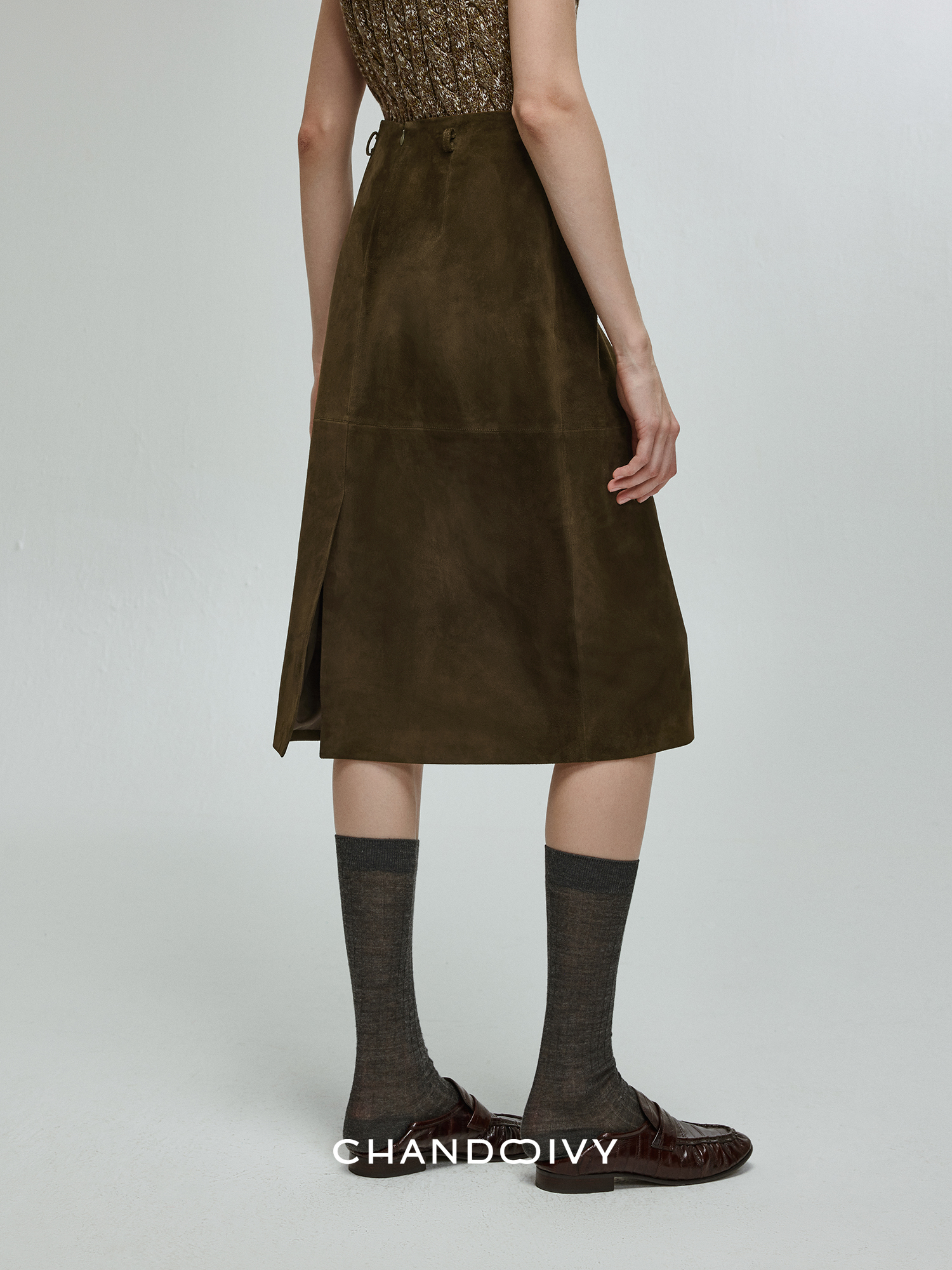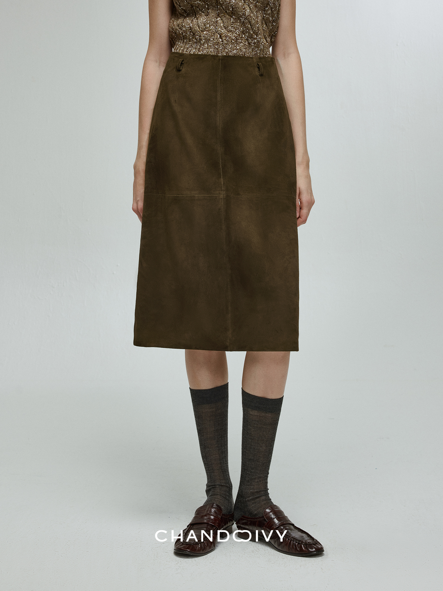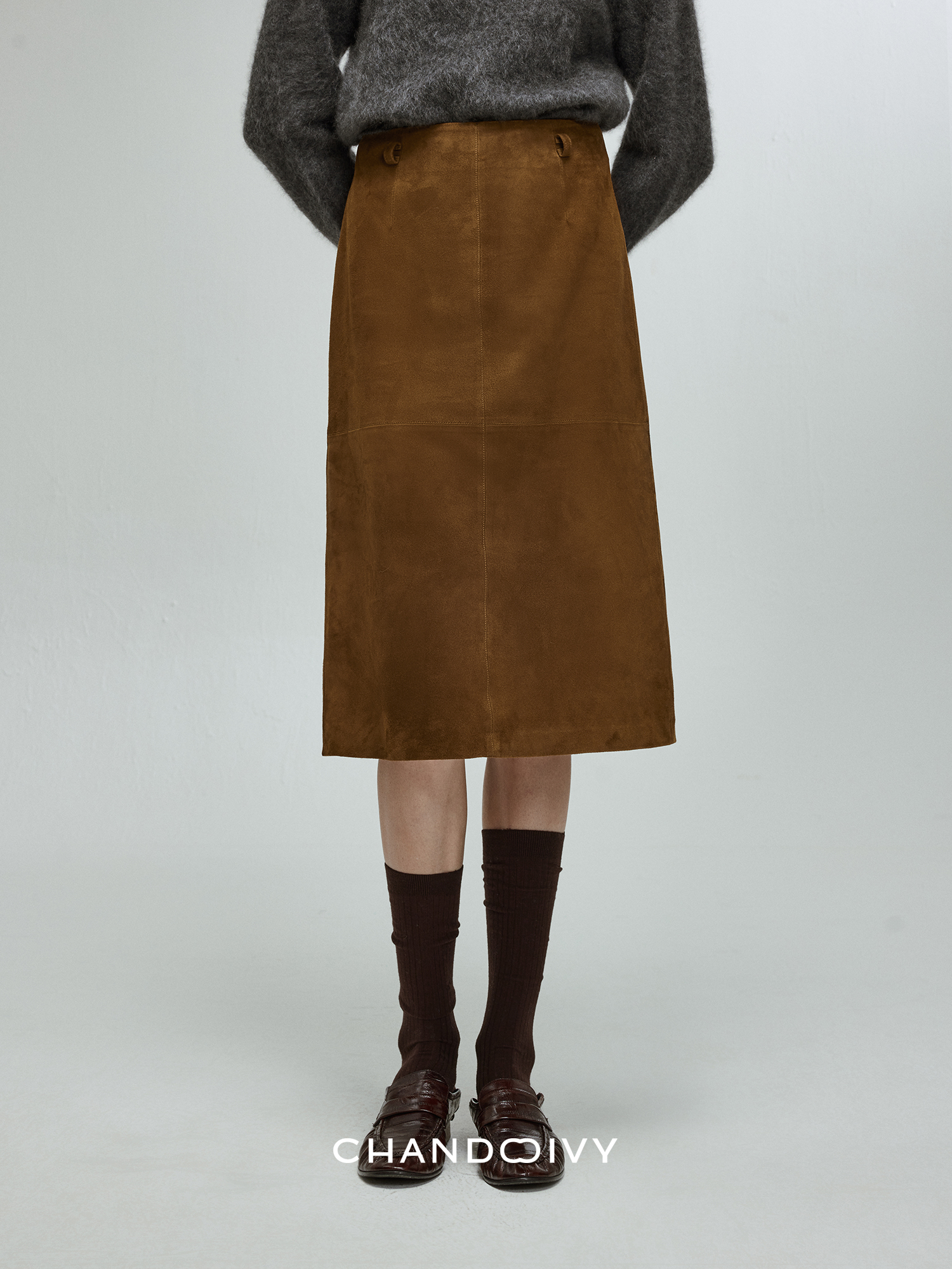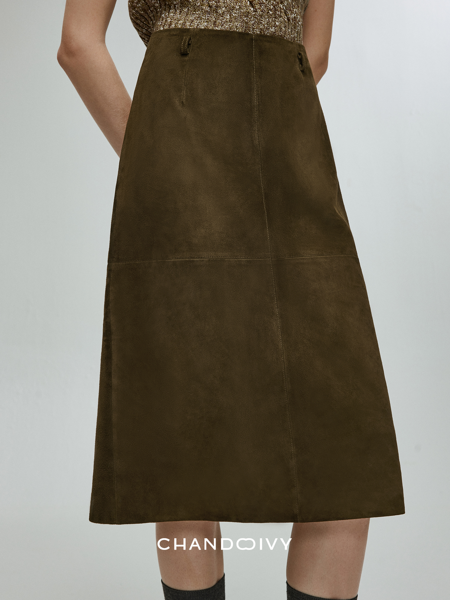 Chandooivy Imported Sheep Suede Exclusive Custom-Dyed Simple Distressed High-Waisted Slimming Mid-Length Skirt