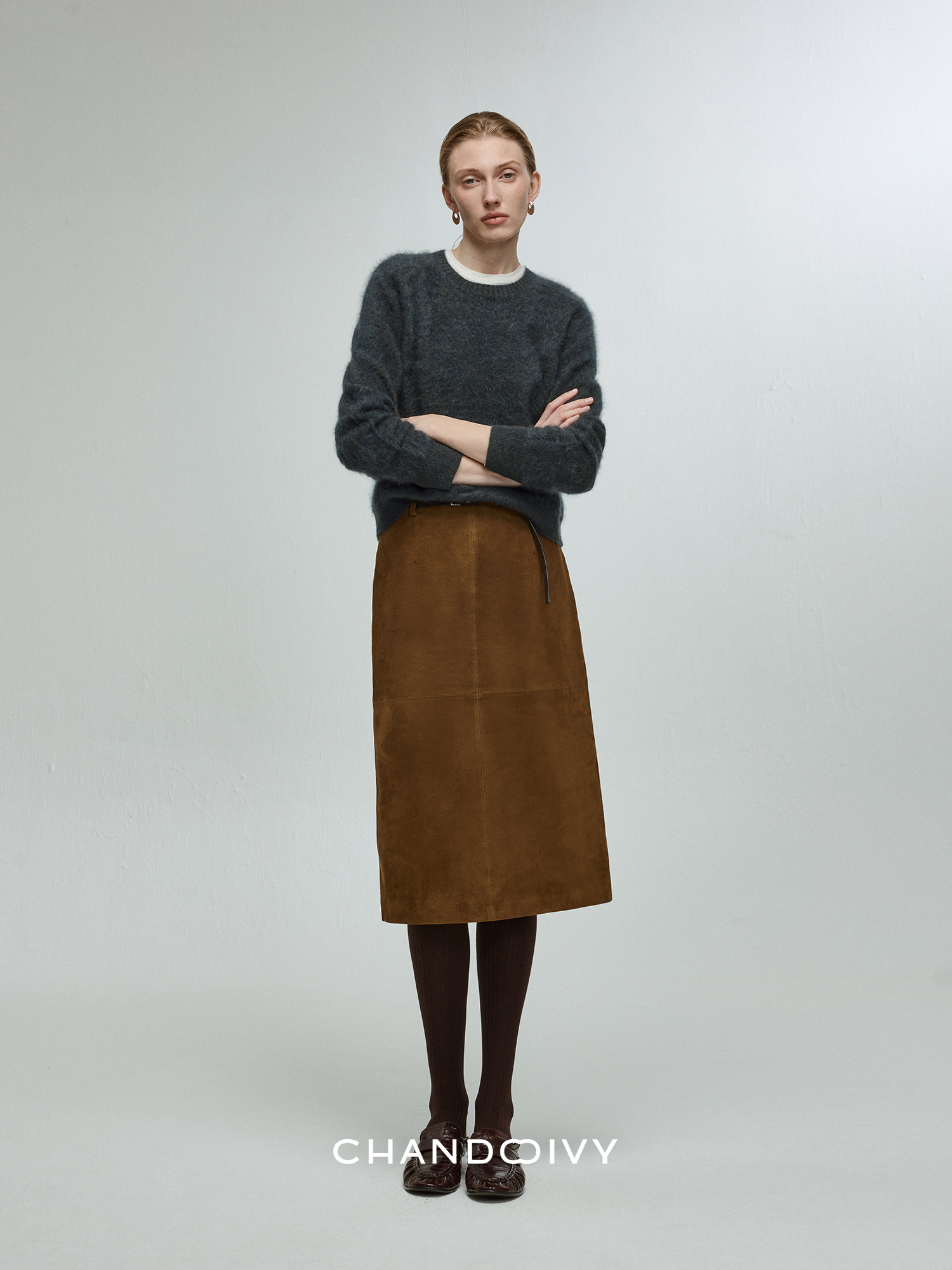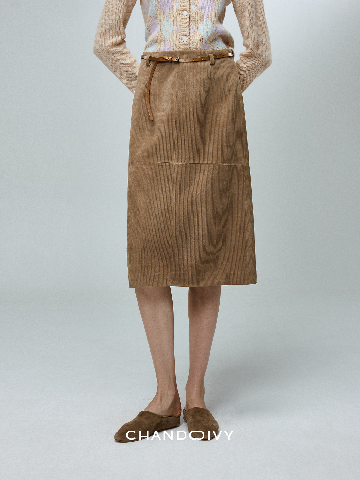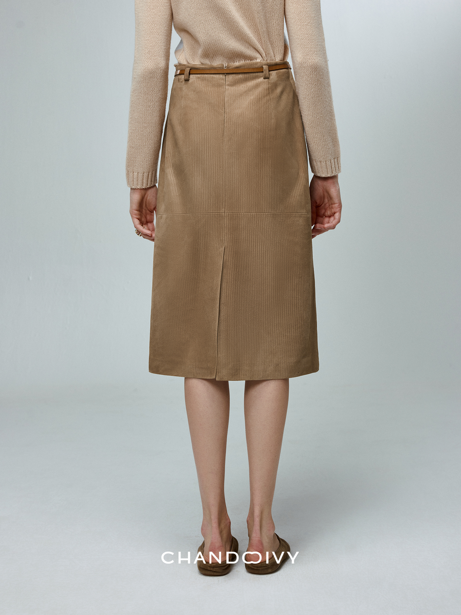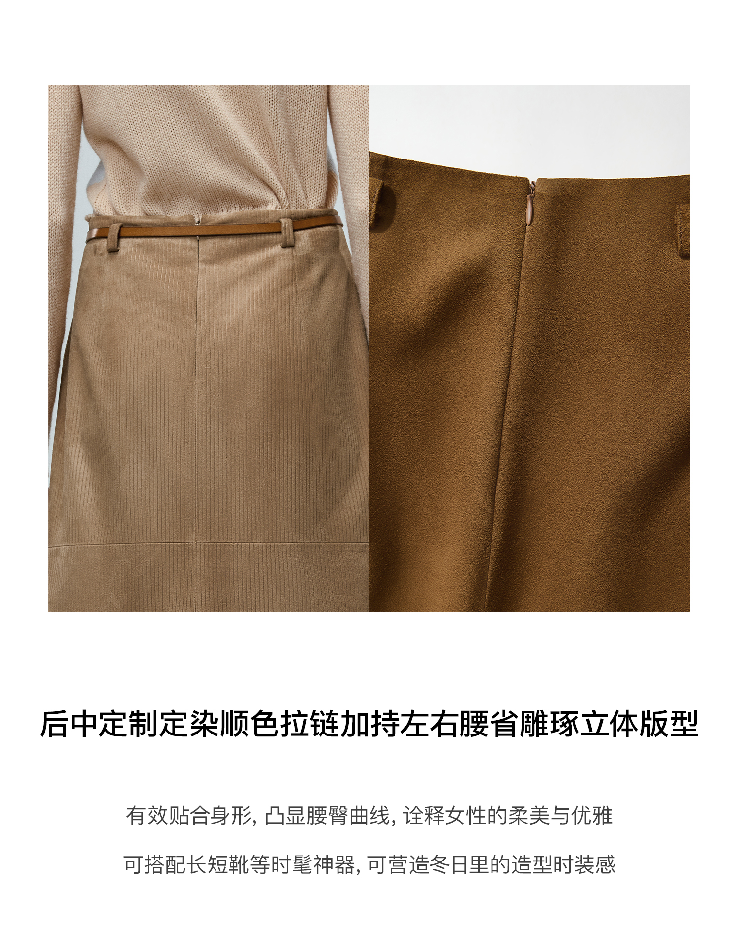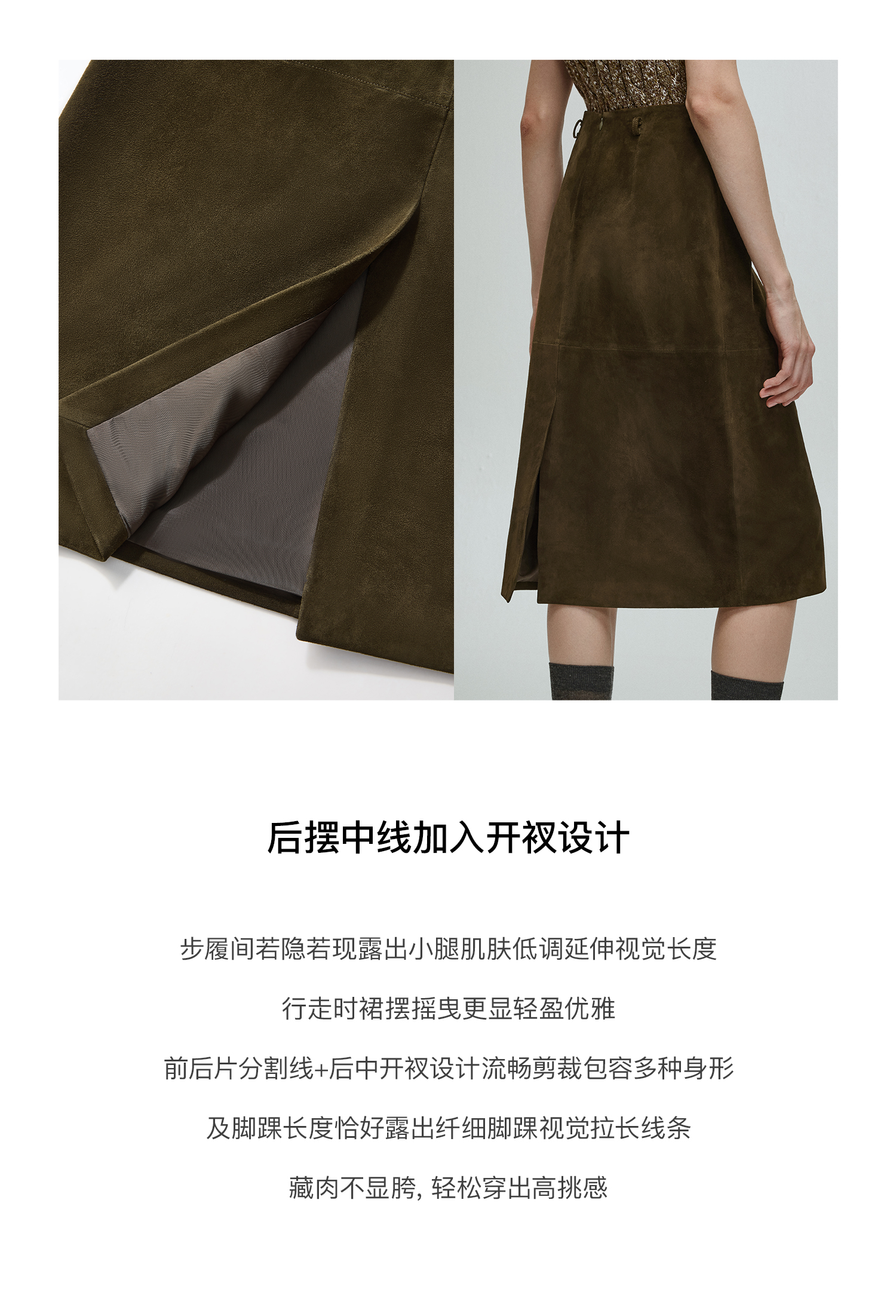 Chandooivy Imported Sheep Suede Exclusive Custom-Dyed Simple Distressed High-Waisted Slimming Mid-Length Skirt