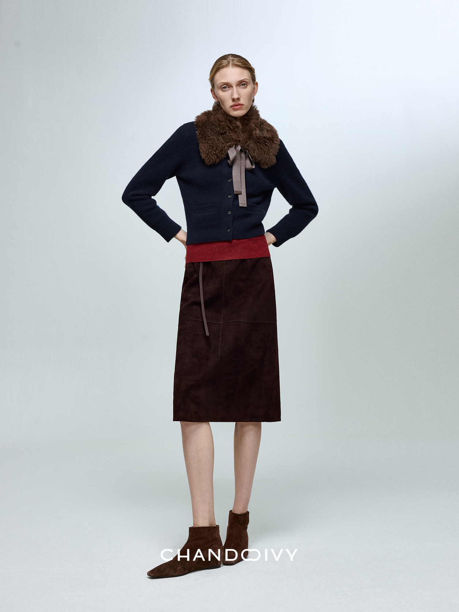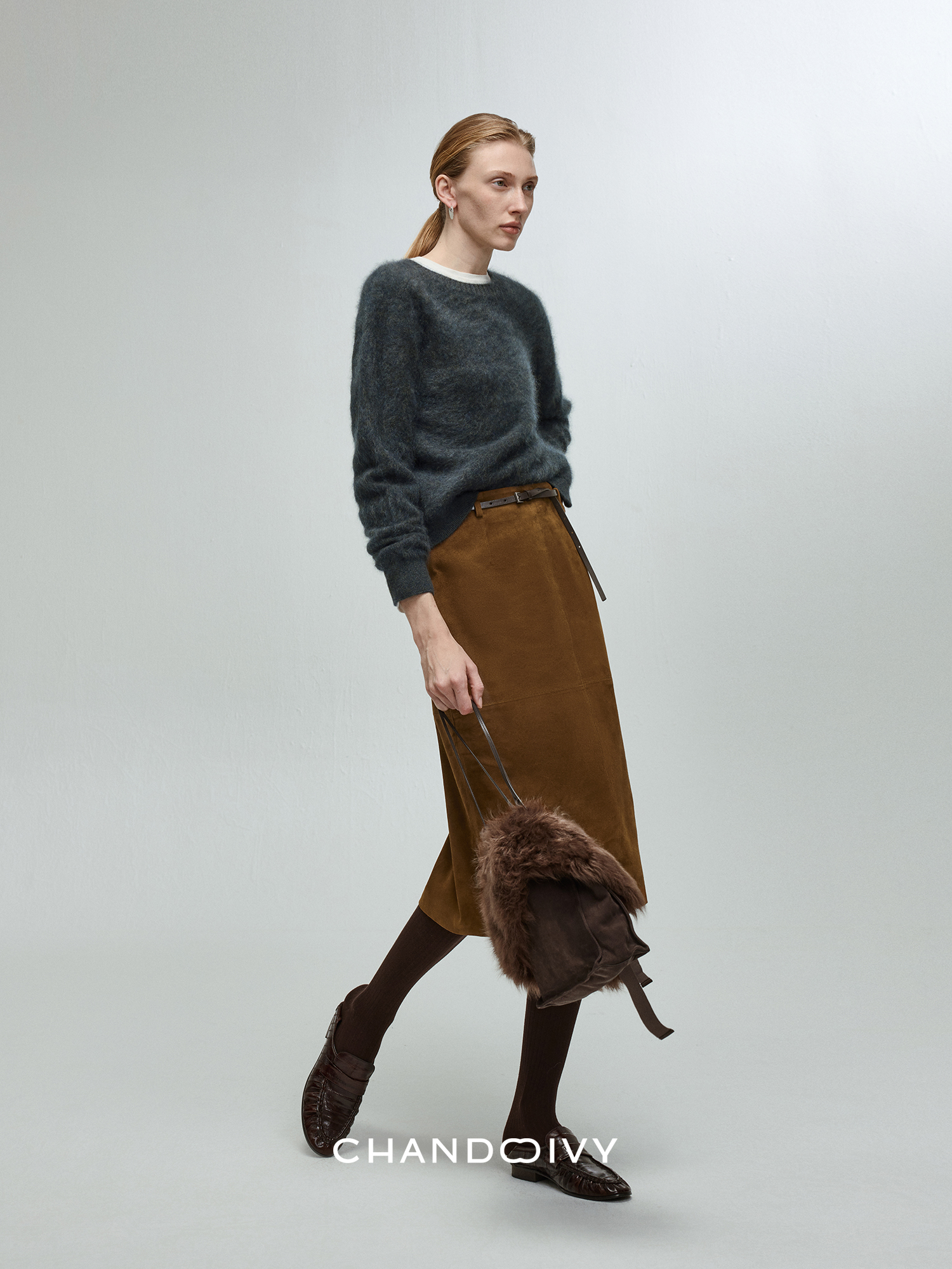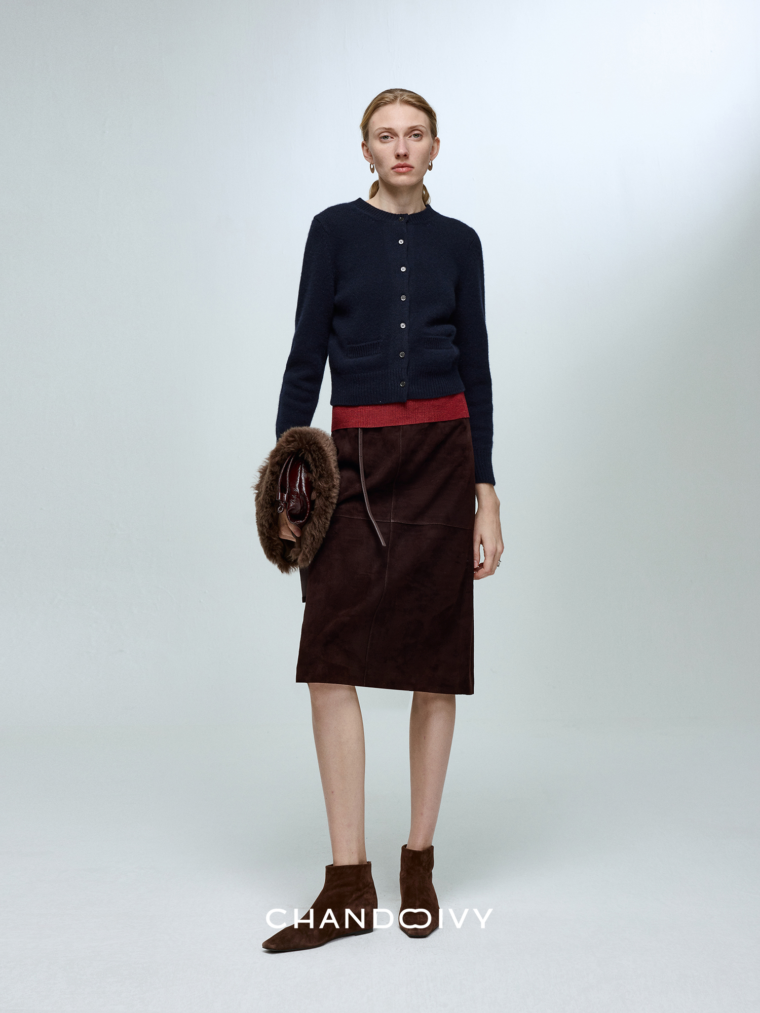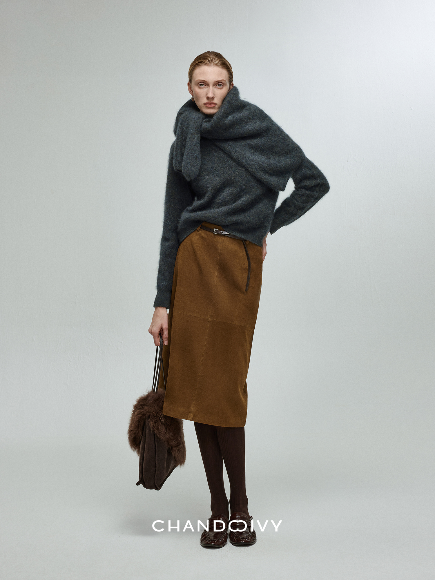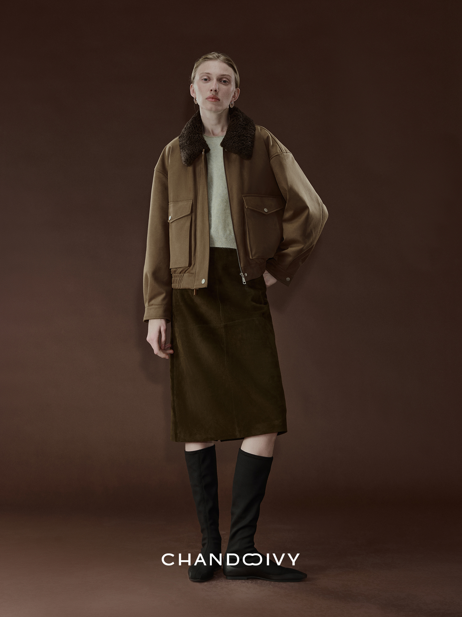 Chandooivy Imported Sheep Suede Exclusive Custom-Dyed Simple Distressed High-Waisted Slimming Mid-Length Skirt