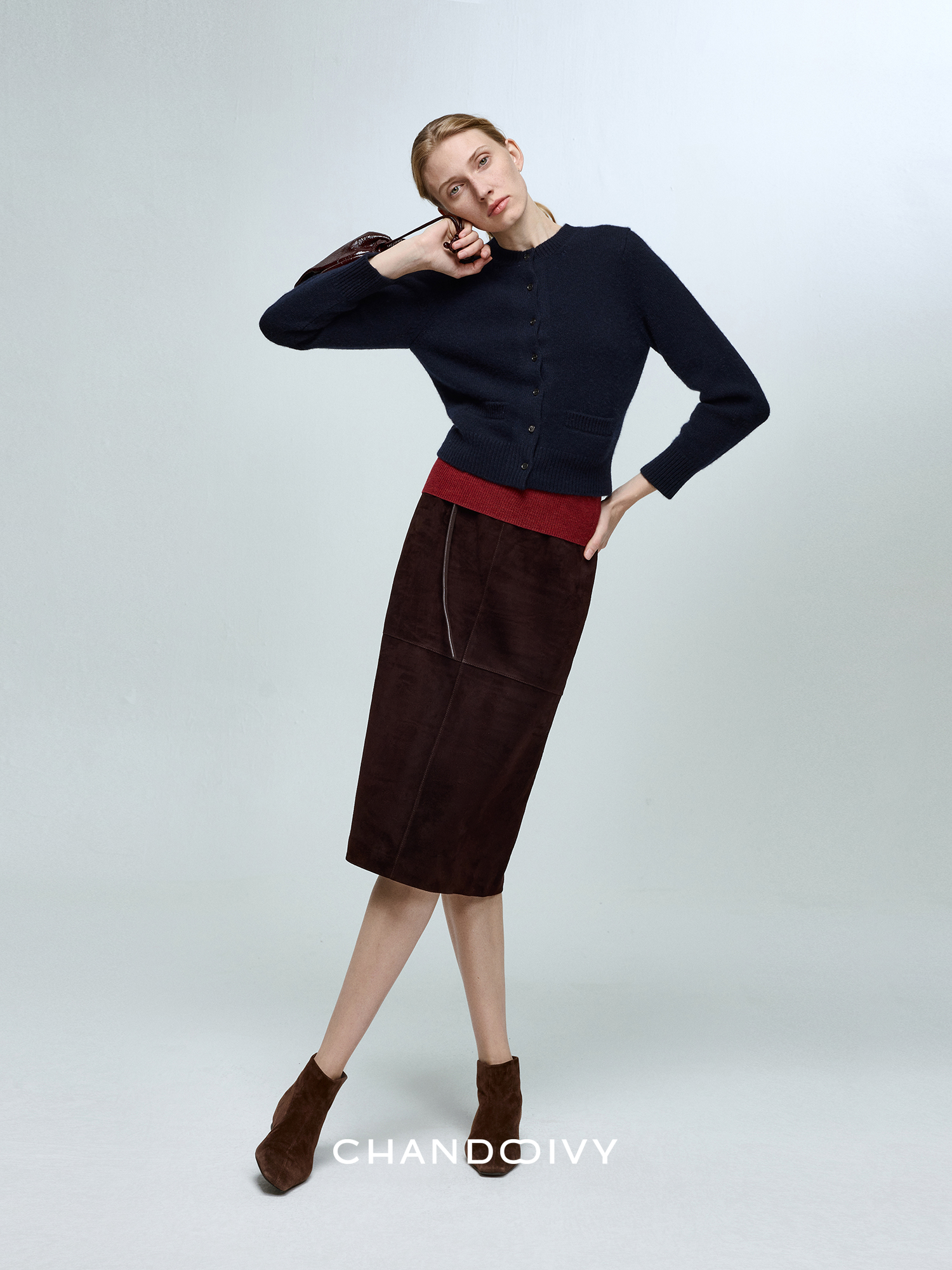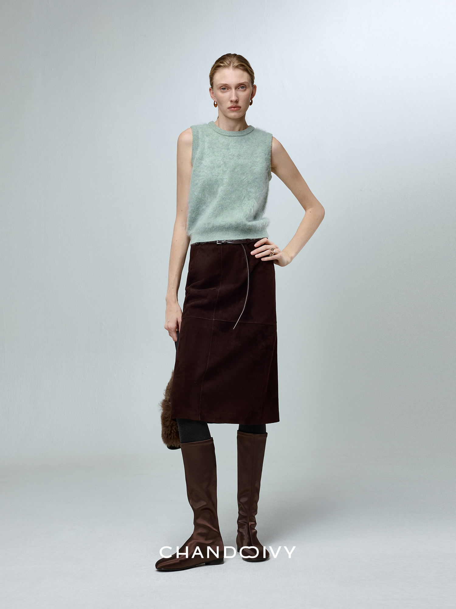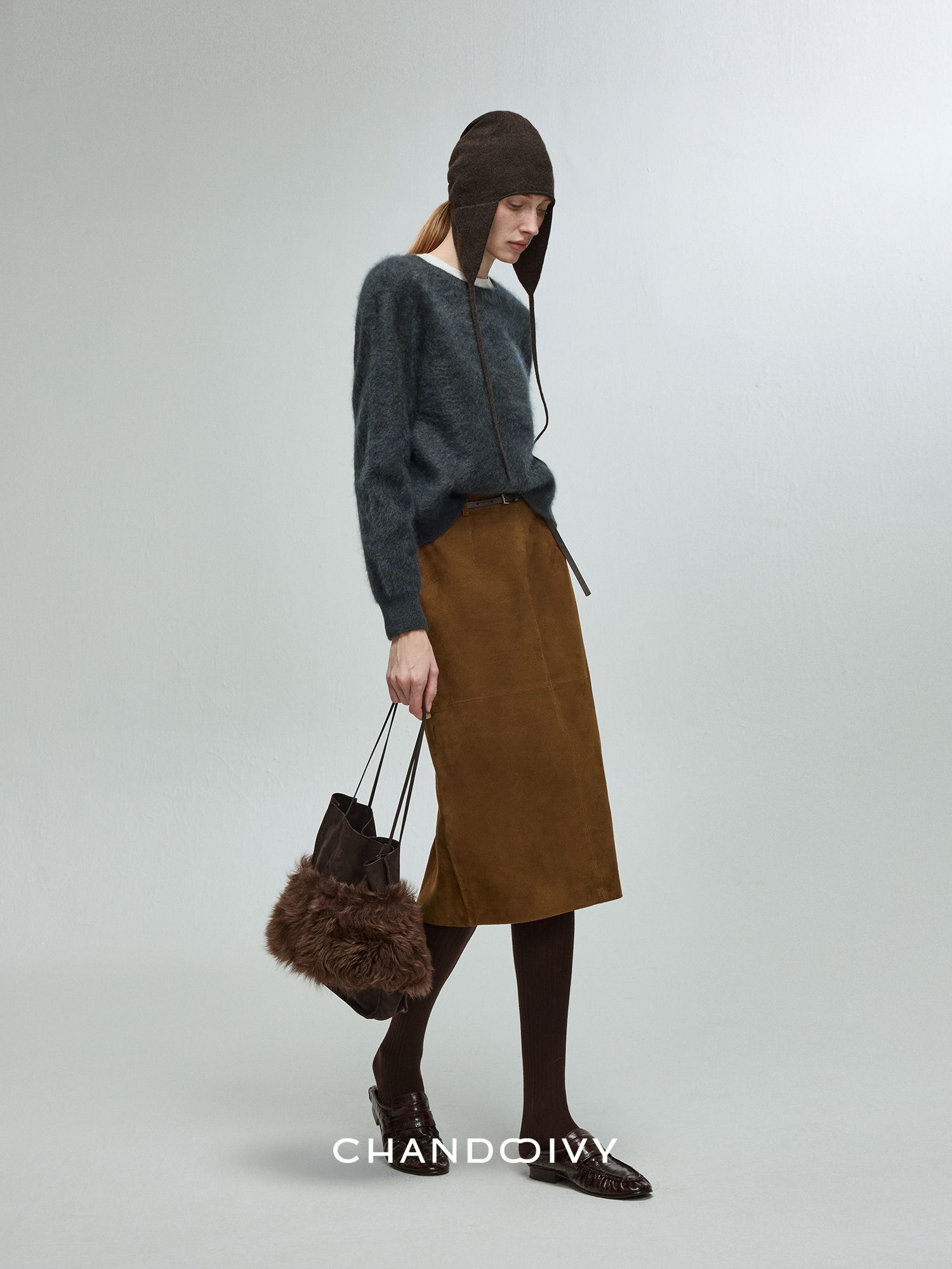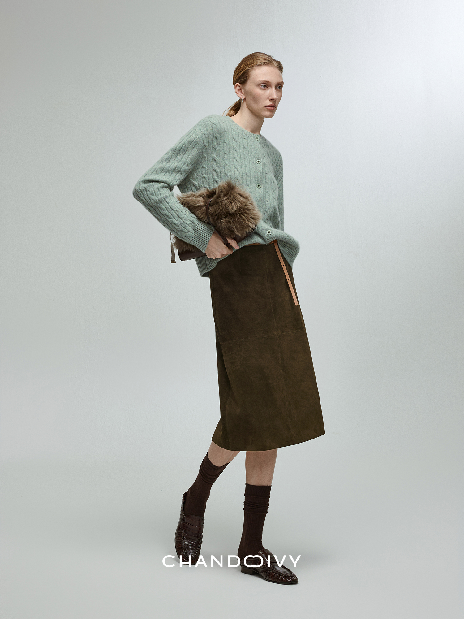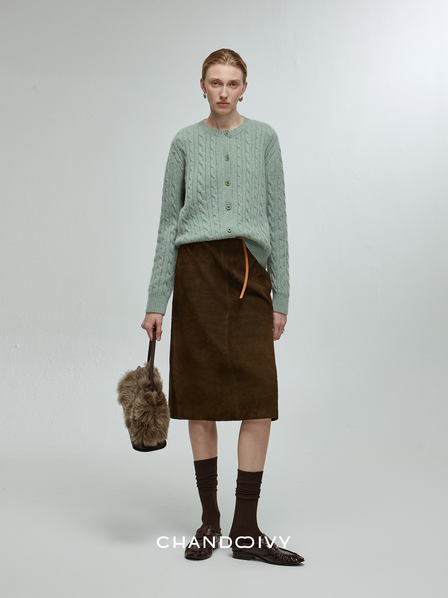 Chandooivy Imported Sheep Suede Exclusive Custom-Dyed Simple Distressed High-Waisted Slimming Mid-Length Skirt