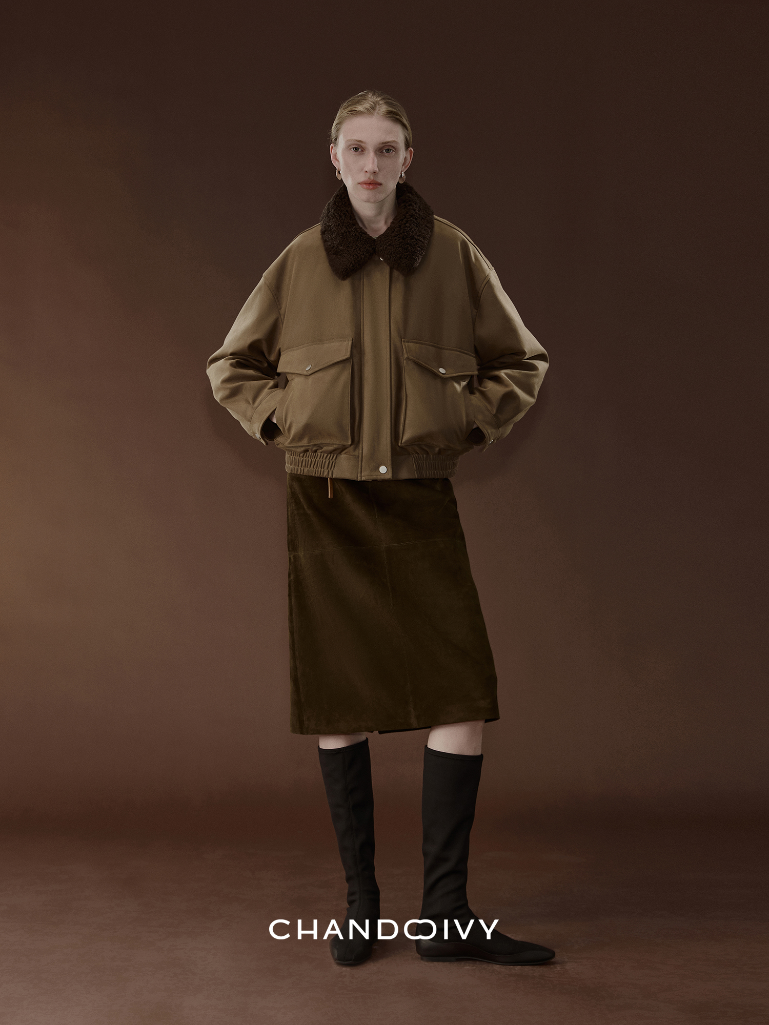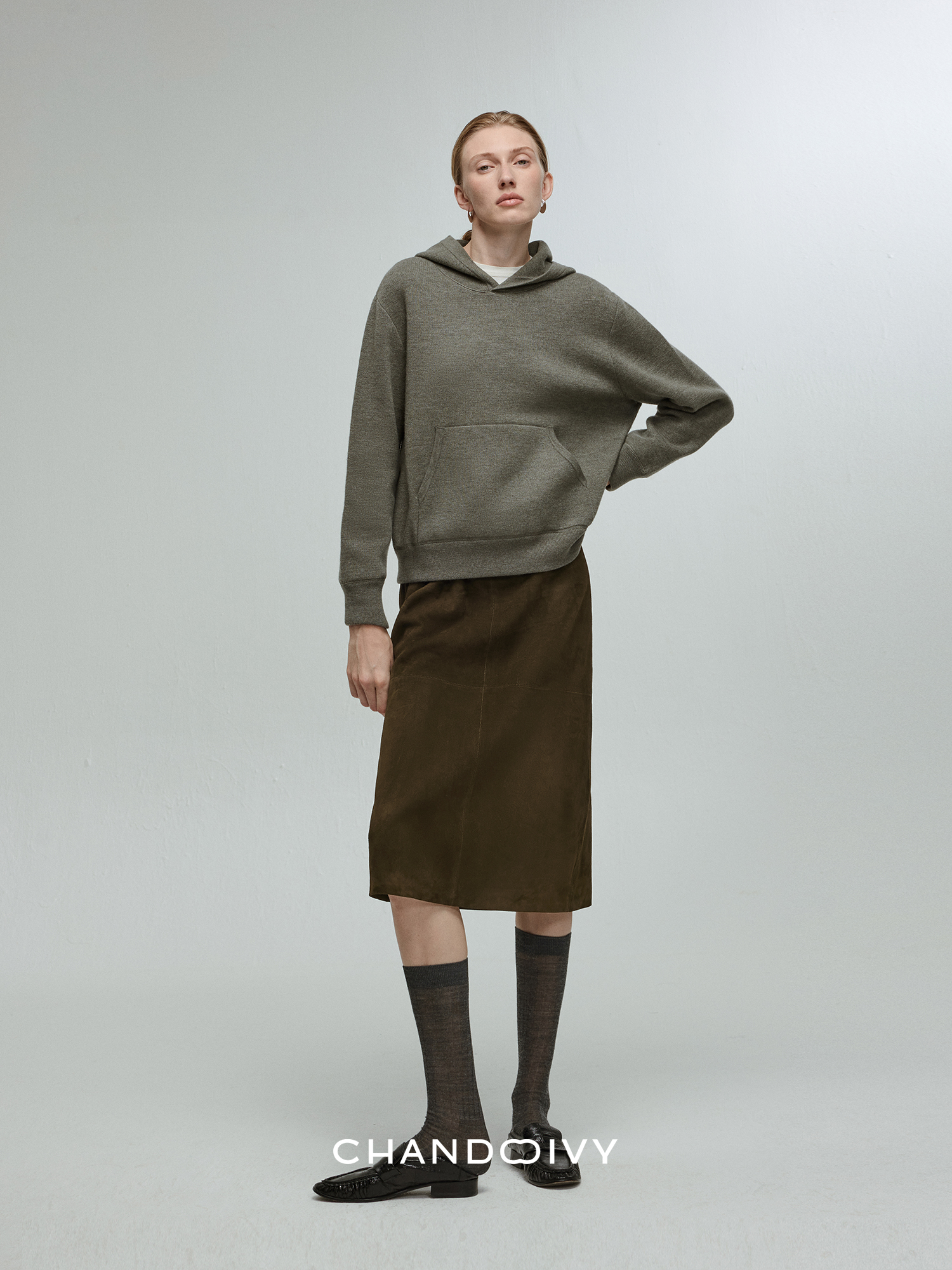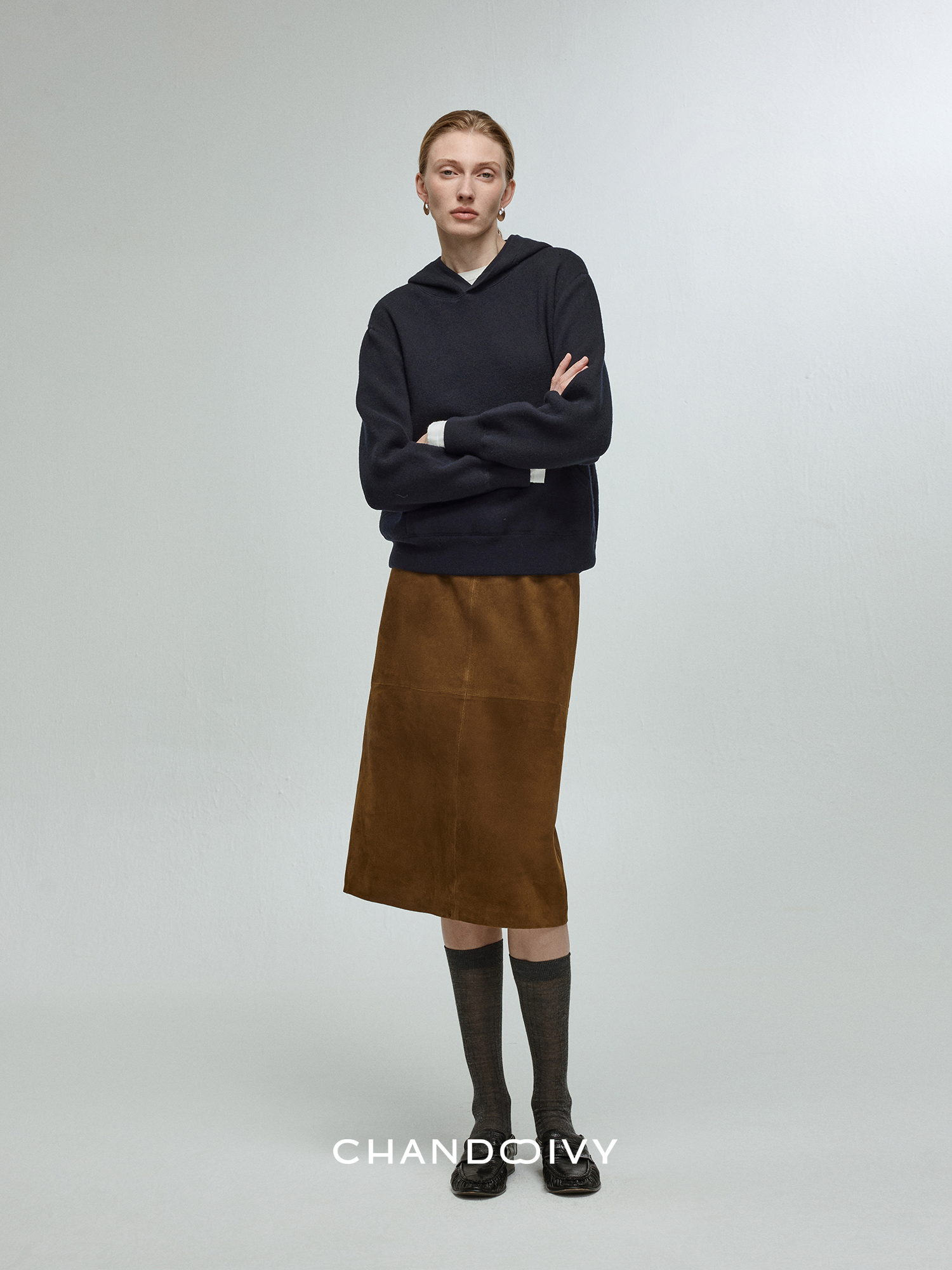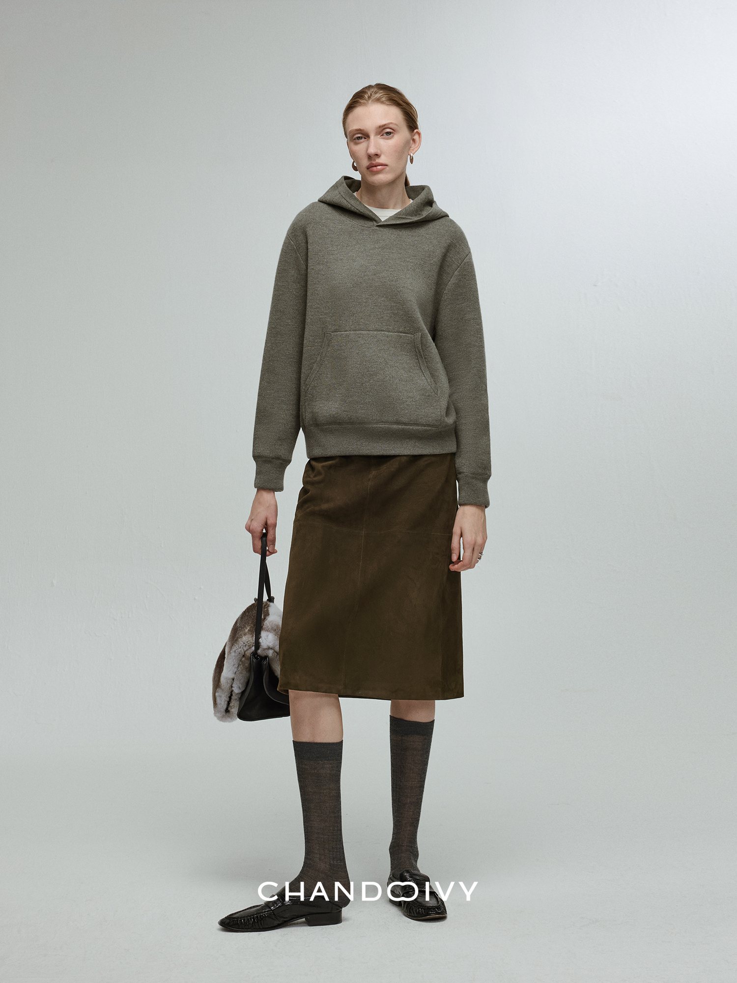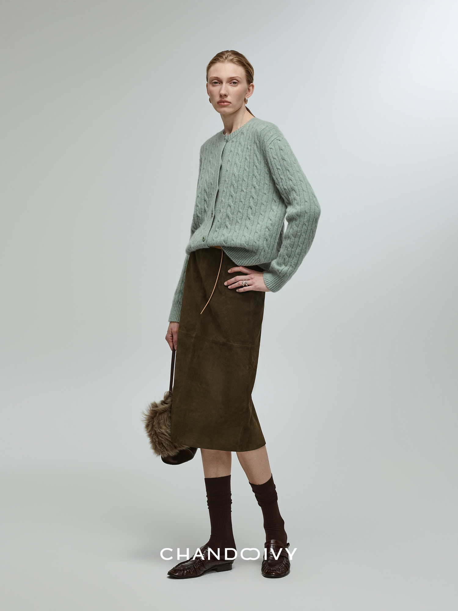 Chandooivy Imported Sheep Suede Exclusive Custom-Dyed Simple Distressed High-Waisted Slimming Mid-Length Skirt
