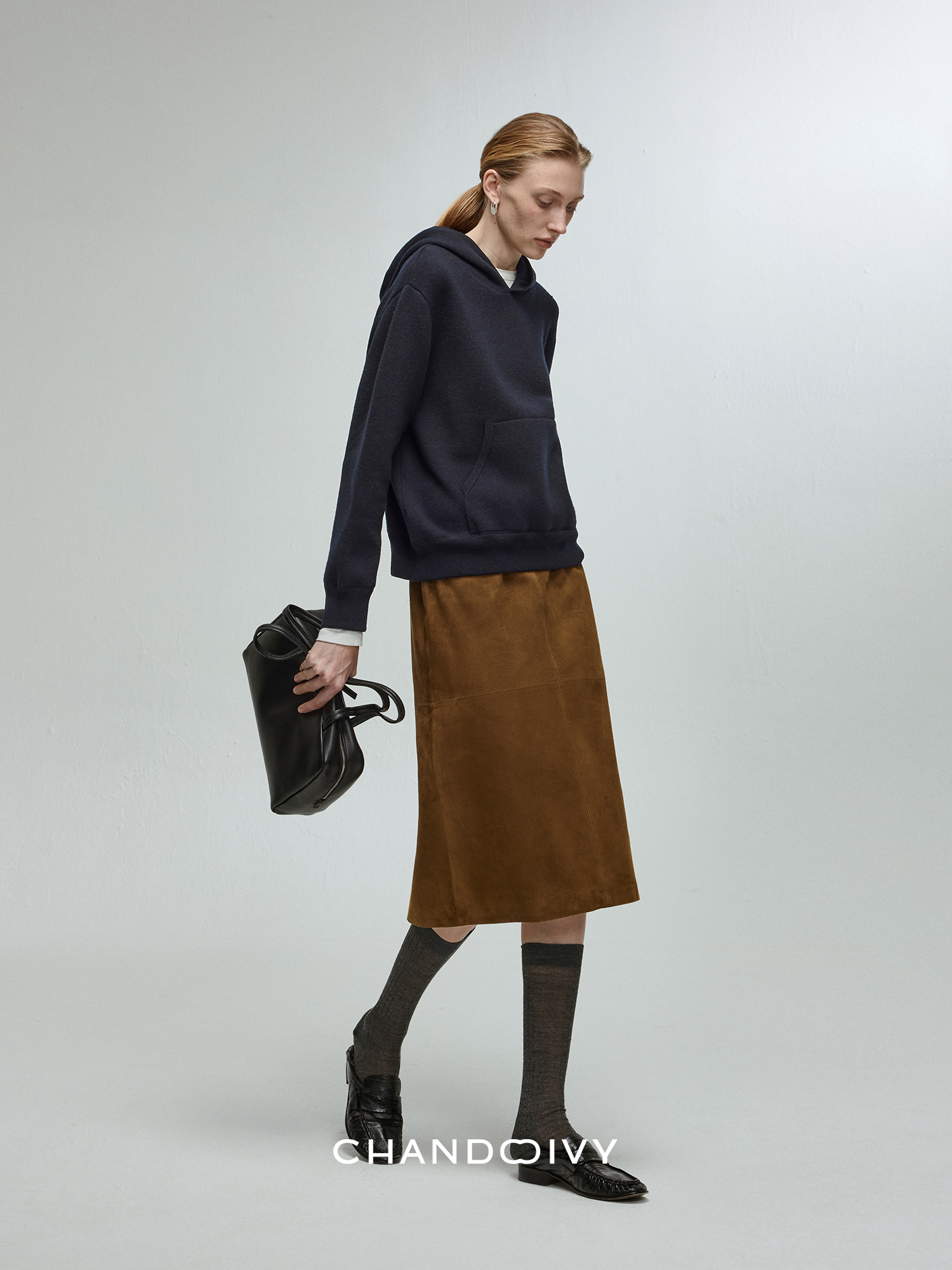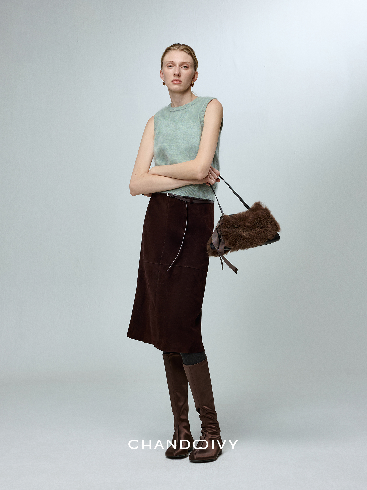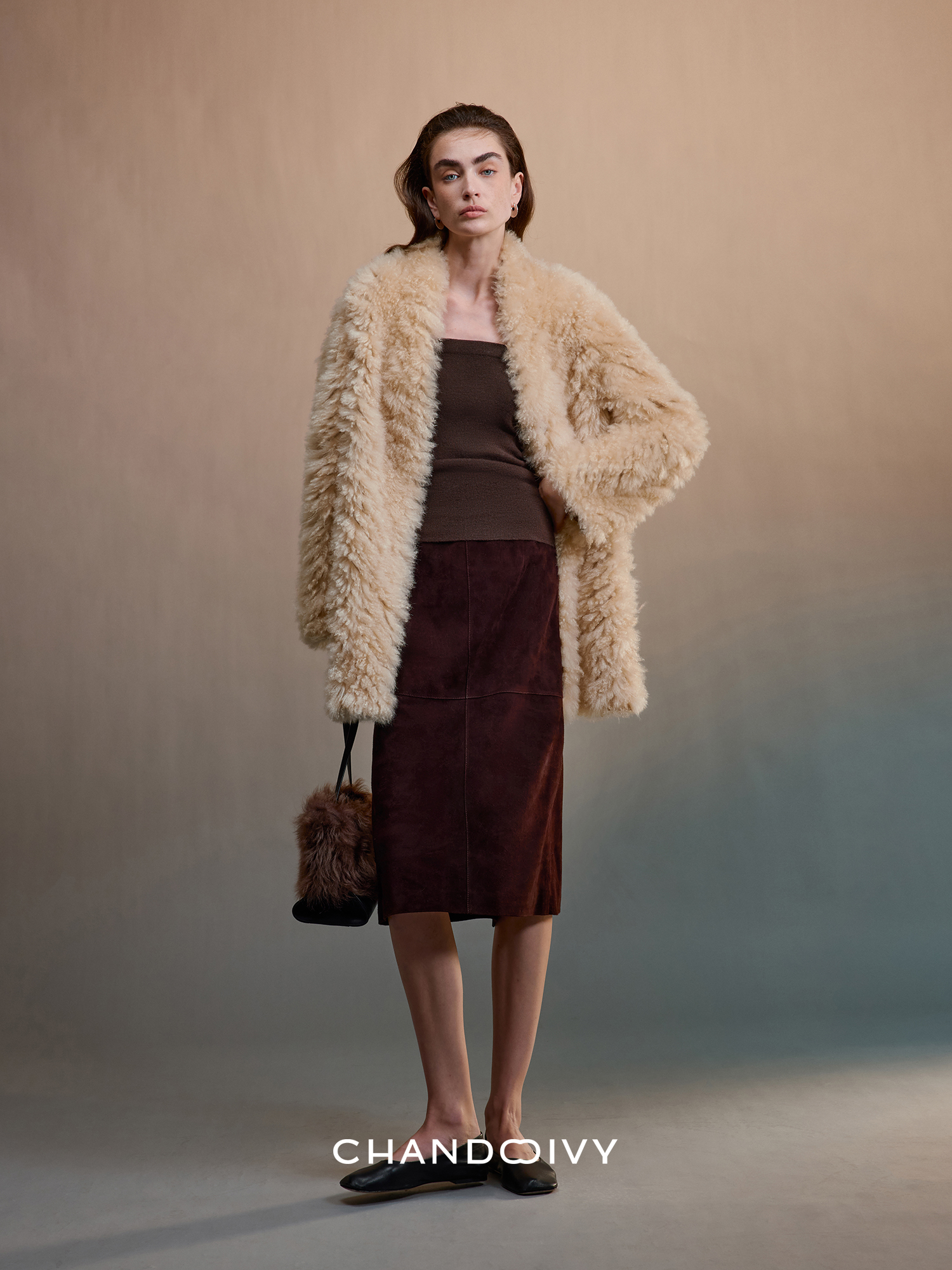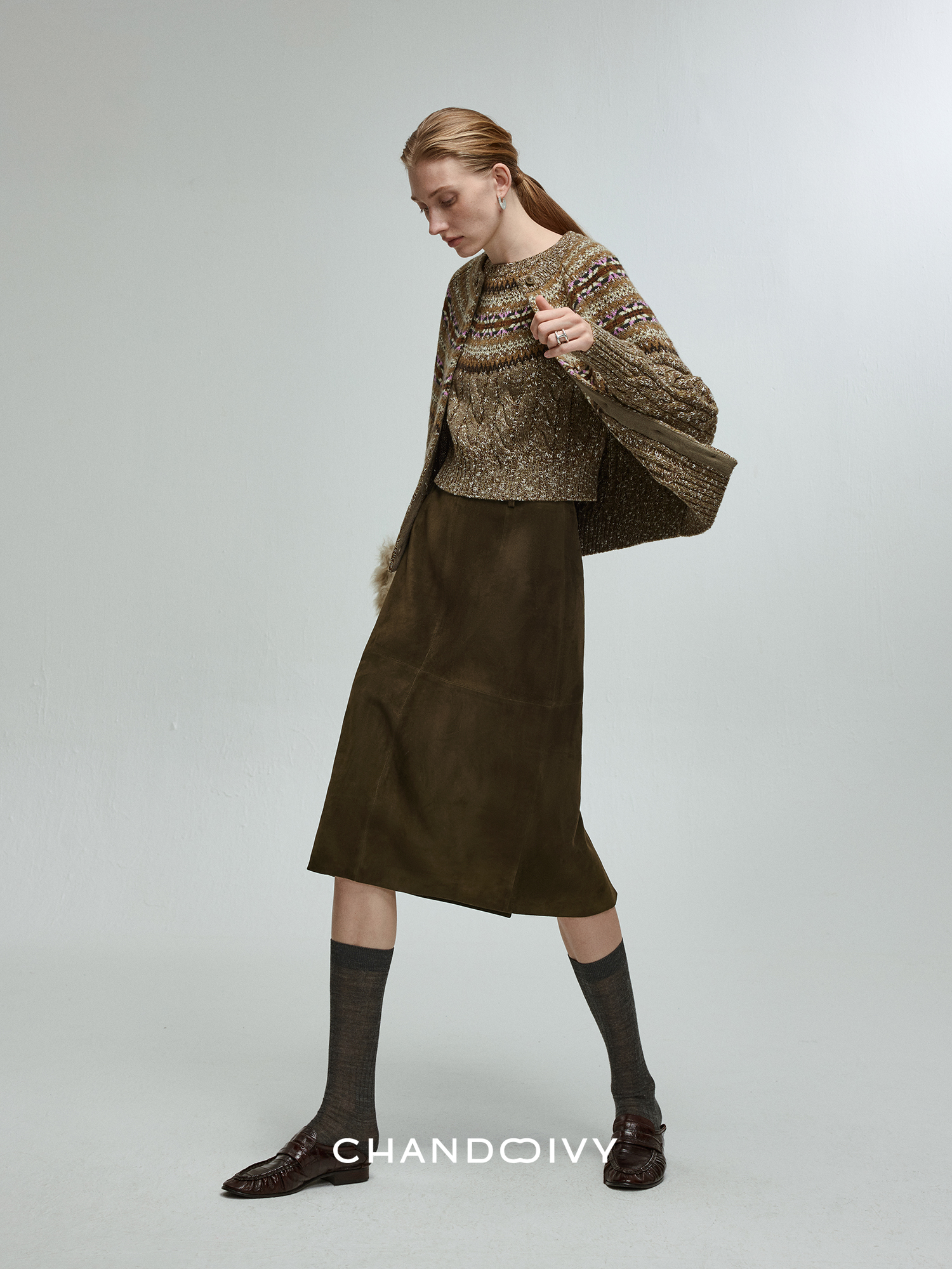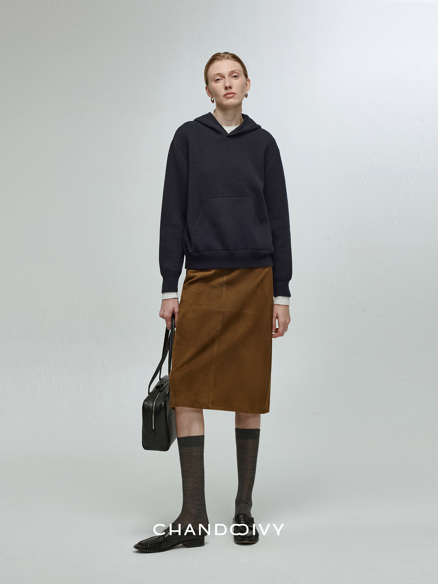 Chandooivy Imported Sheep Suede Exclusive Custom-Dyed Simple Distressed High-Waisted Slimming Mid-Length Skirt