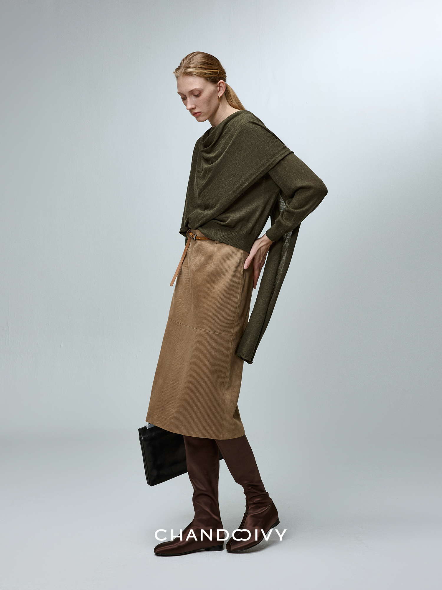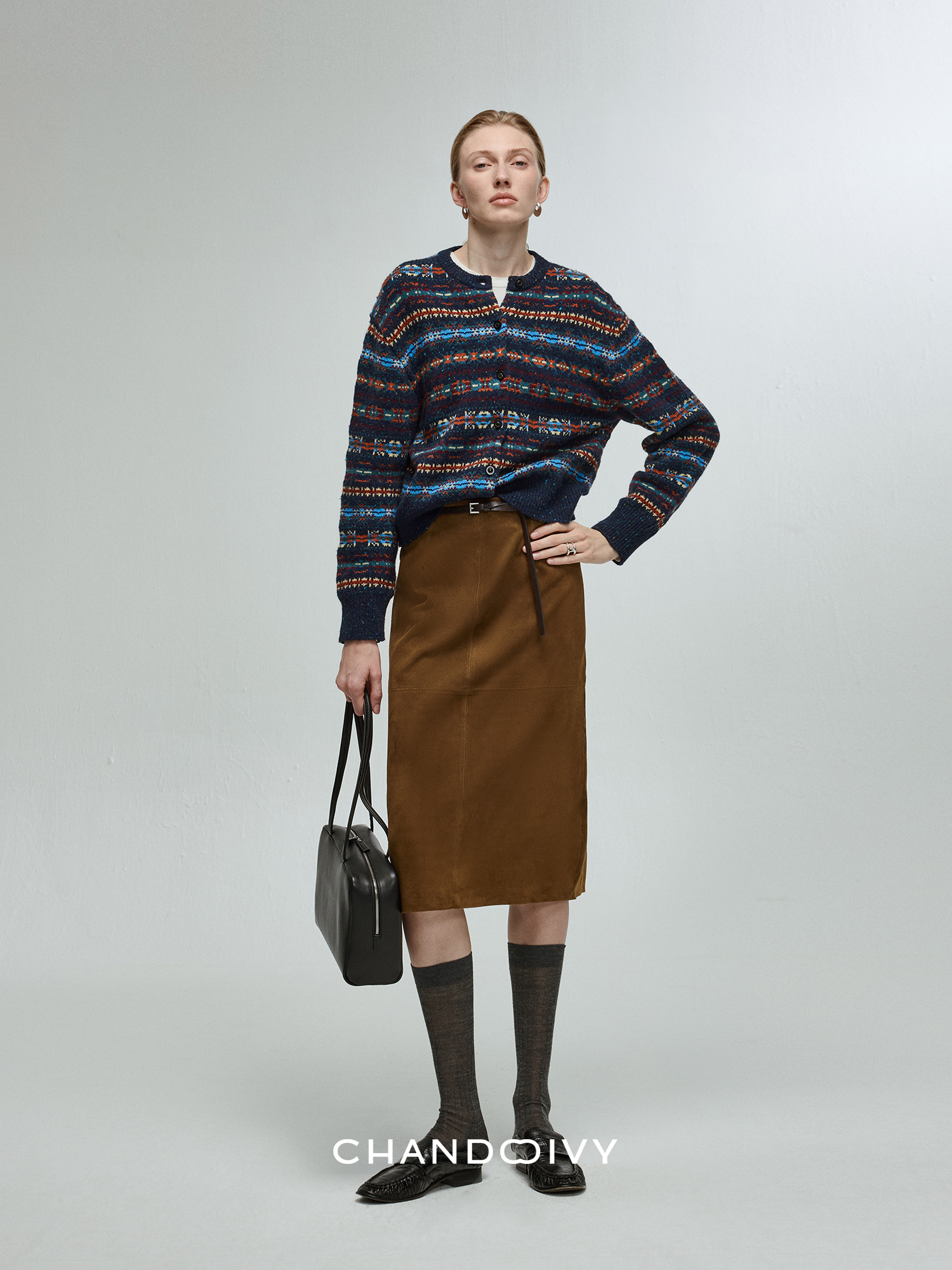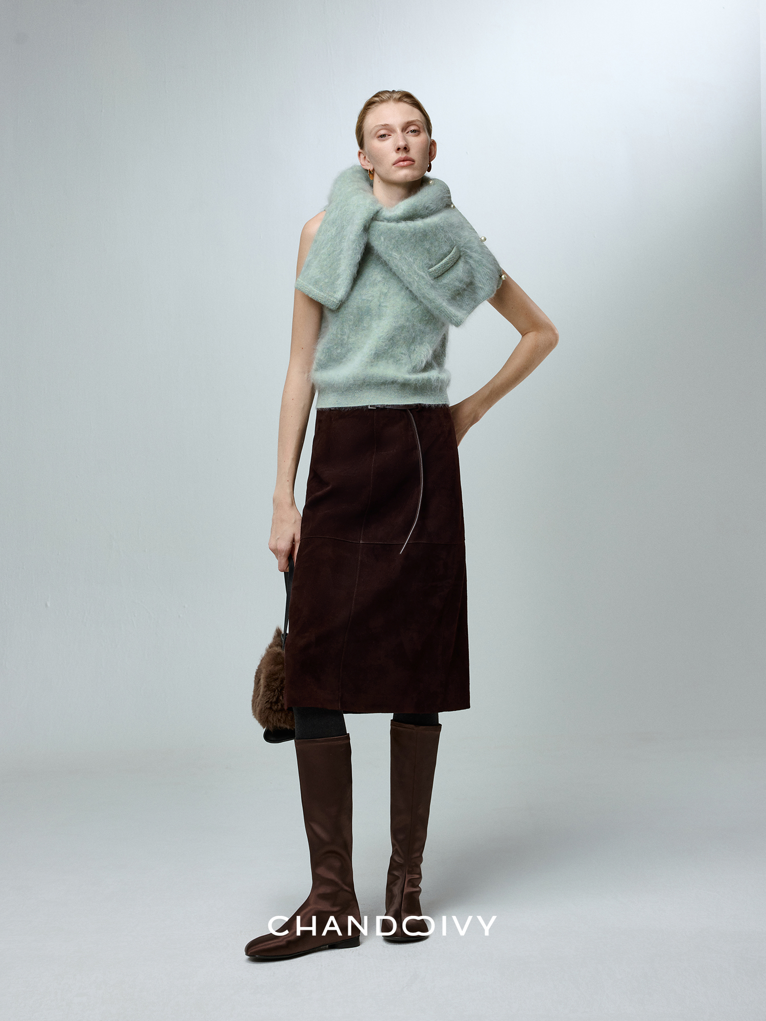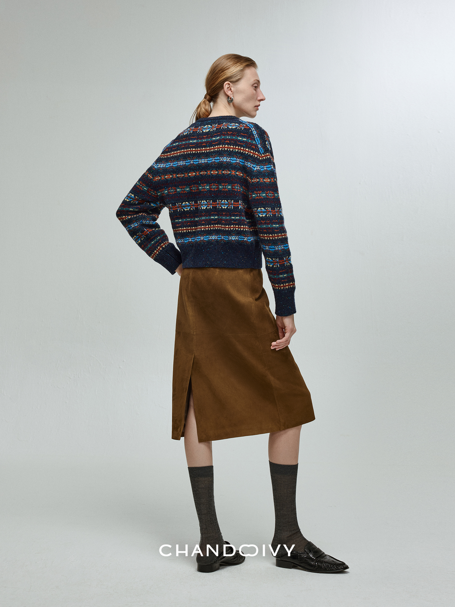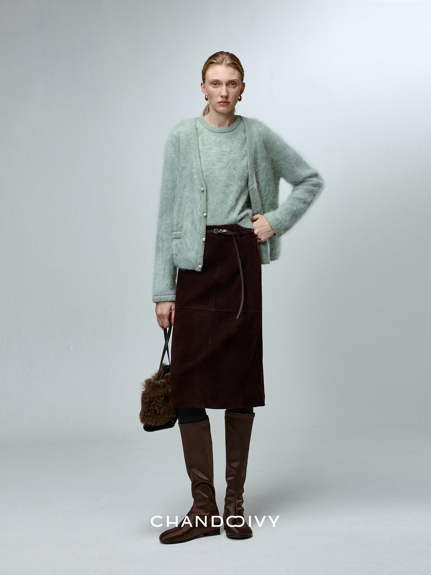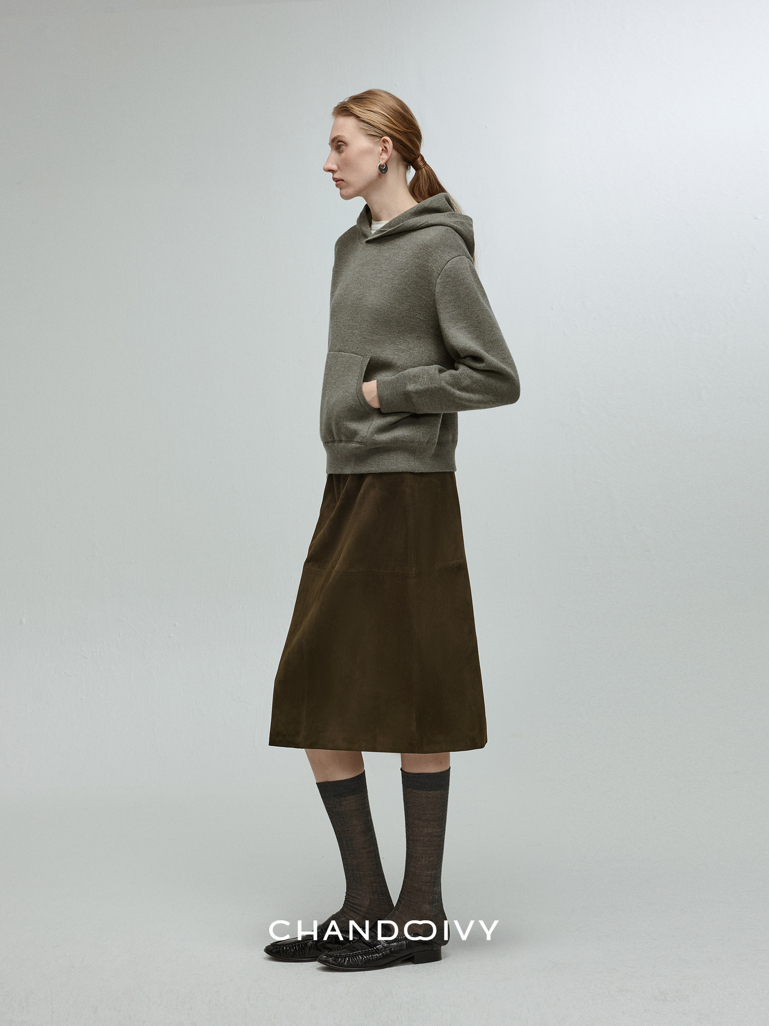 Chandooivy Imported Sheep Suede Exclusive Custom-Dyed Simple Distressed High-Waisted Slimming Mid-Length Skirt