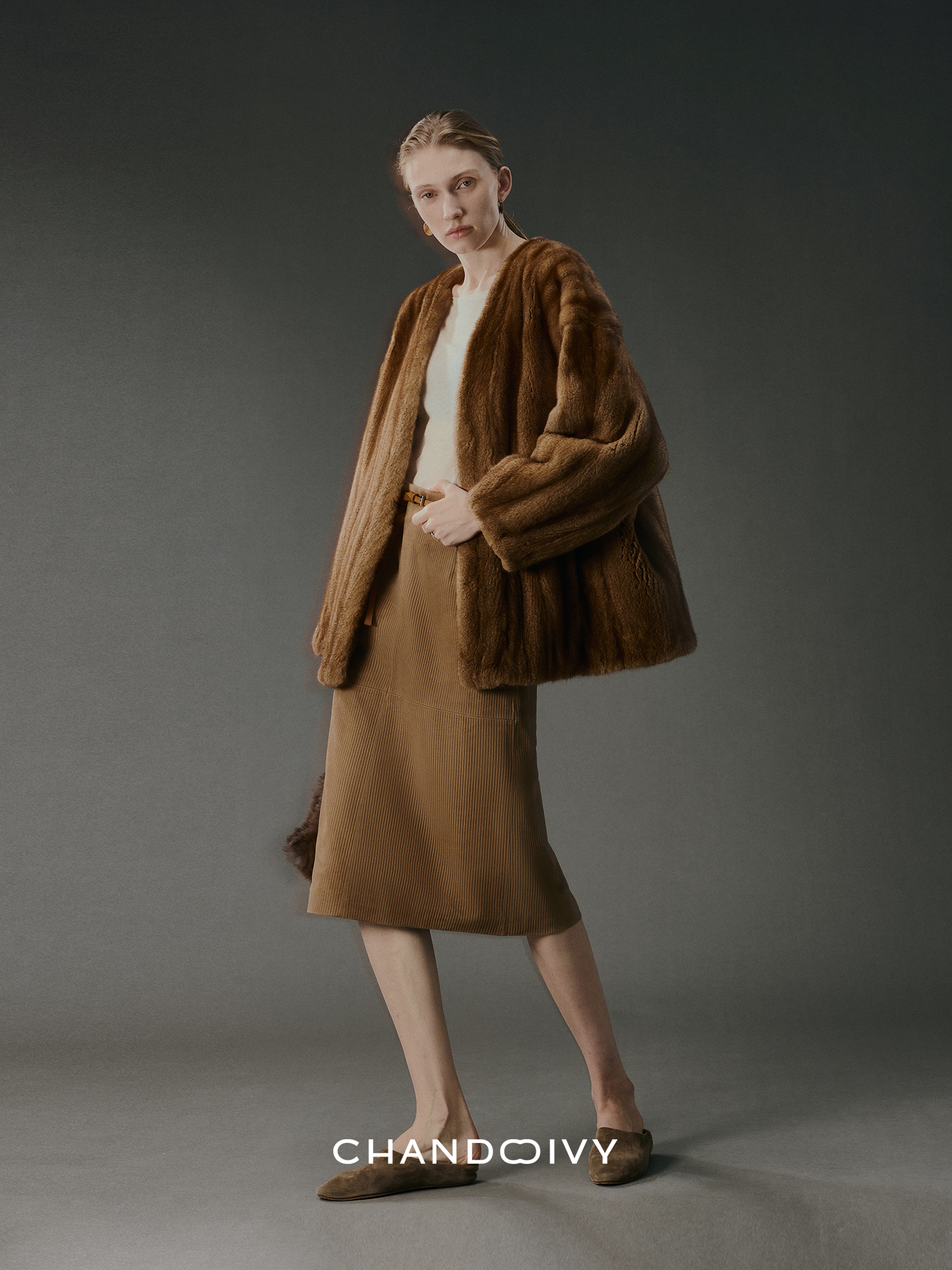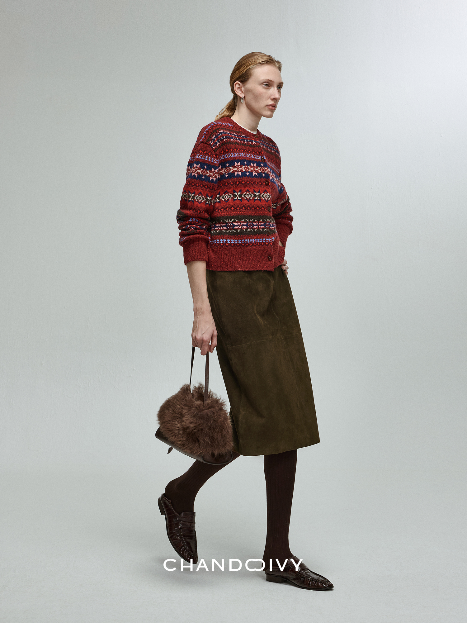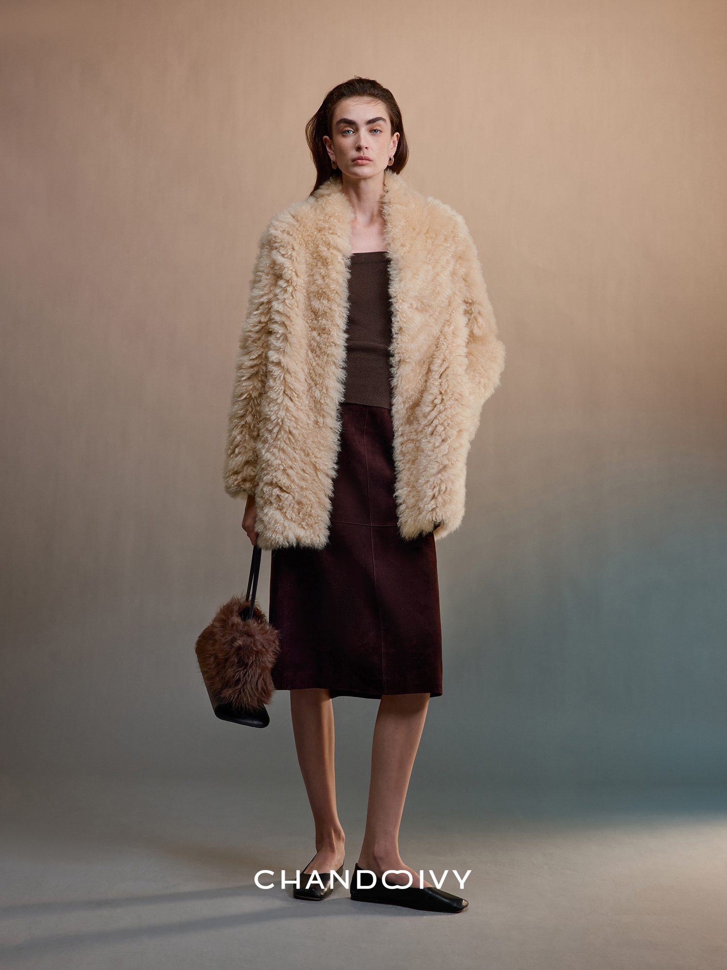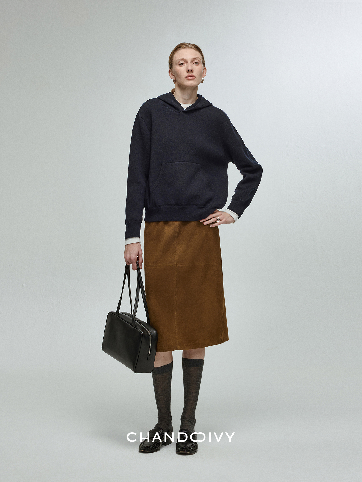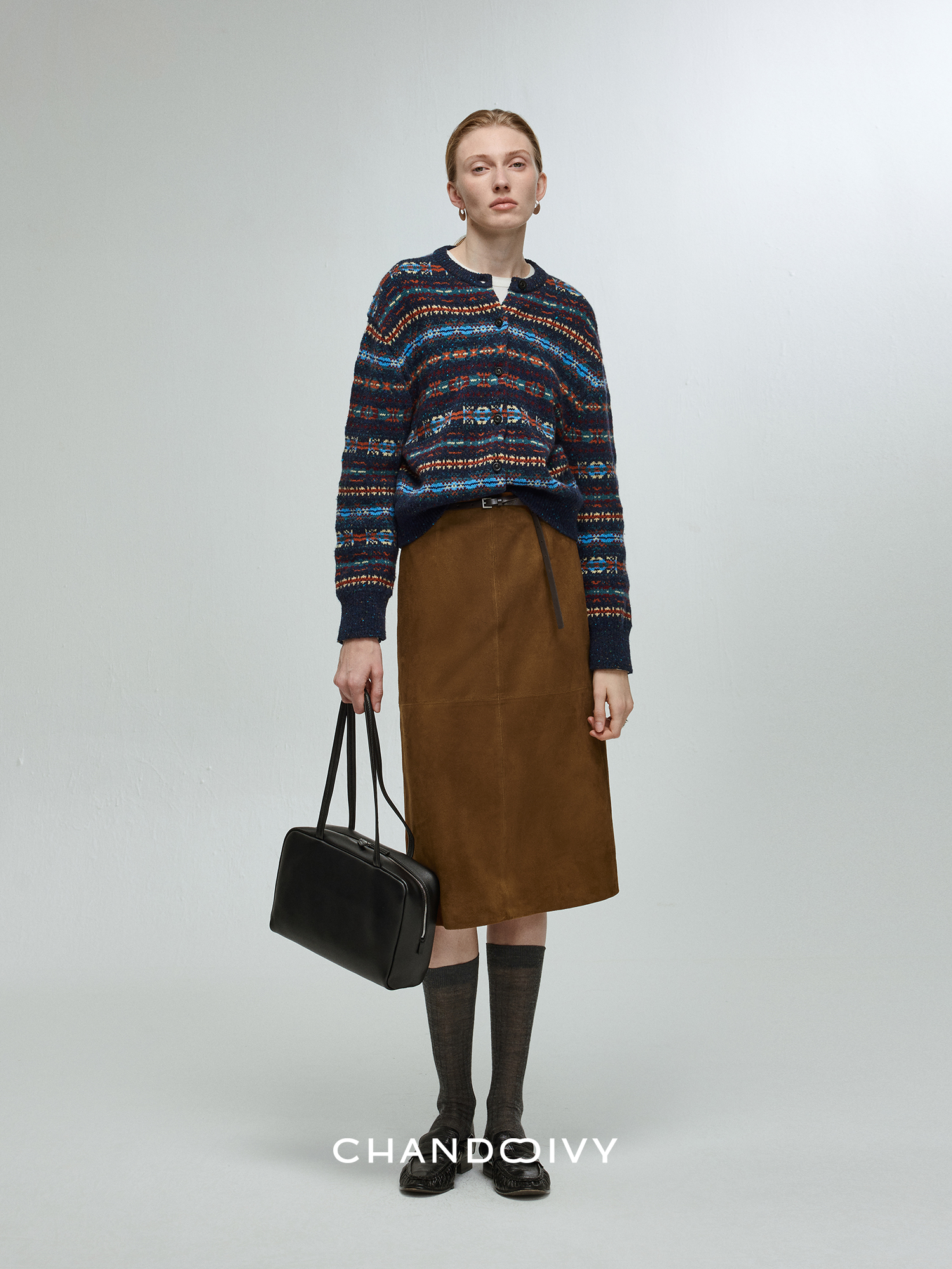 Chandooivy Imported Sheep Suede Exclusive Custom-Dyed Simple Distressed High-Waisted Slimming Mid-Length Skirt