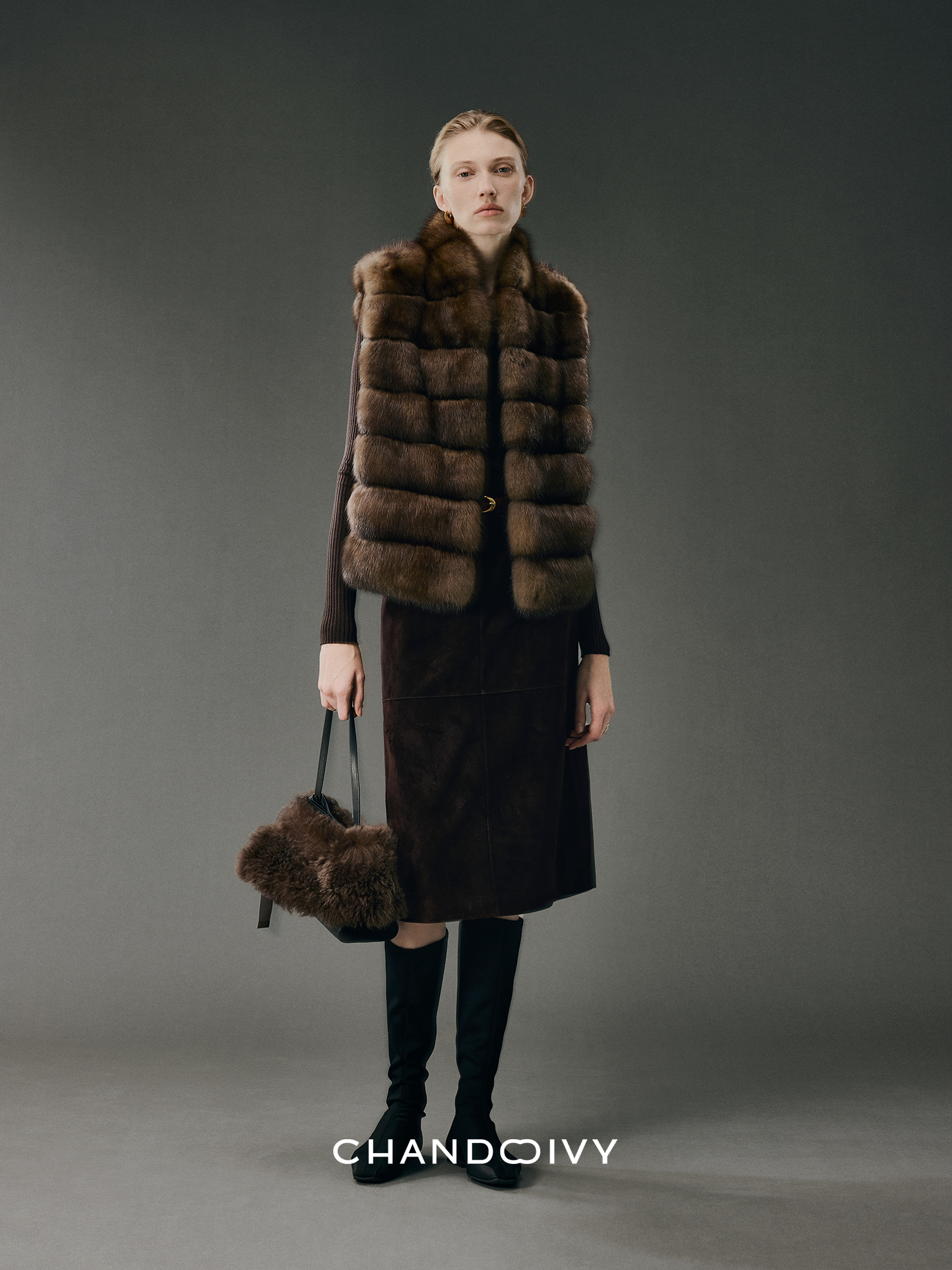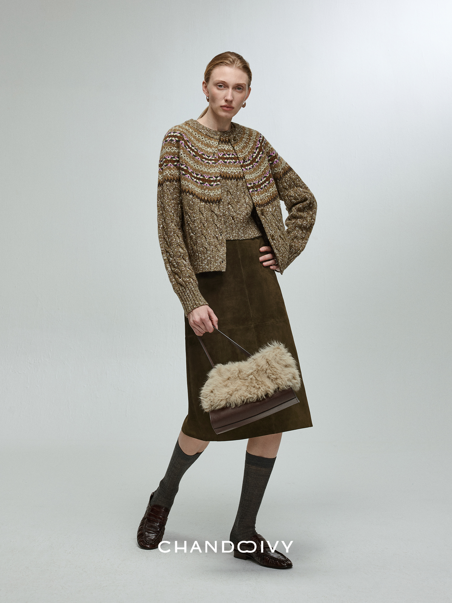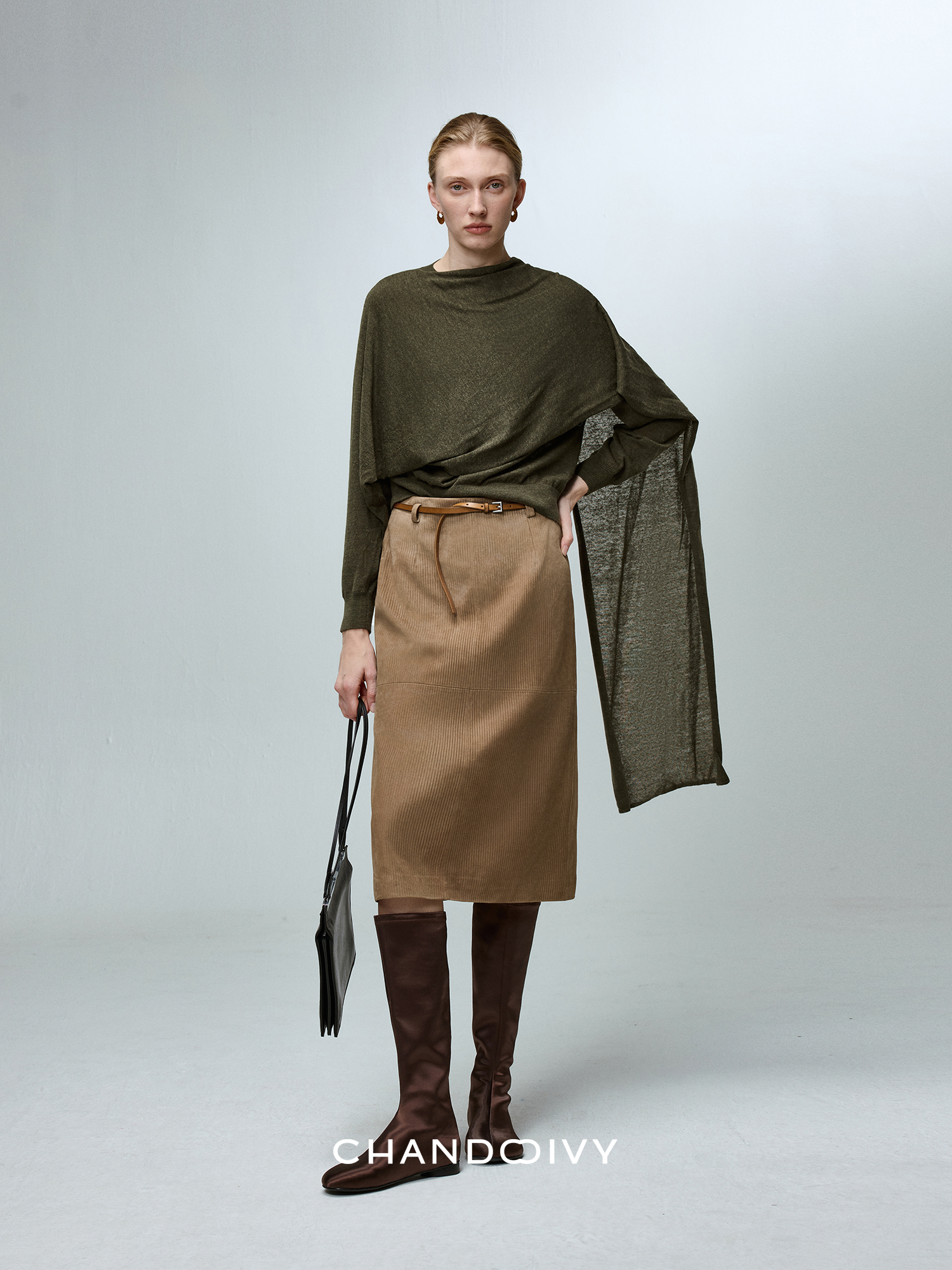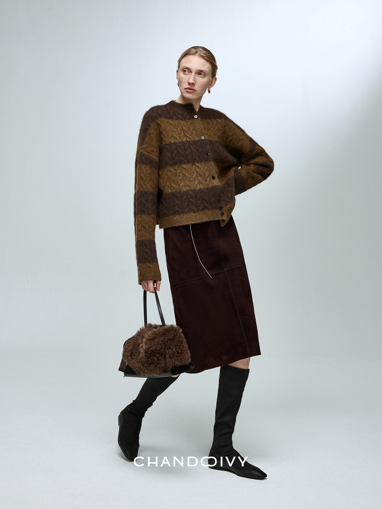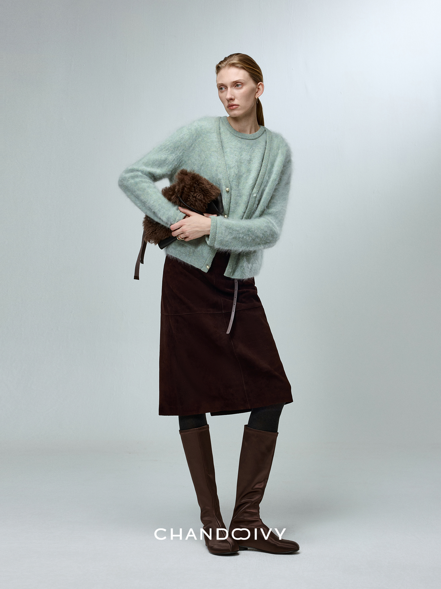 Chandooivy Imported Sheep Suede Exclusive Custom-Dyed Simple Distressed High-Waisted Slimming Mid-Length Skirt