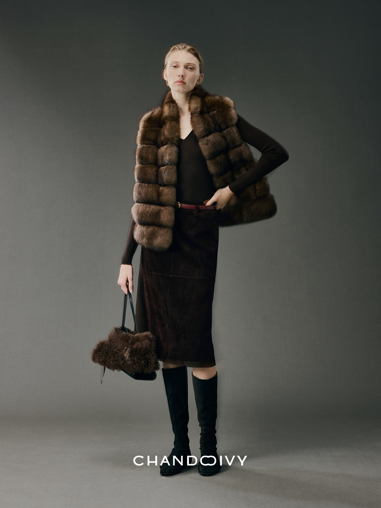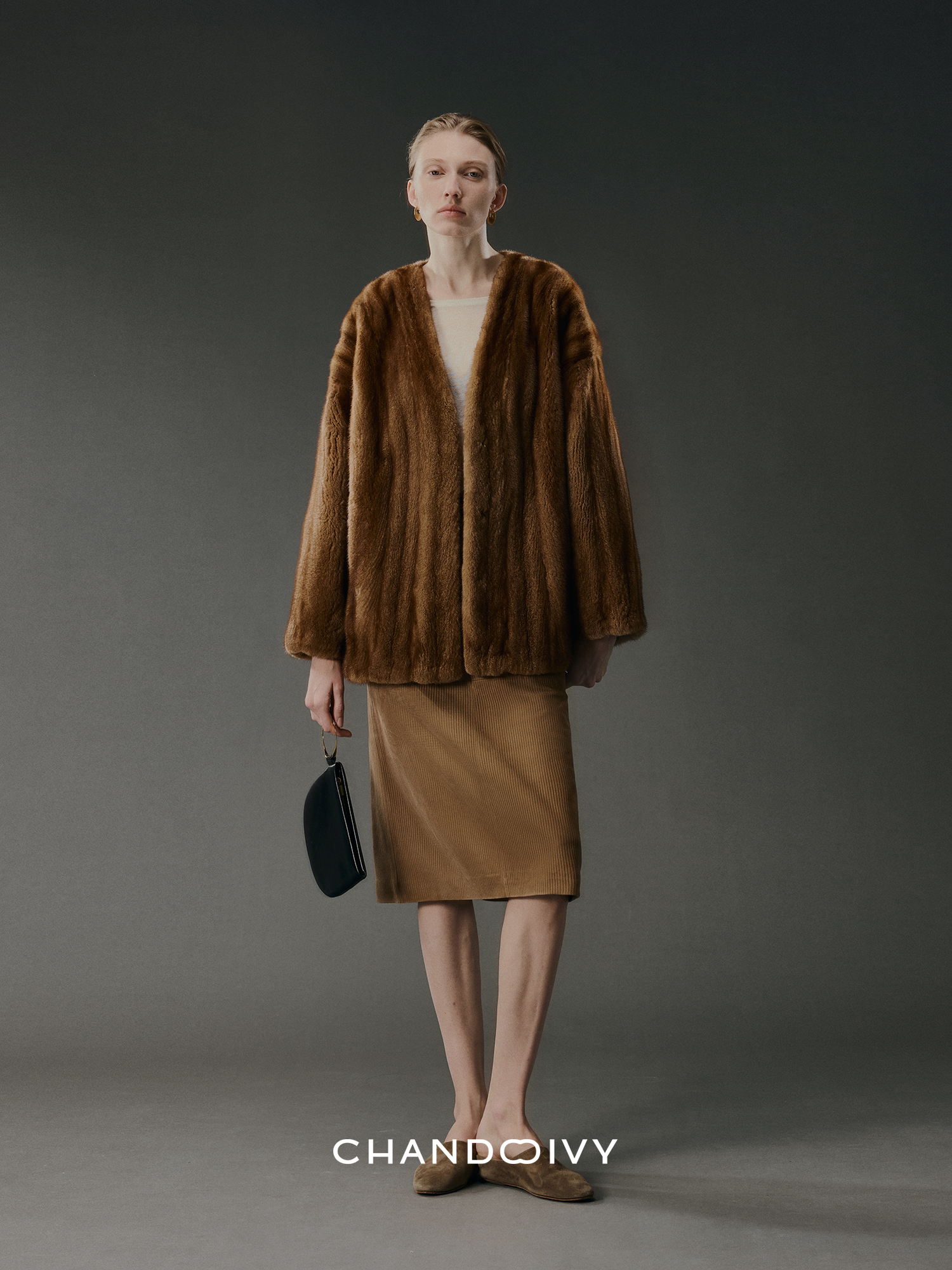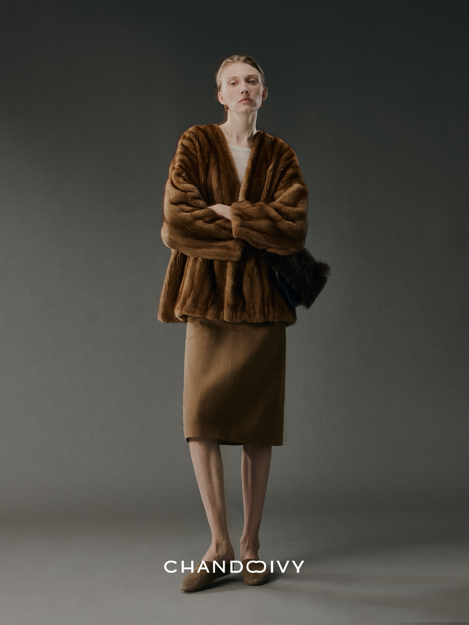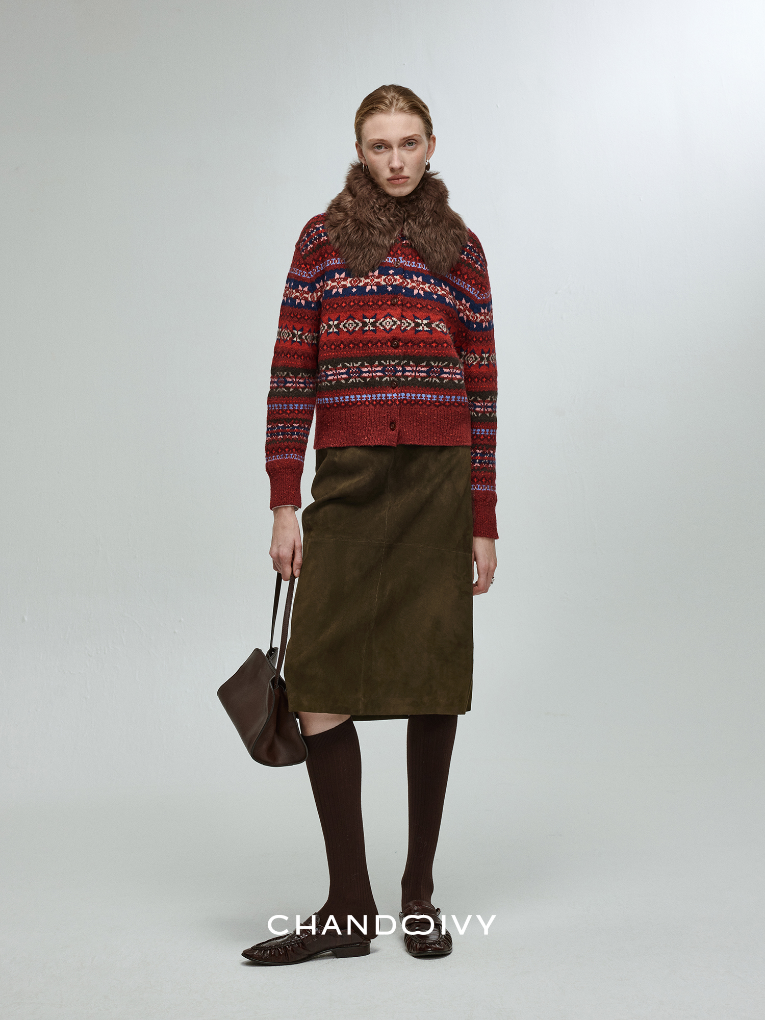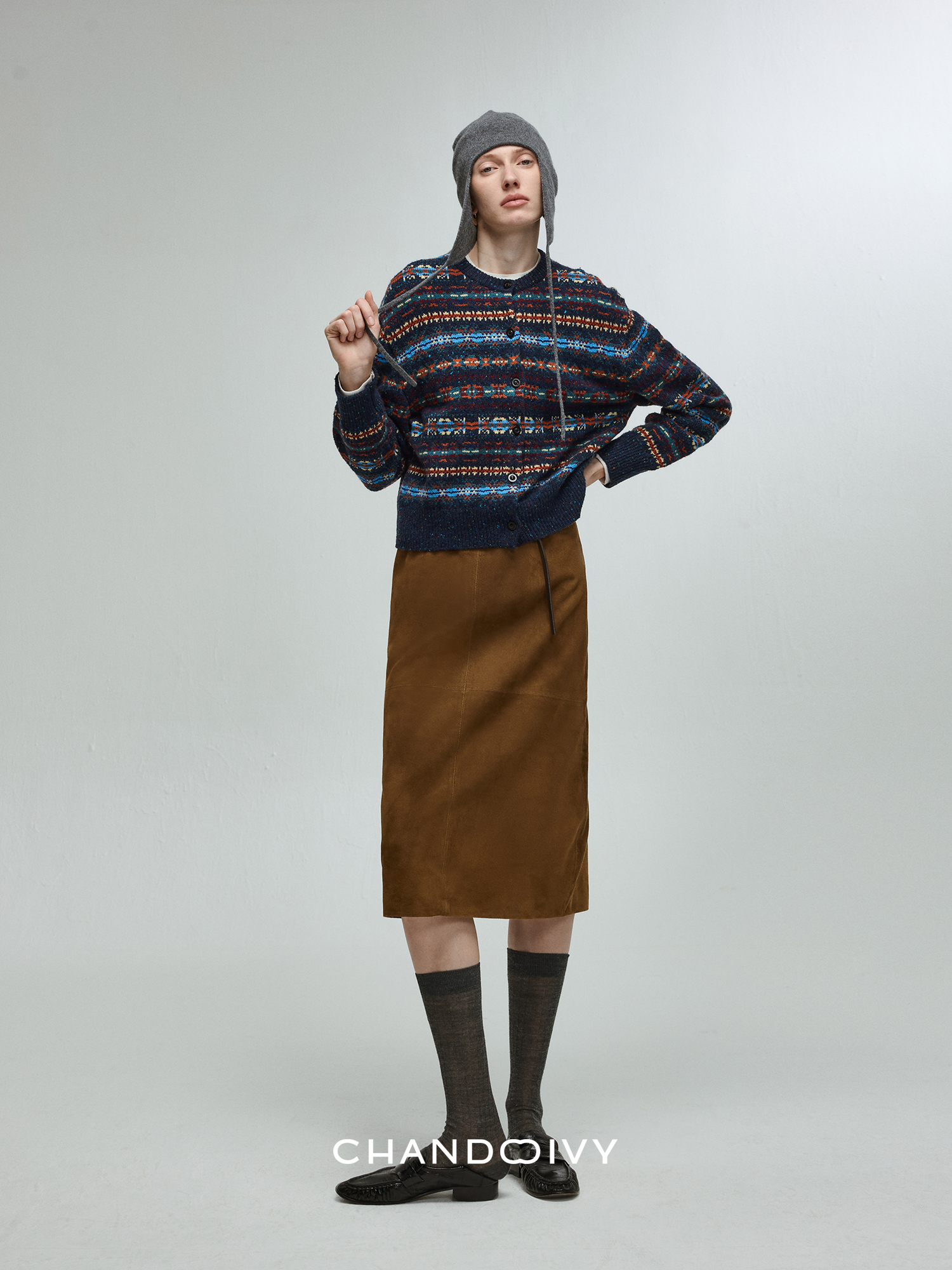 Chandooivy Imported Sheep Suede Exclusive Custom-Dyed Simple Distressed High-Waisted Slimming Mid-Length Skirt
