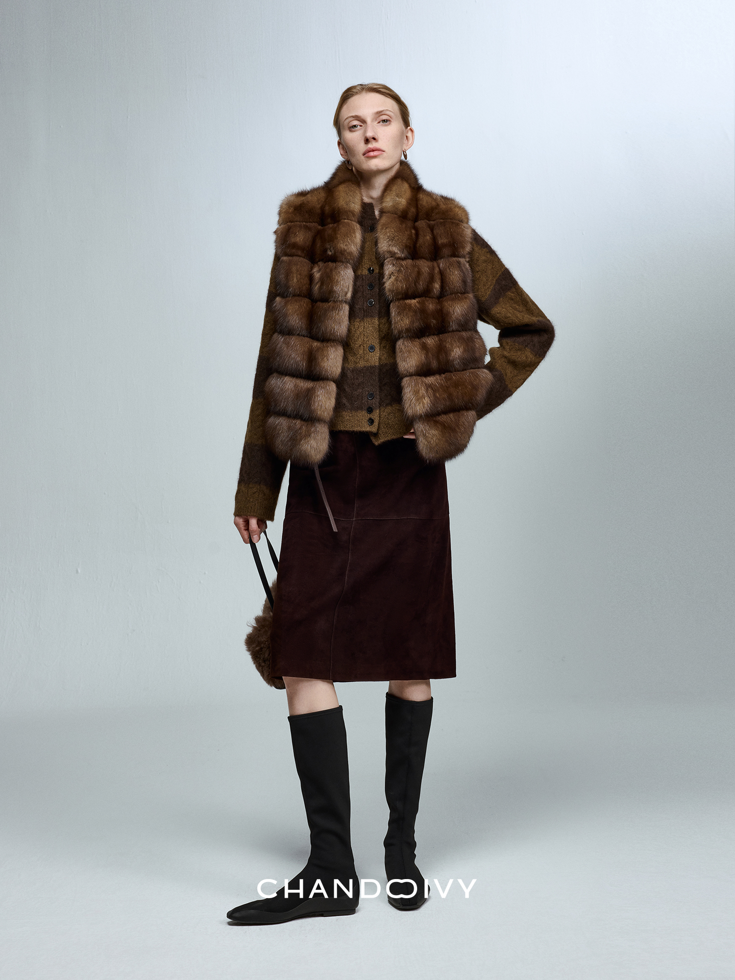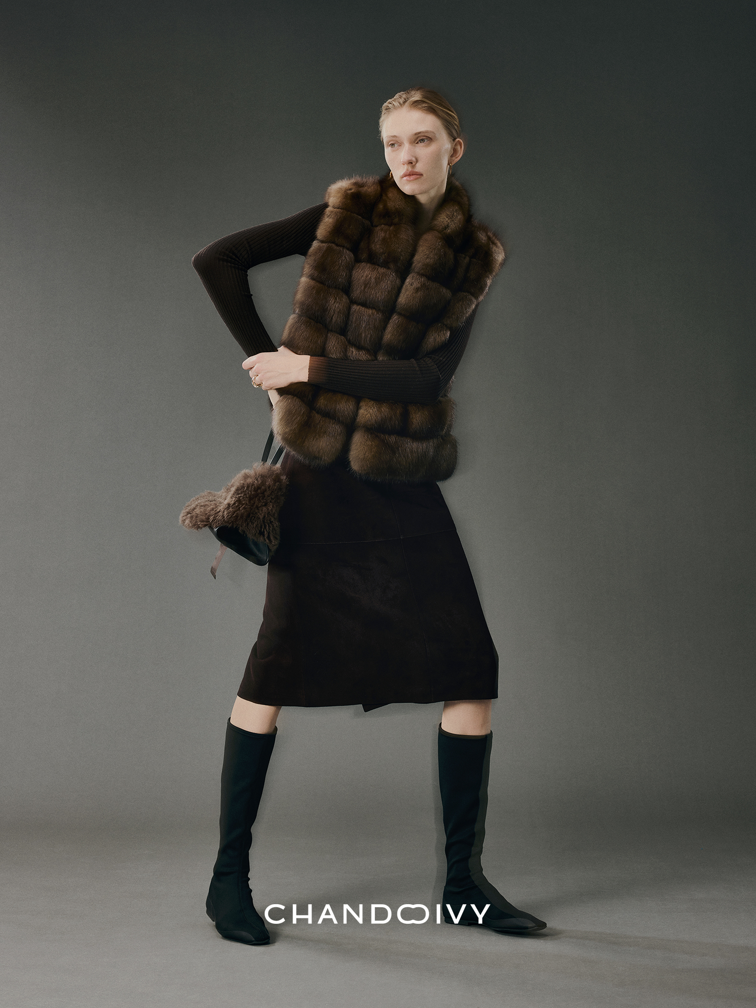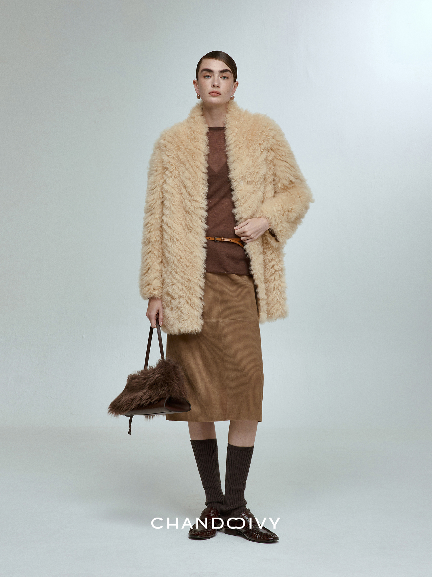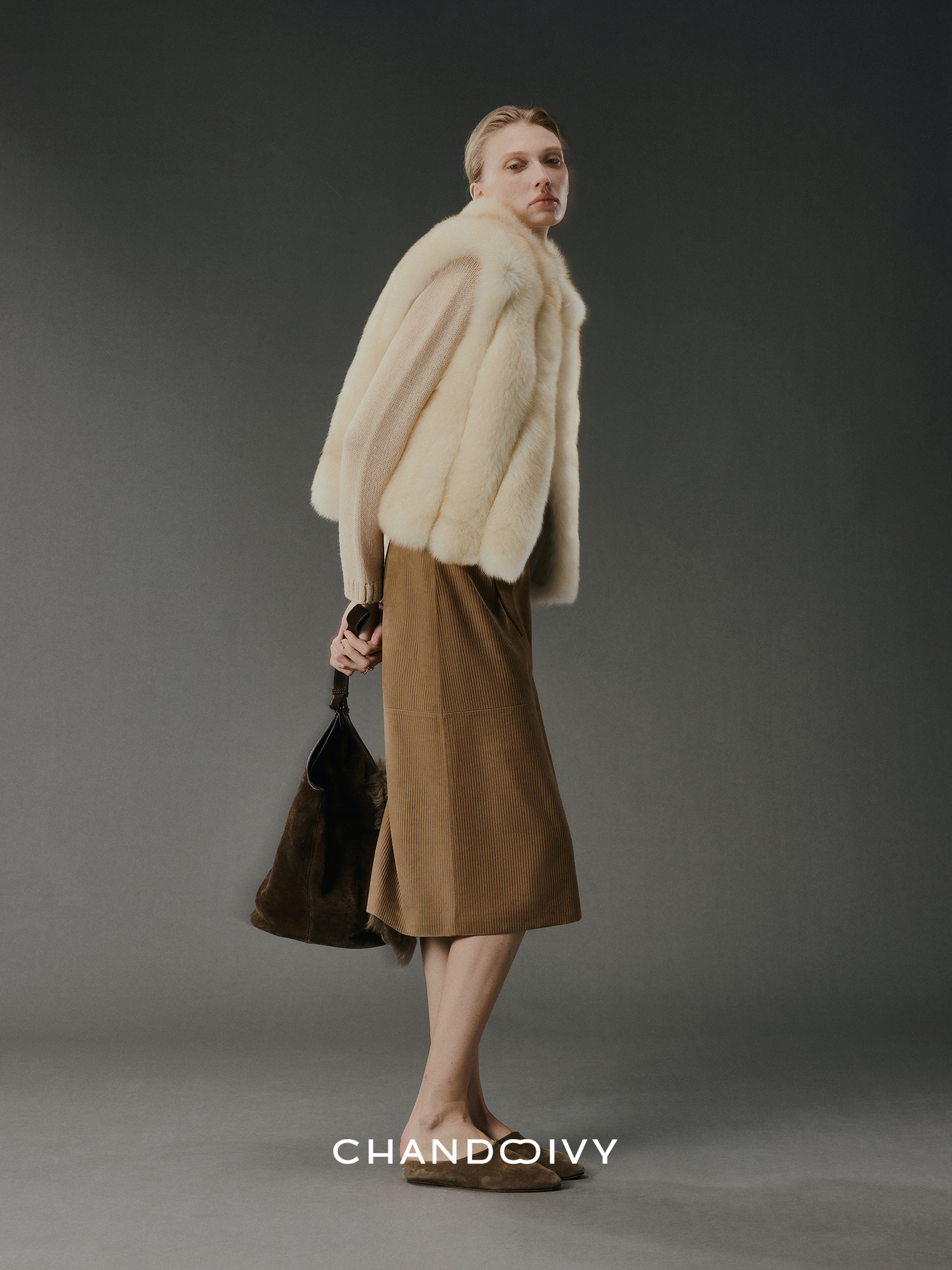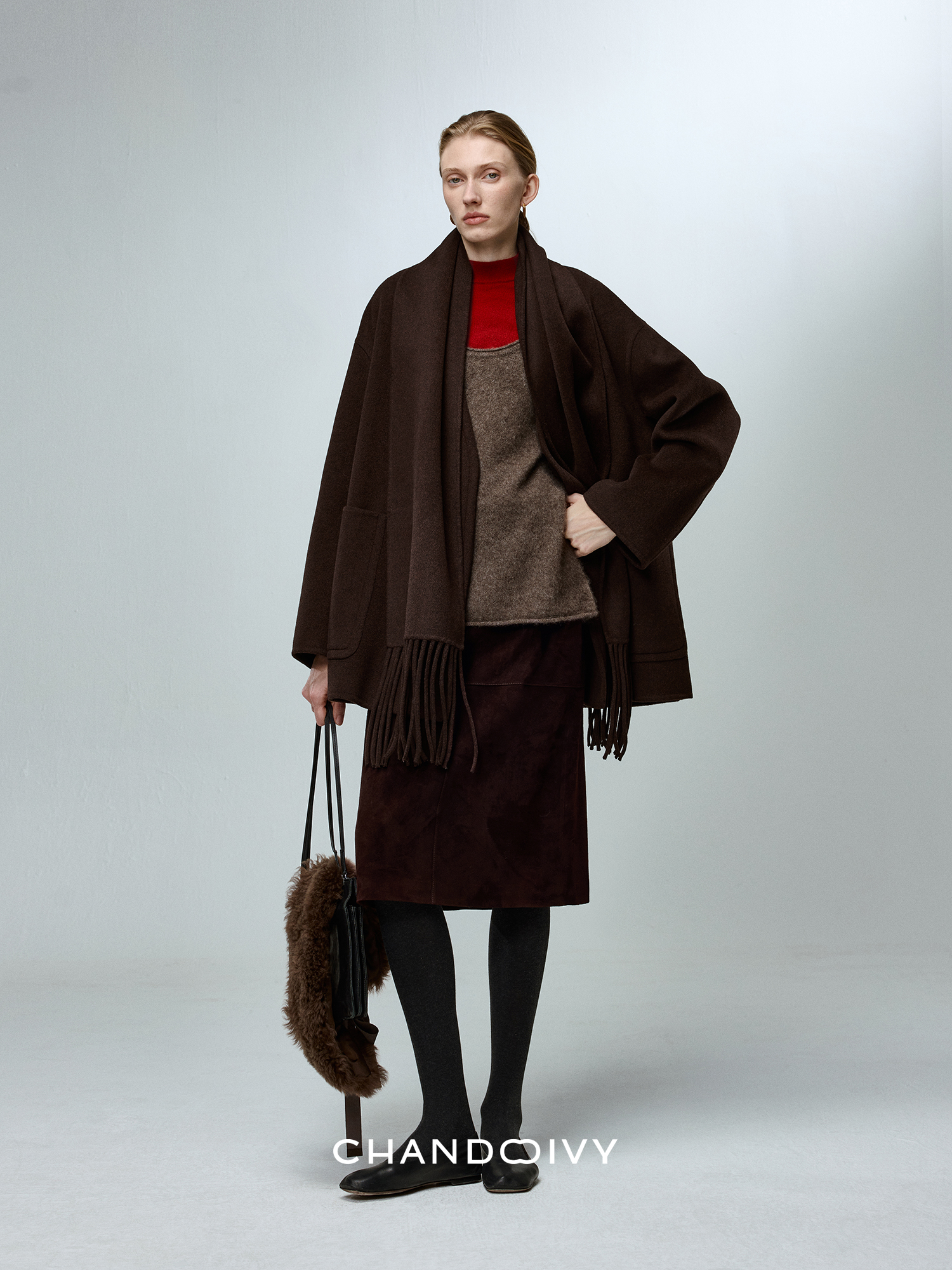 Chandooivy Imported Sheep Suede Exclusive Custom-Dyed Simple Distressed High-Waisted Slimming Mid-Length Skirt