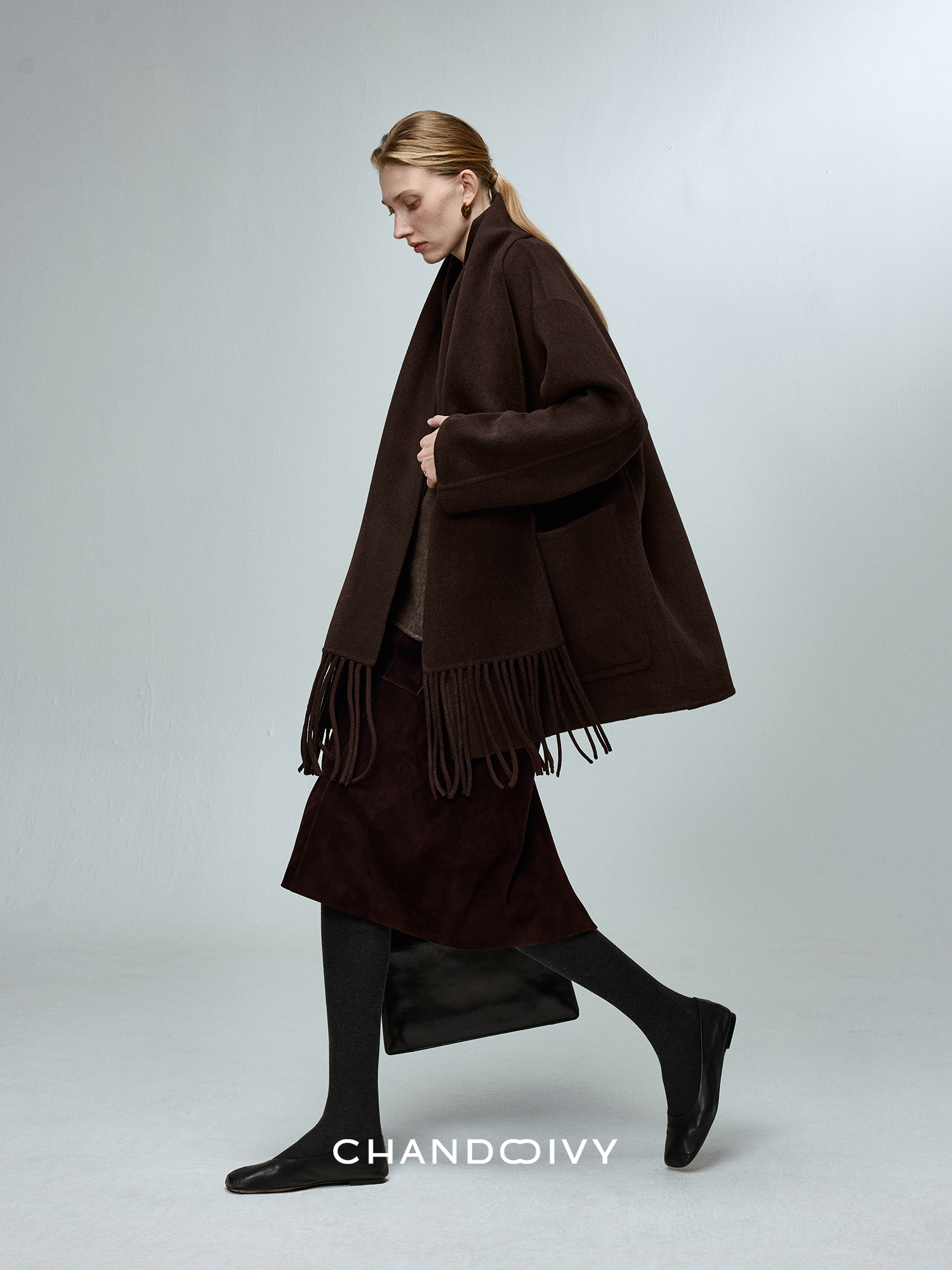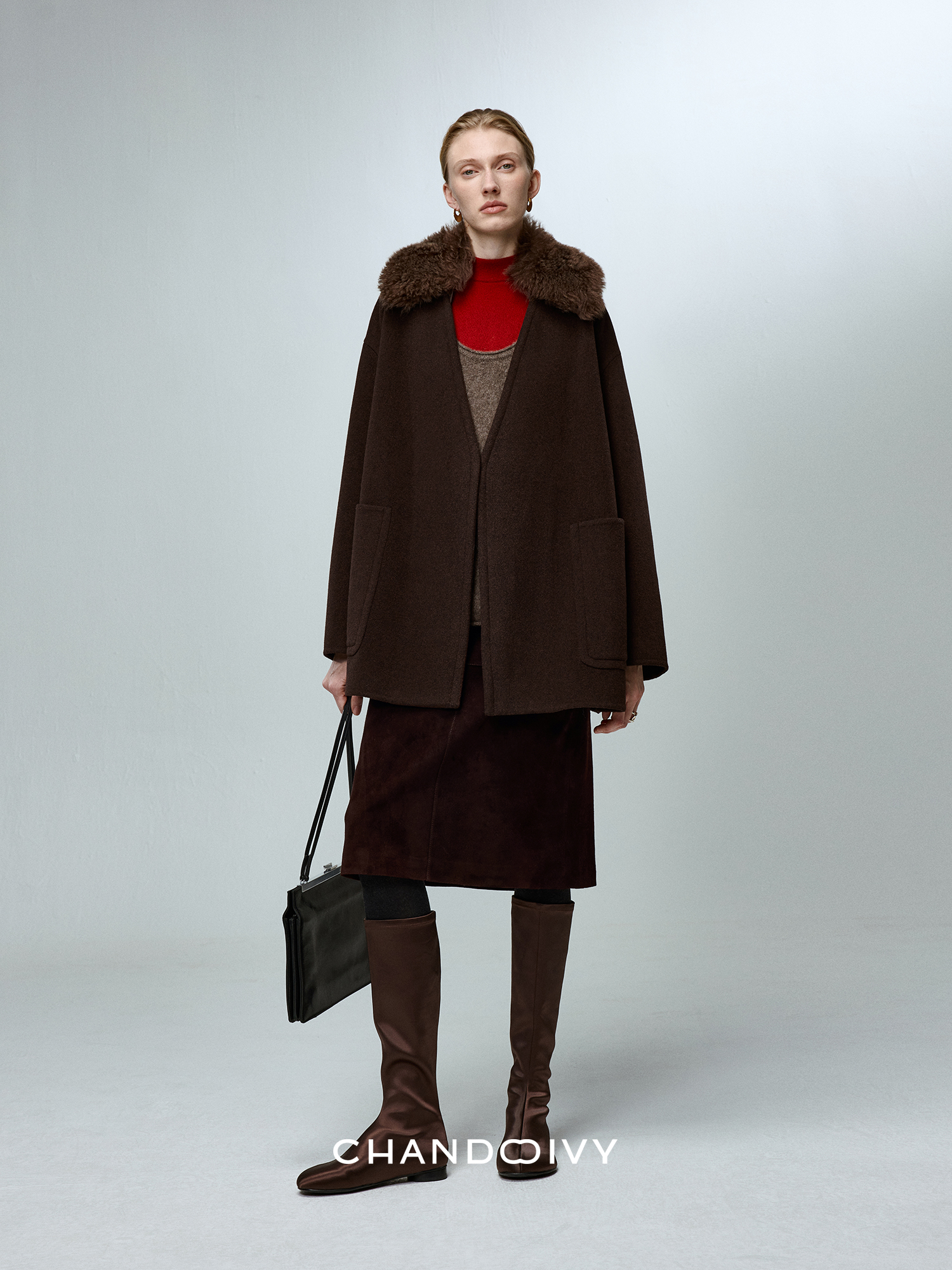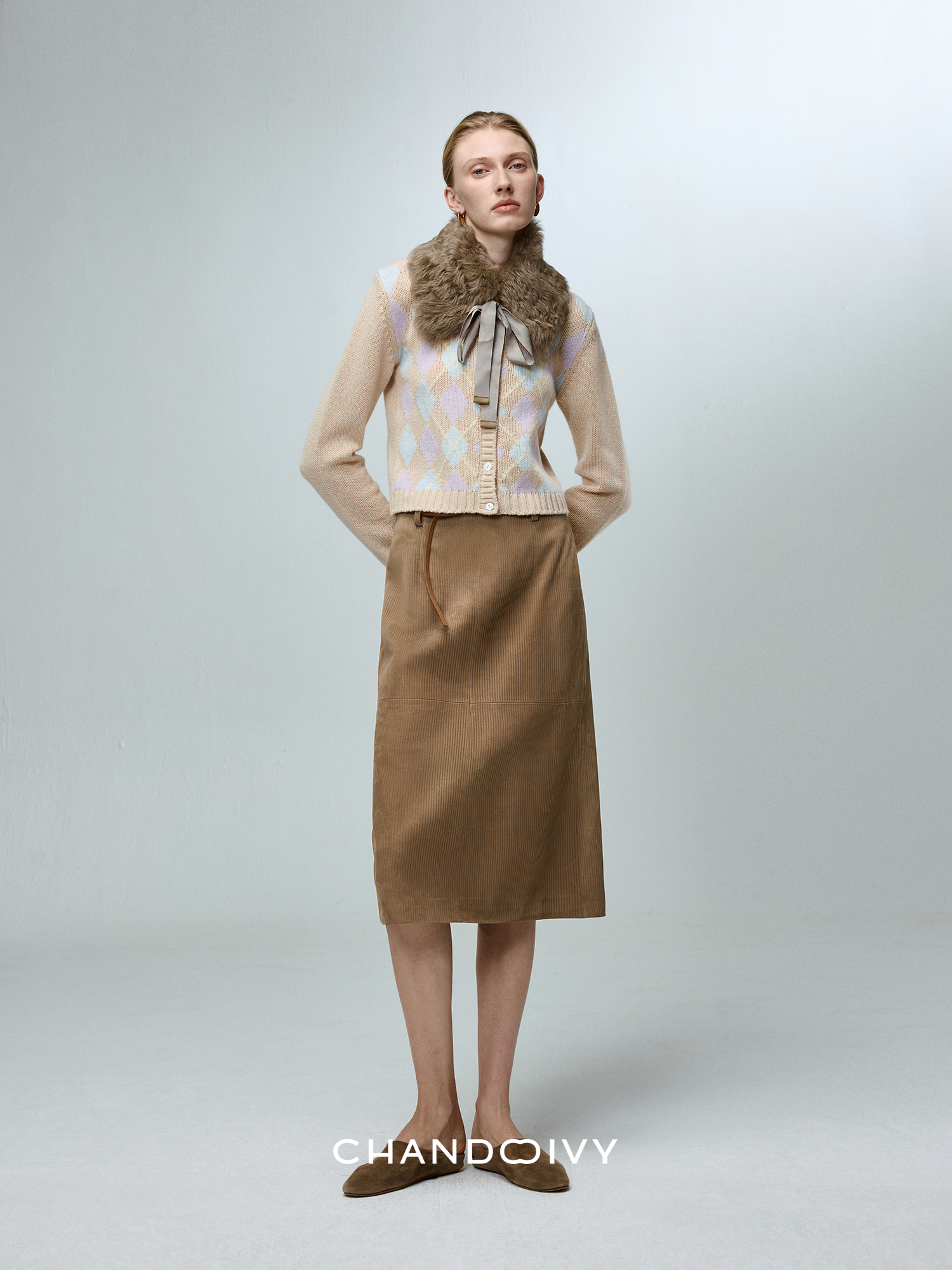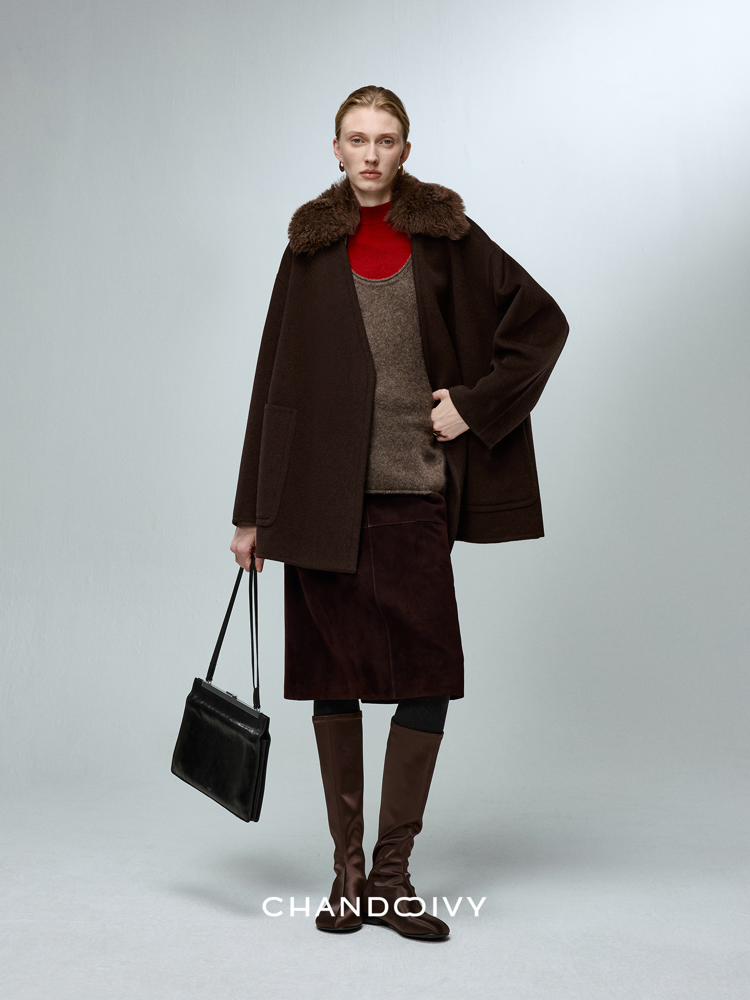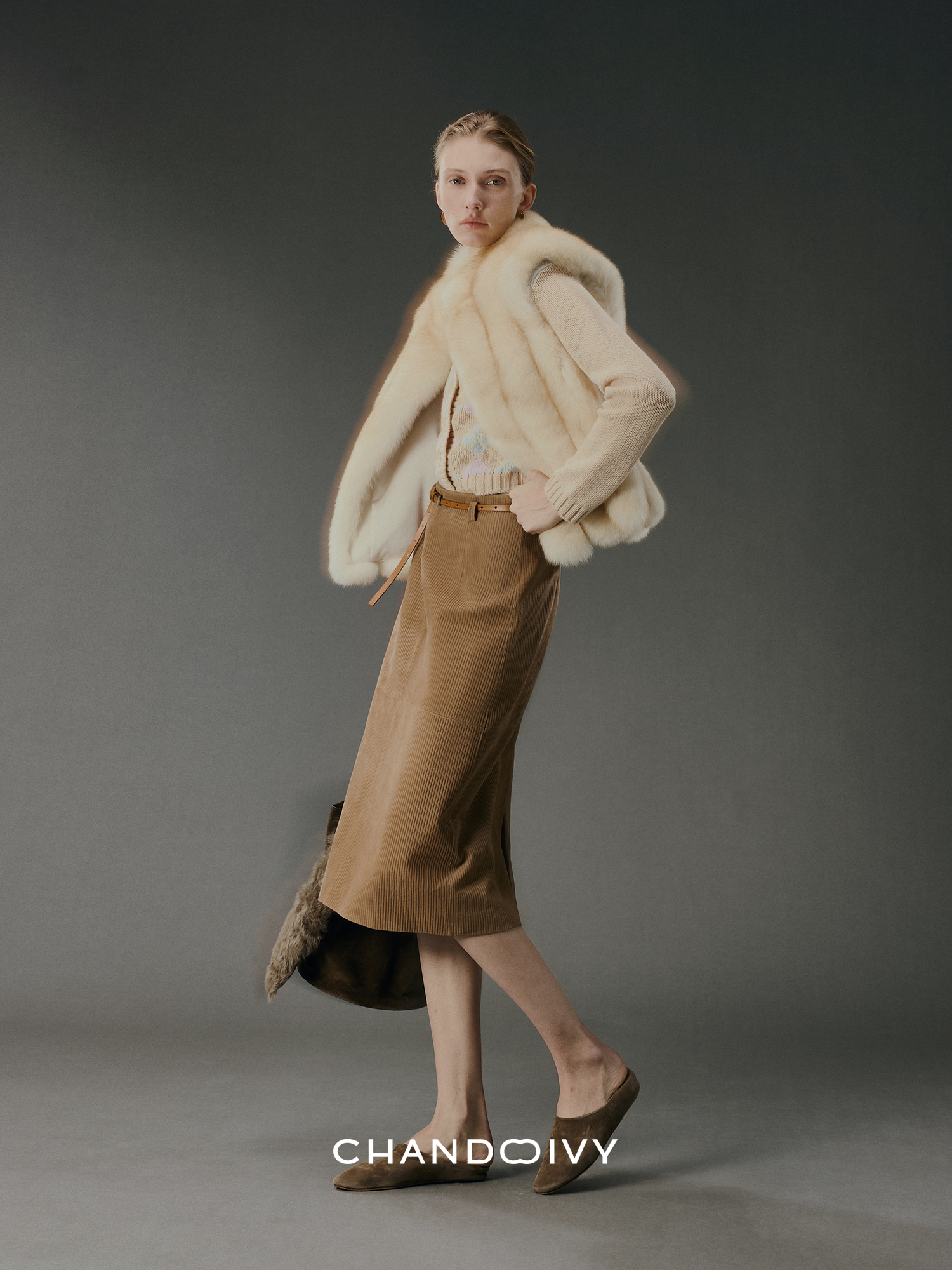 Chandooivy Imported Sheep Suede Exclusive Custom-Dyed Simple Distressed High-Waisted Slimming Mid-Length Skirt
