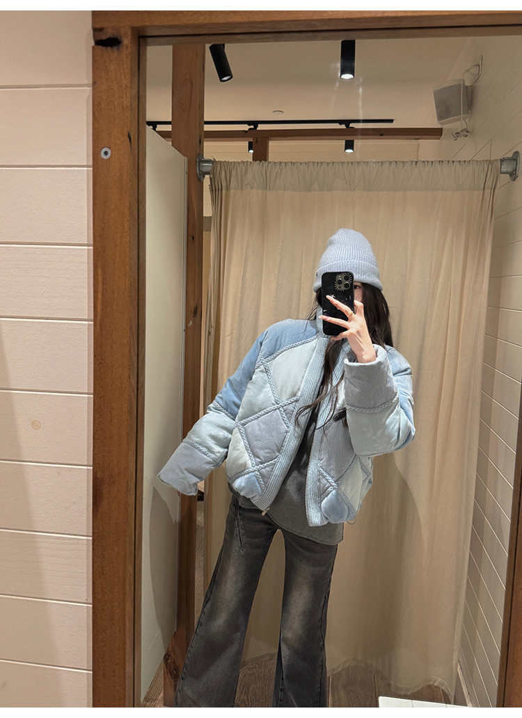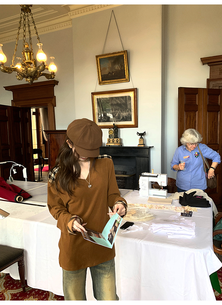 PS:肩部拼接的撞色格纹,由于面料裁剪问题