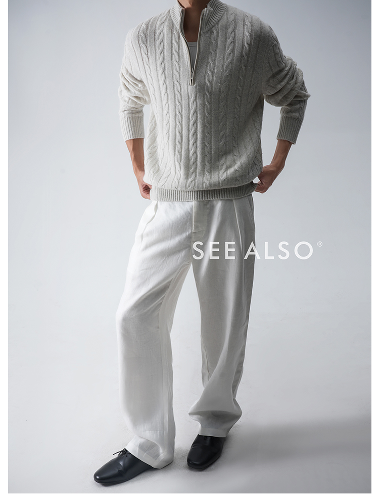 See Also『Sheepskin Cashmere』Superfine Worsted Mercerized Basalan Sheep Wool Old Money New Rich Cable Knit Sweater