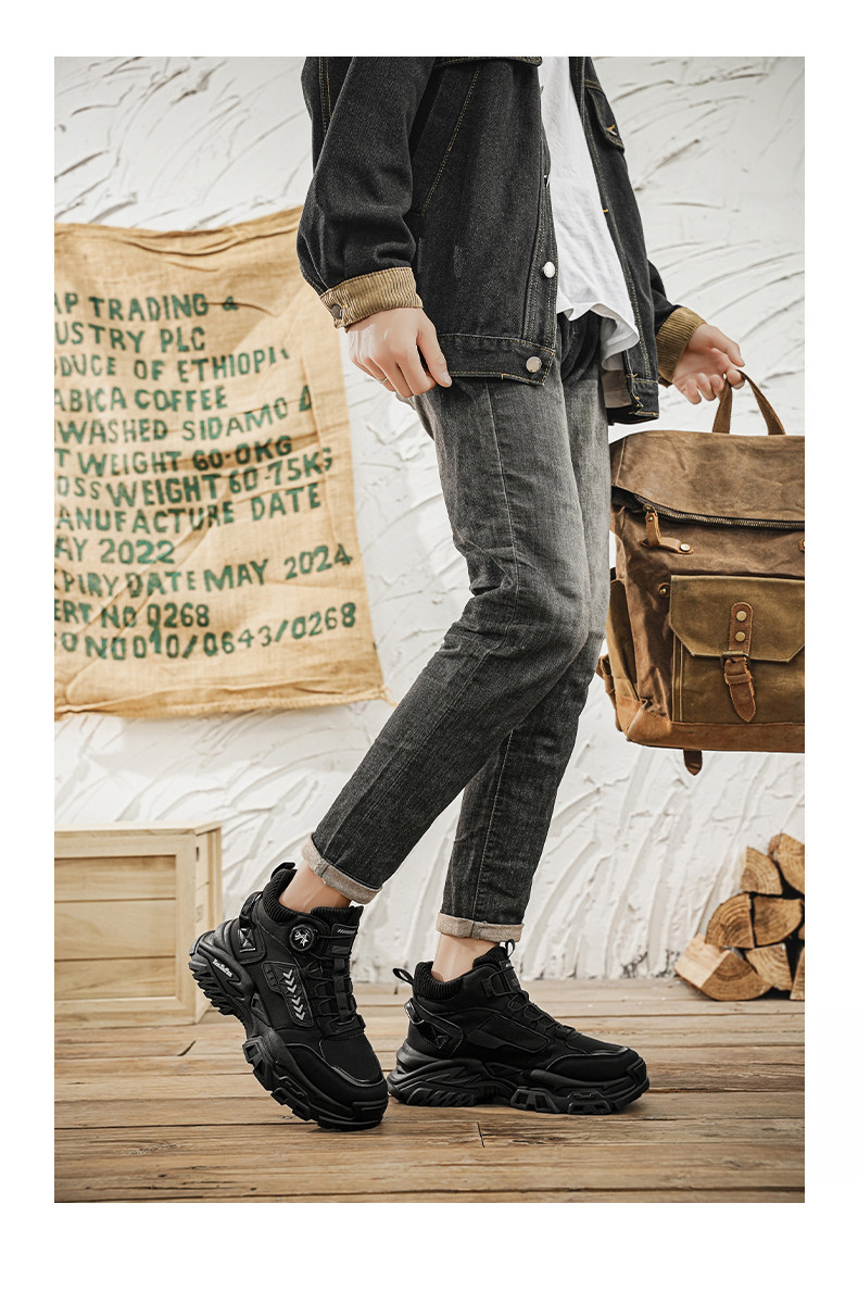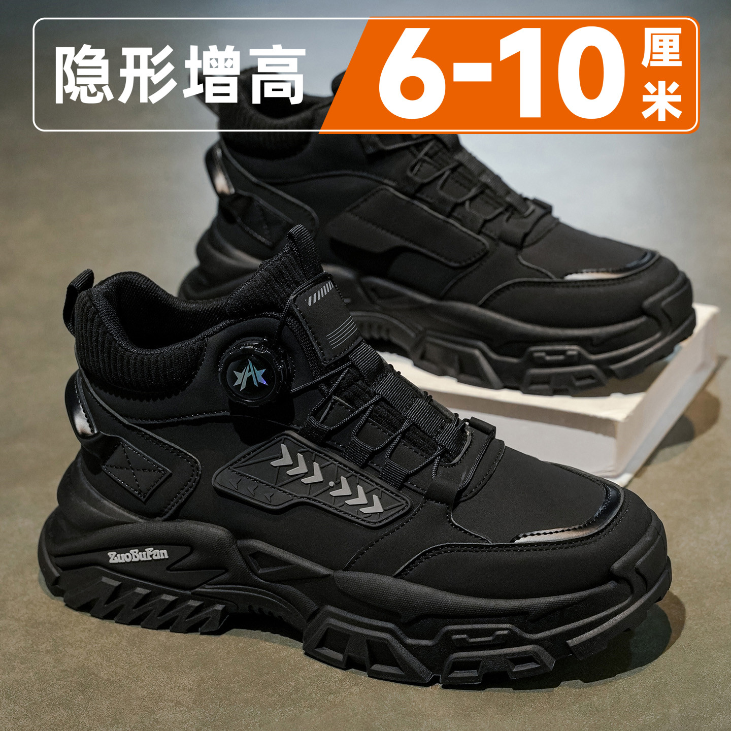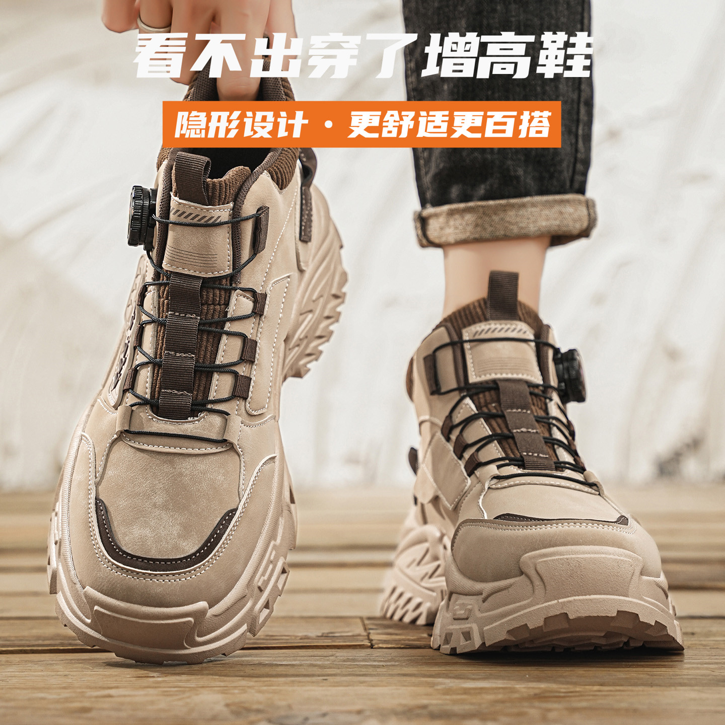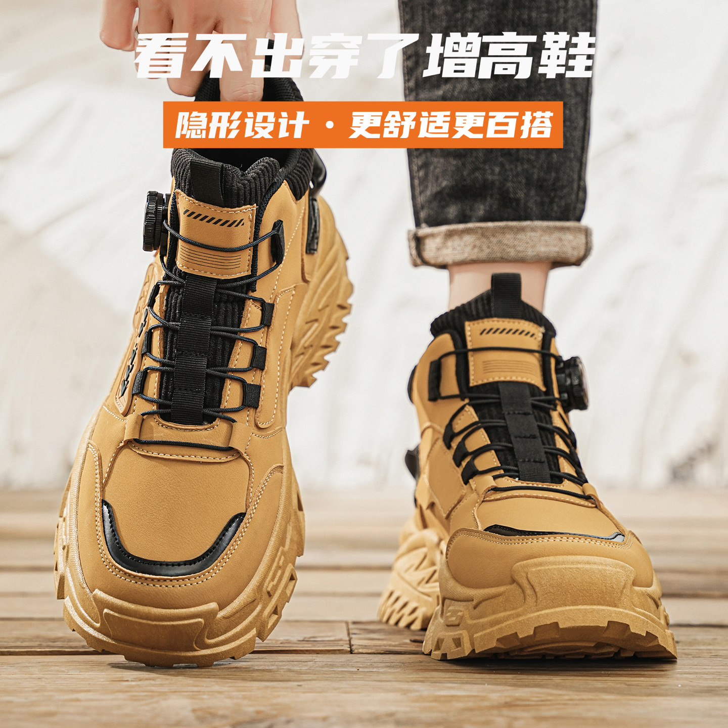 Men's Martin Boots, High-Top, with Hidden 10cm Height Increase, Spring Breathable Retro Dad Shoes, Casual Thick-Soled Work Boots