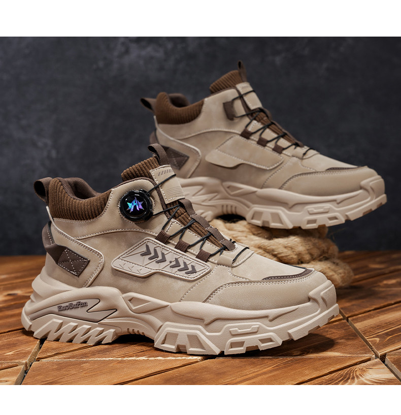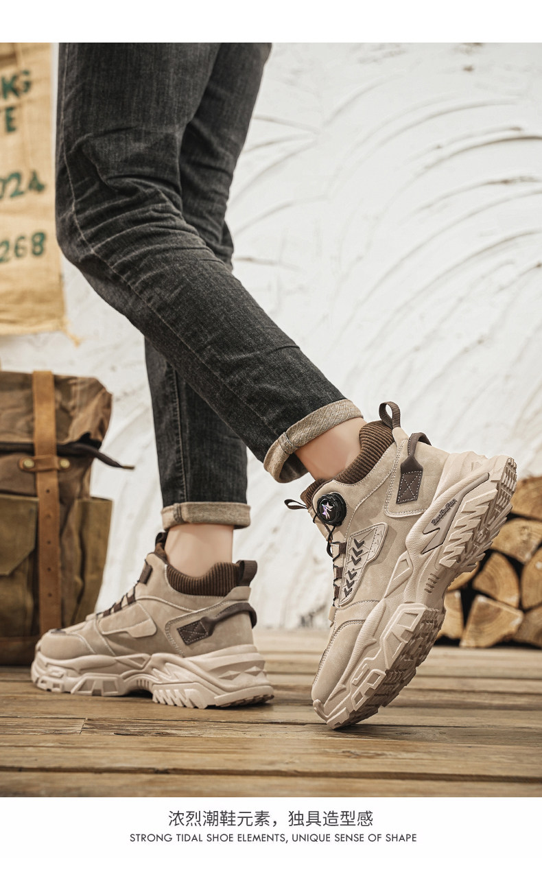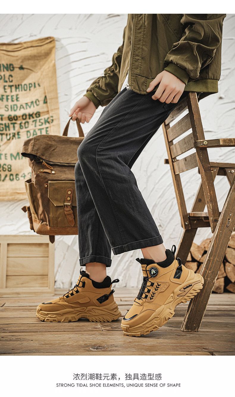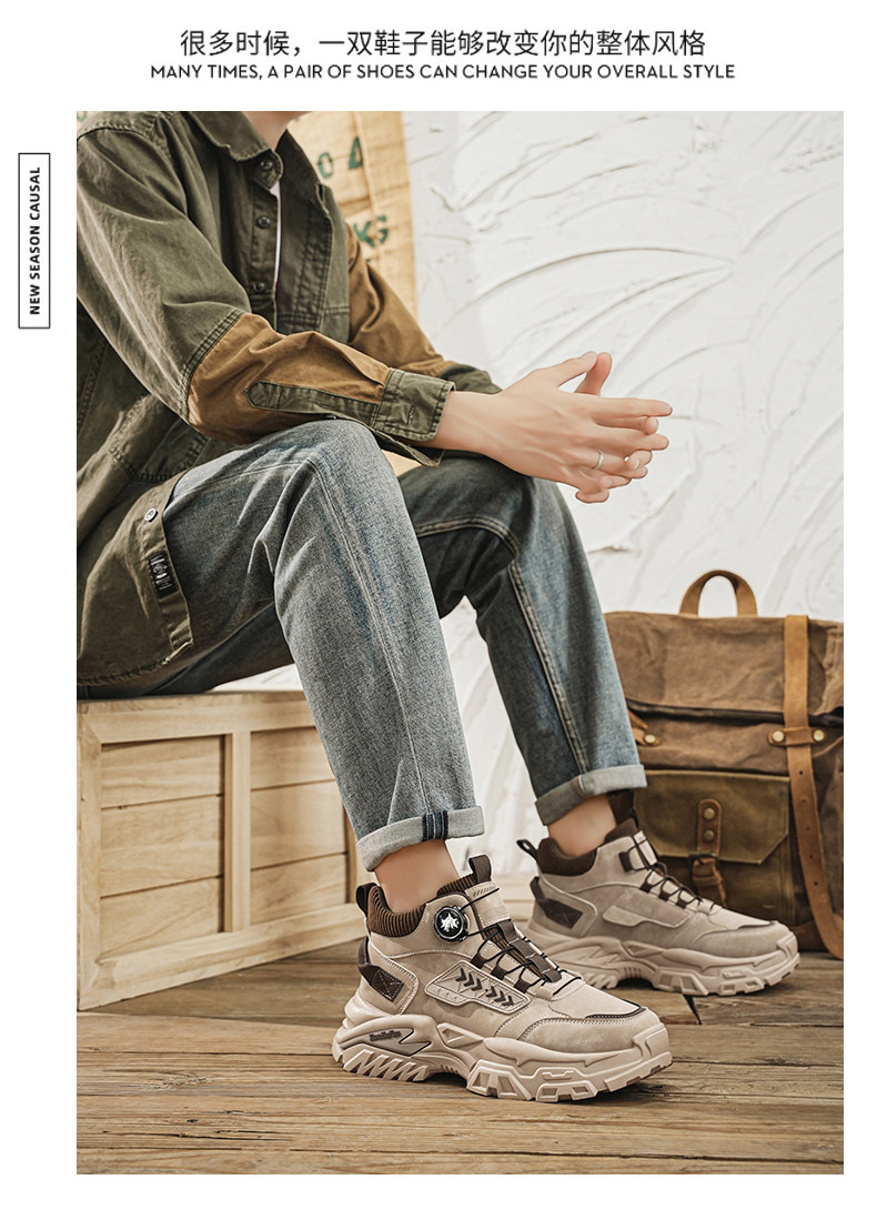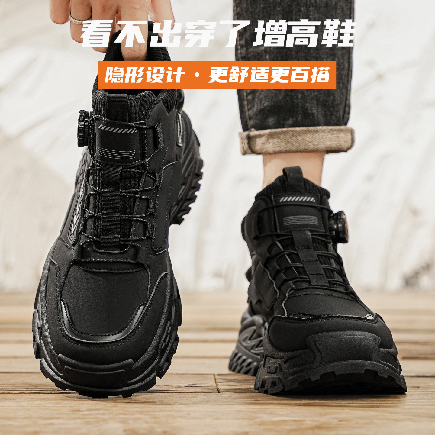 Men's Martin Boots, High-Top, with Hidden 10cm Height Increase, Spring Breathable Retro Dad Shoes, Casual Thick-Soled Work Boots