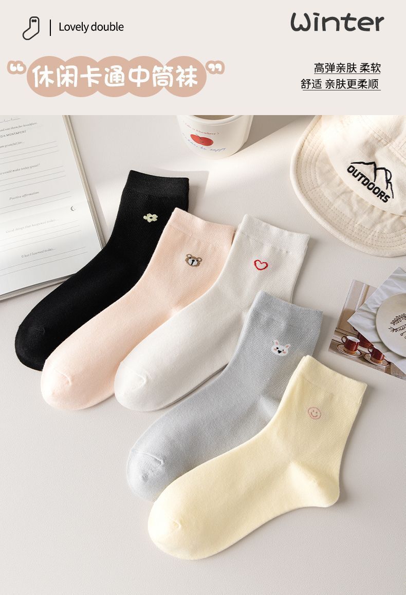 Cute Socks for Women, Mid-Calf Socks for Autumn and Winter, Korean Style ins Trendy Versatile Japanese Breathable Student Cute Long Socks