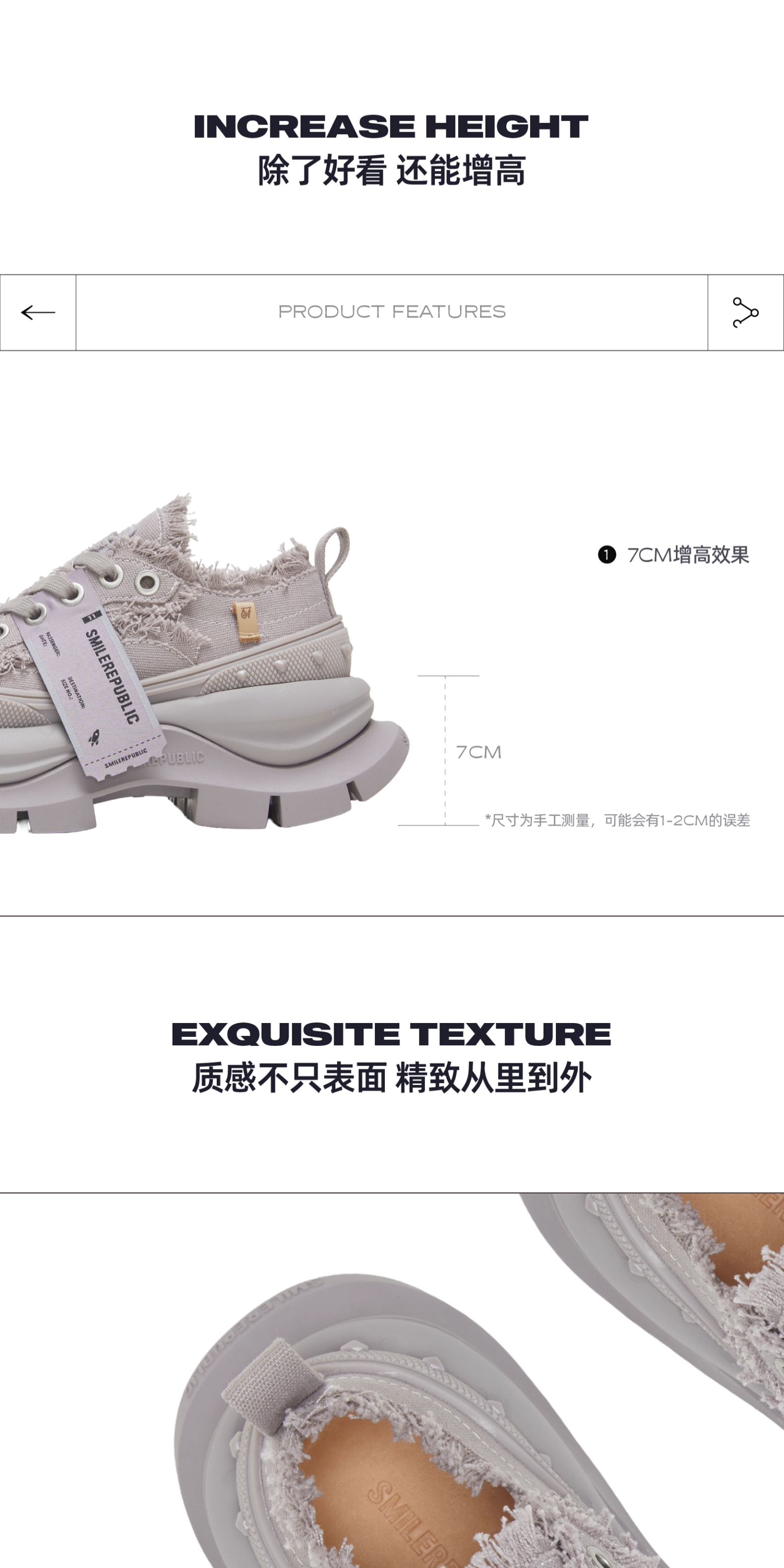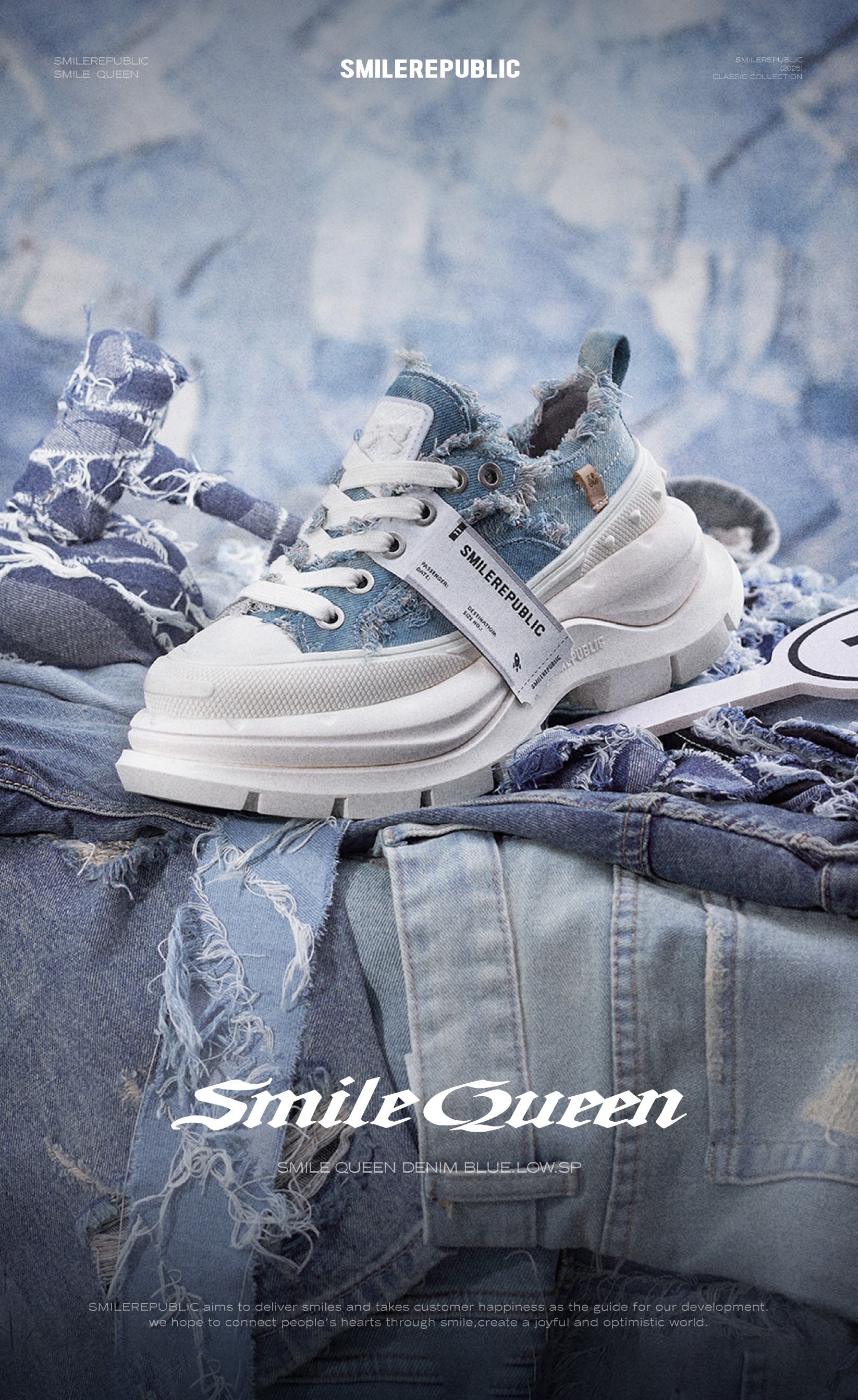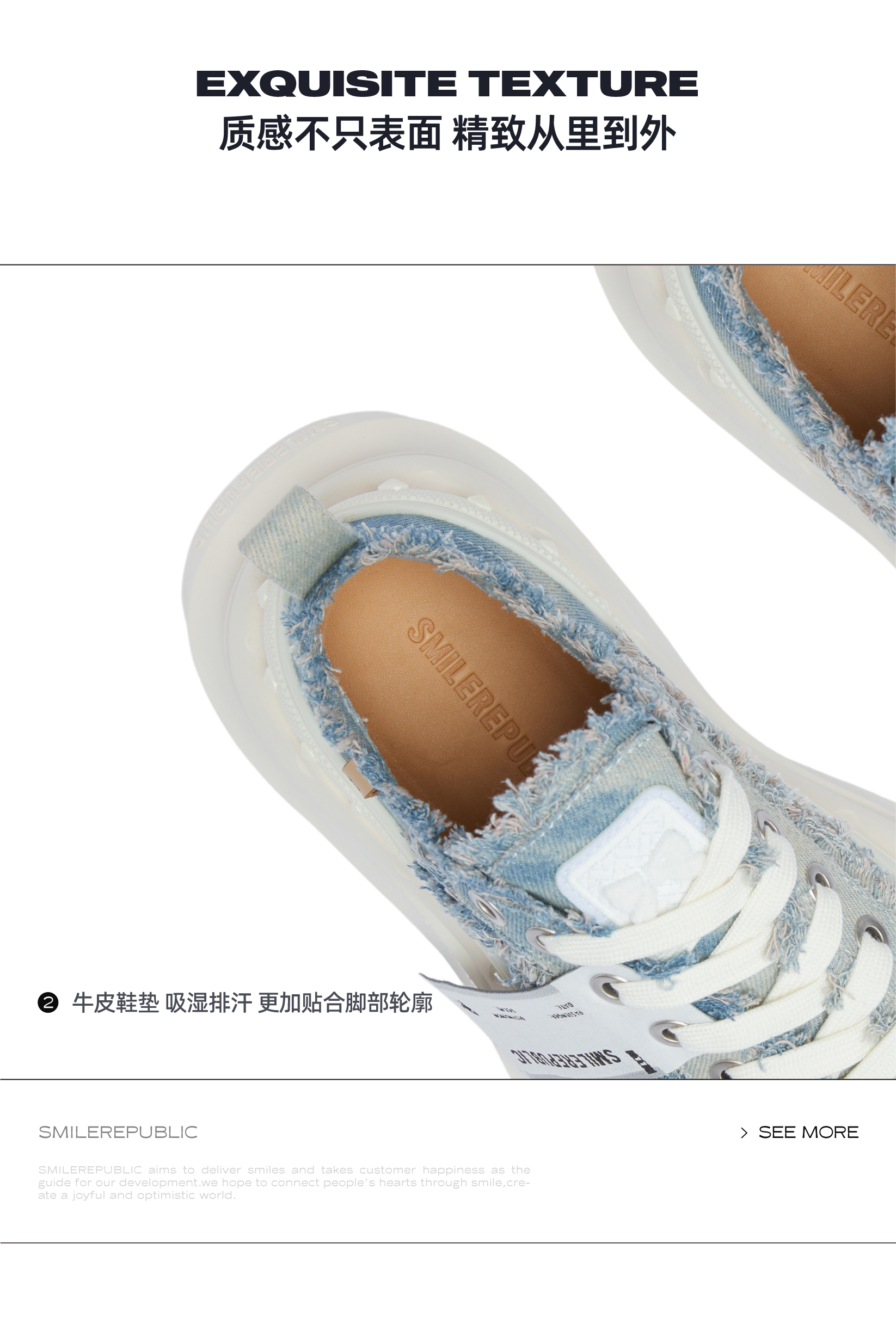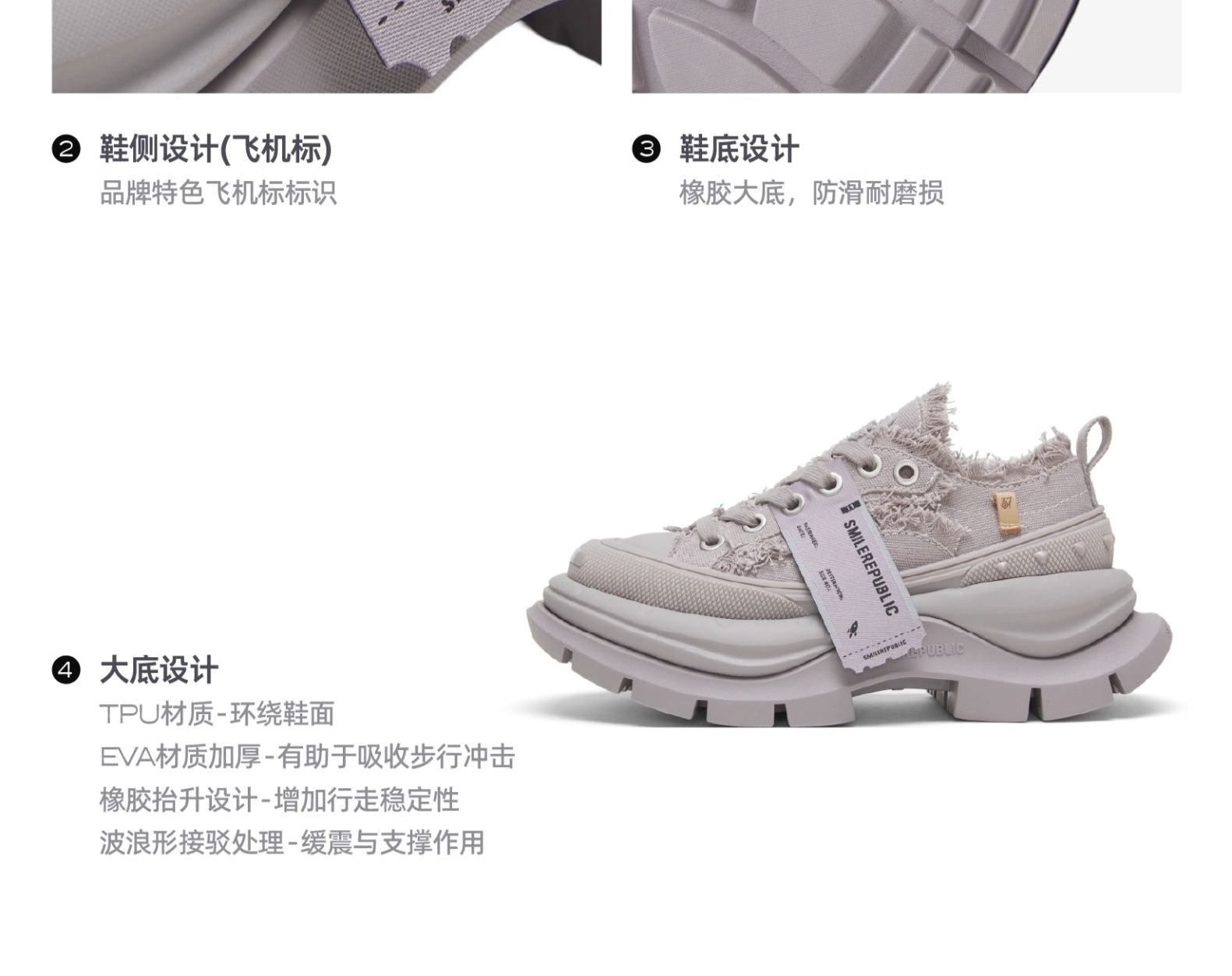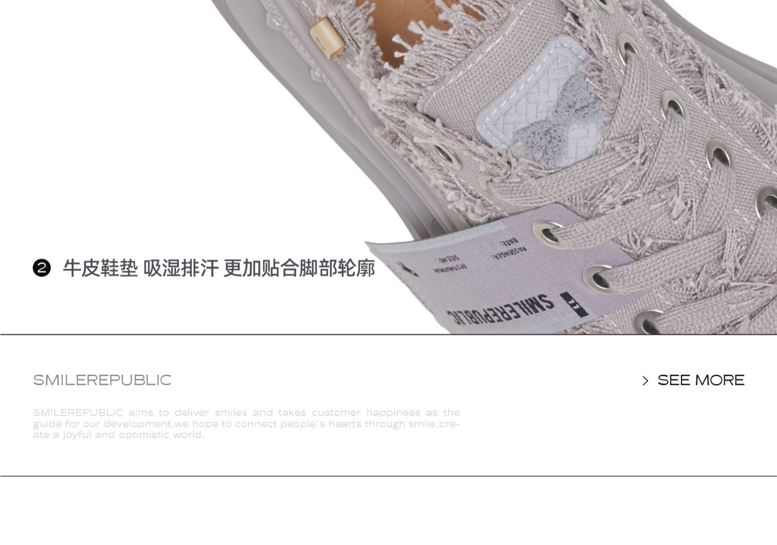 【Double 11】Smilerepublic Classic Low-Top Open Smile 2.0 Thick-Soled Height-Increasing Canvas Shoes Dad Shoes