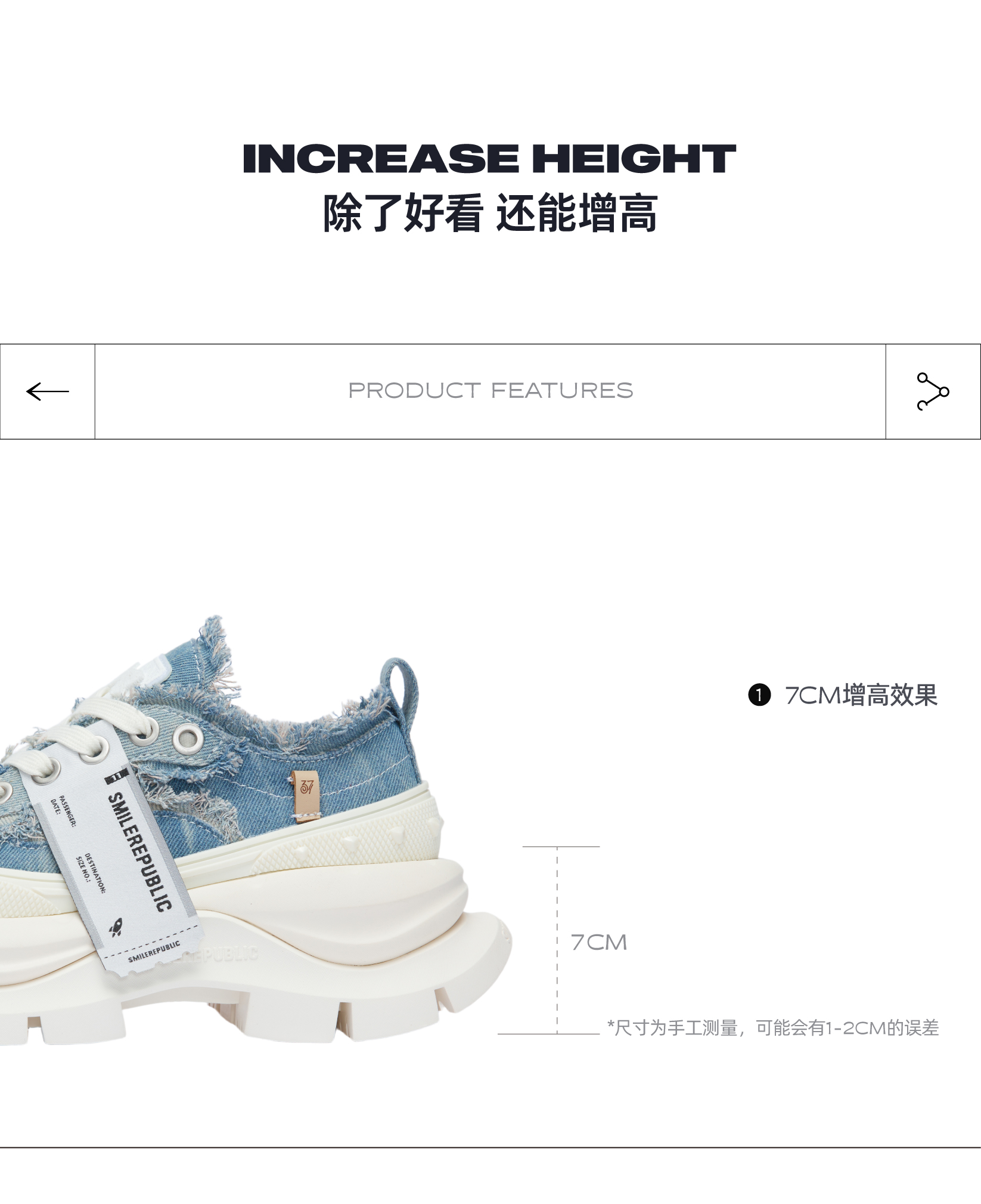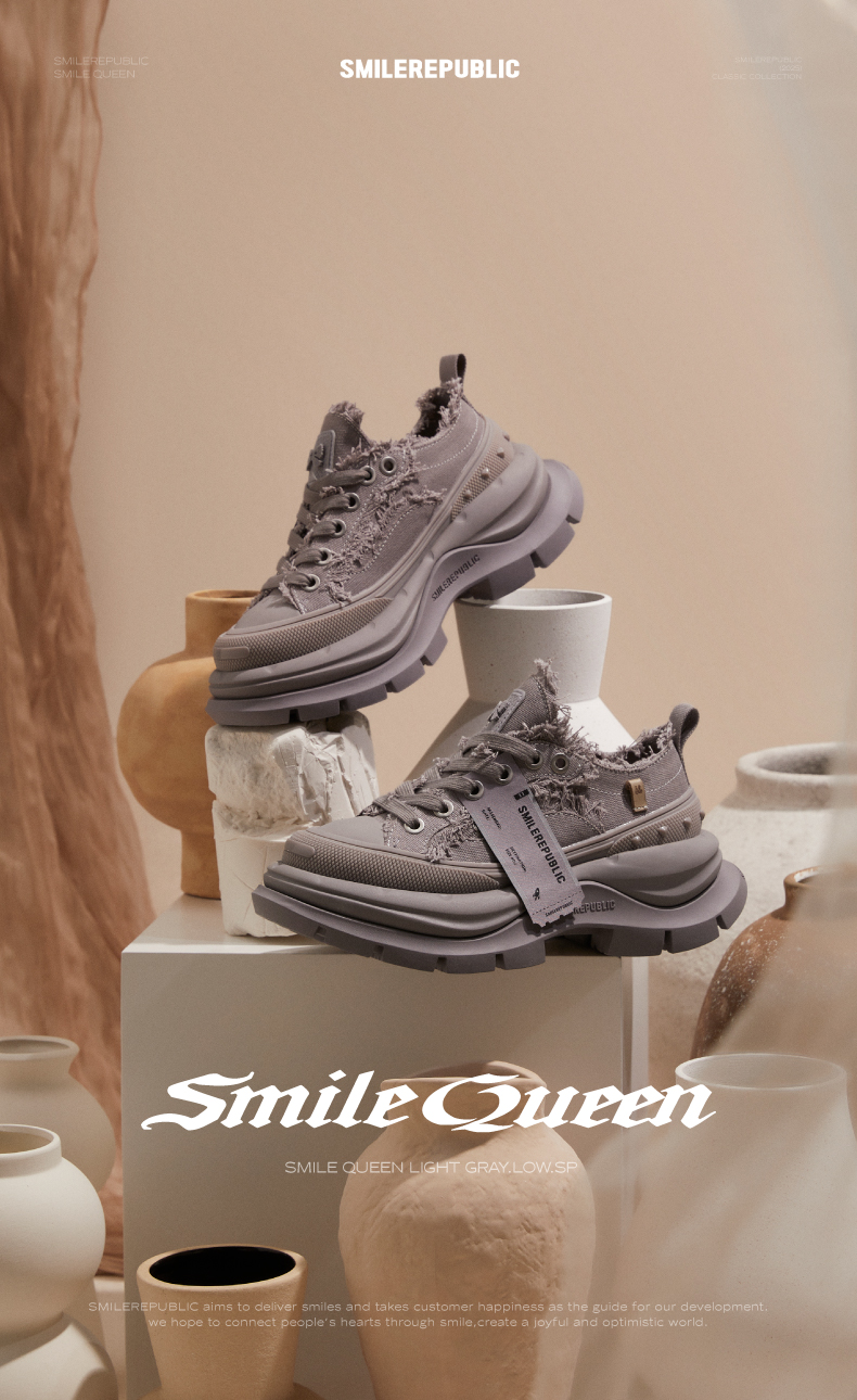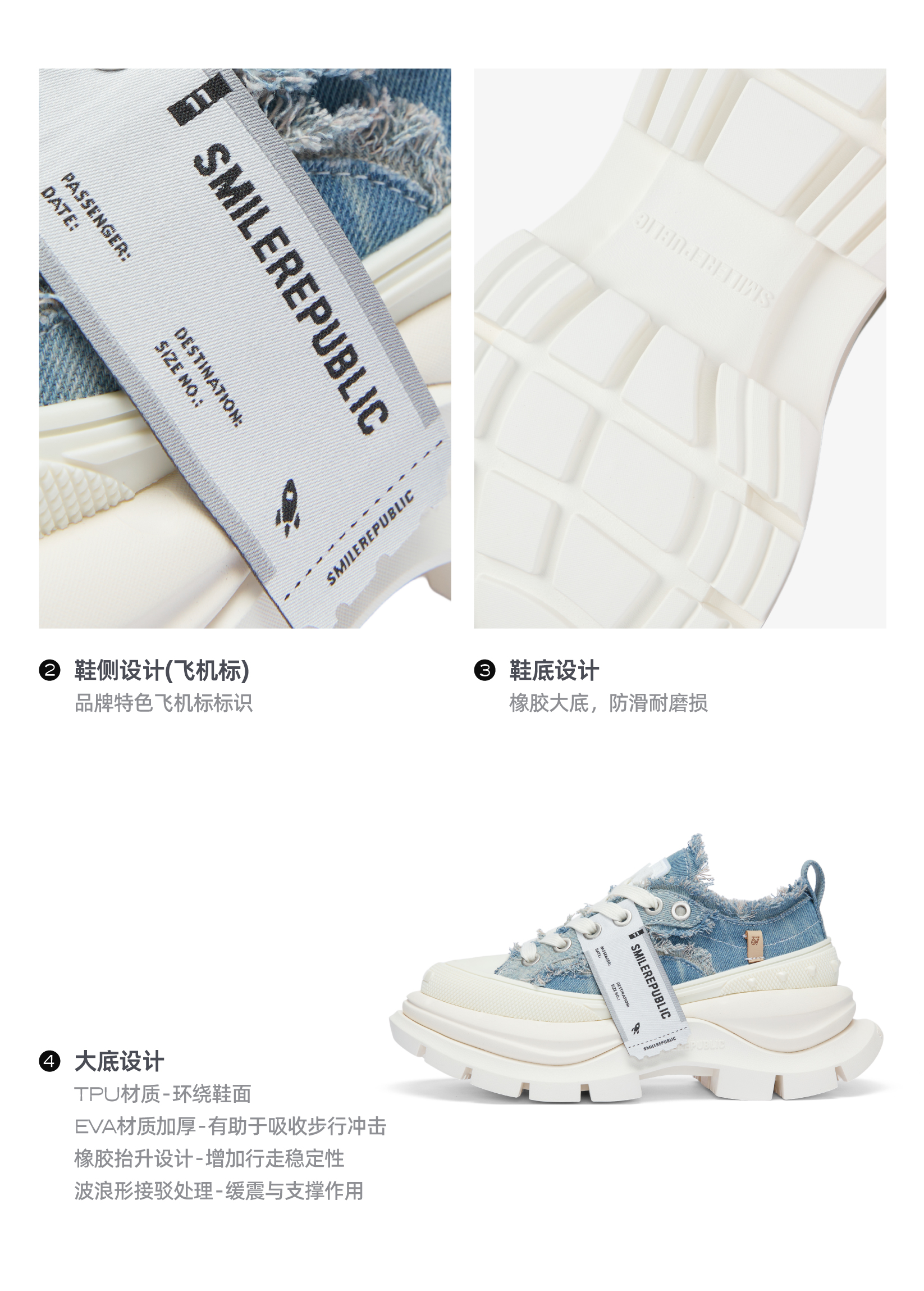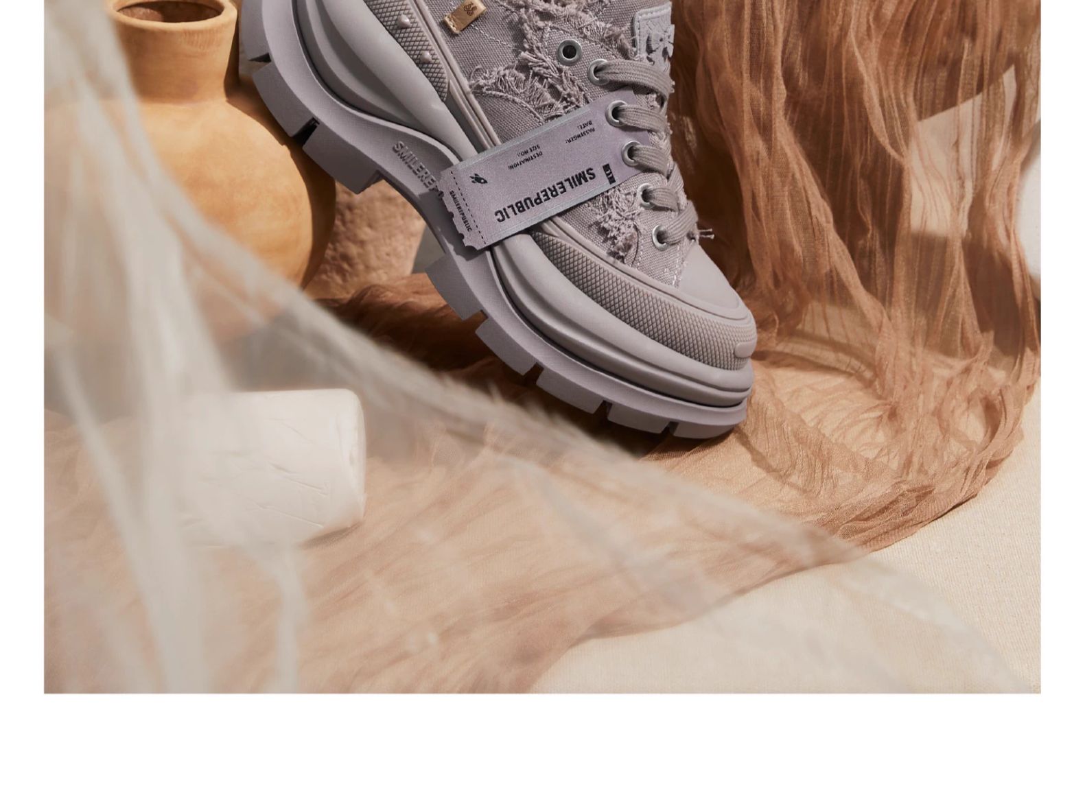 【Double 11】Smilerepublic Classic Low-Top Open Smile 2.0 Thick-Soled Height-Increasing Canvas Shoes Dad Shoes