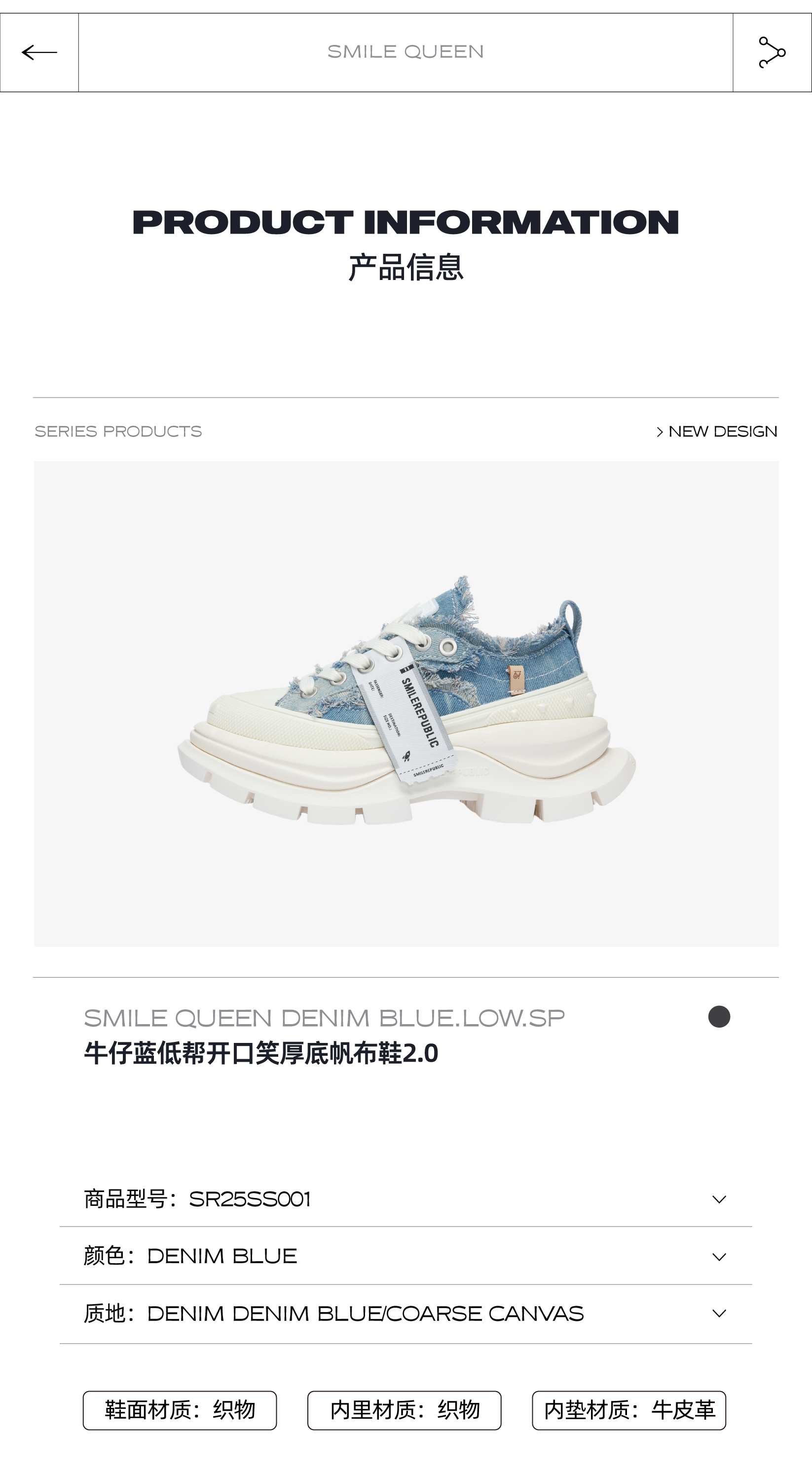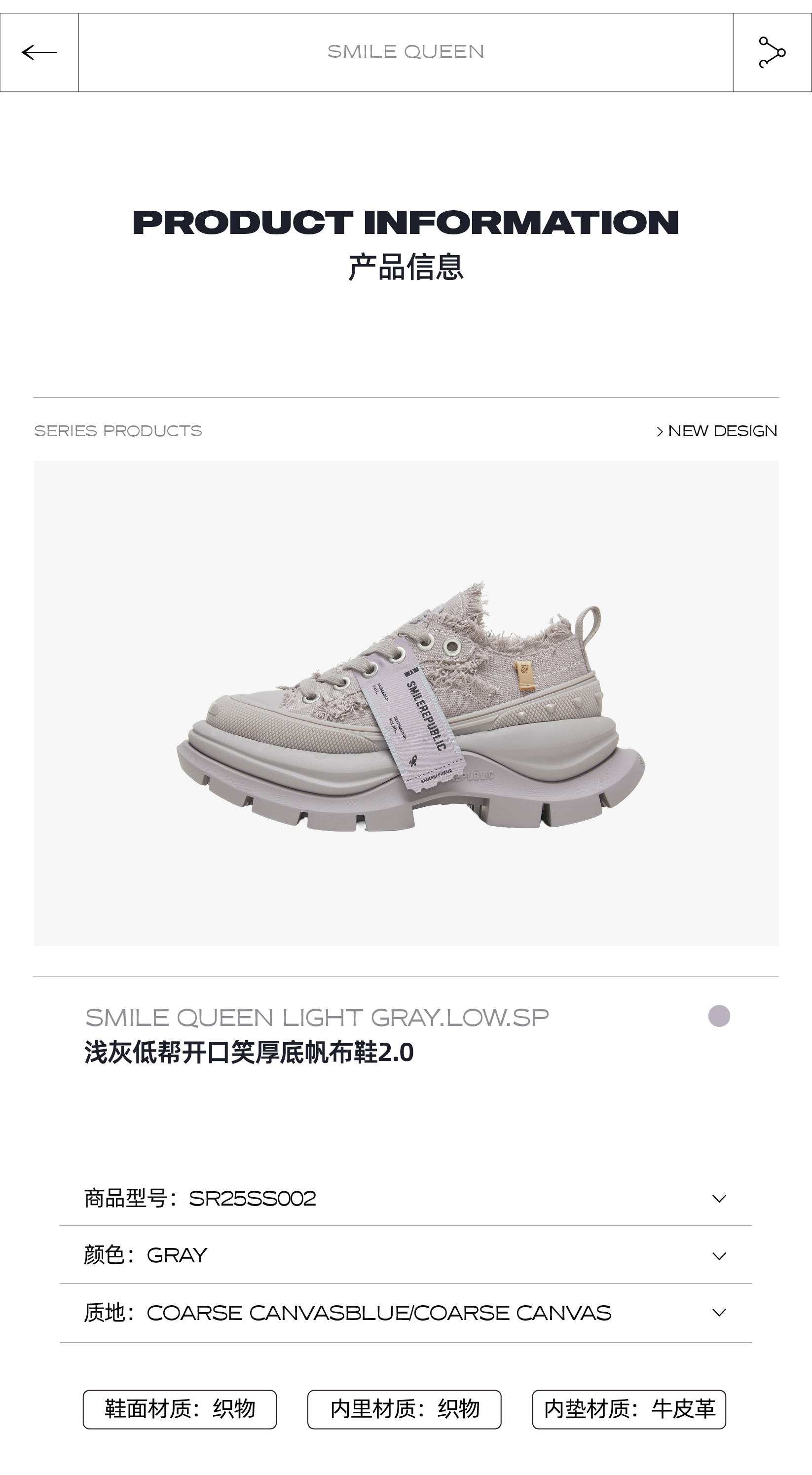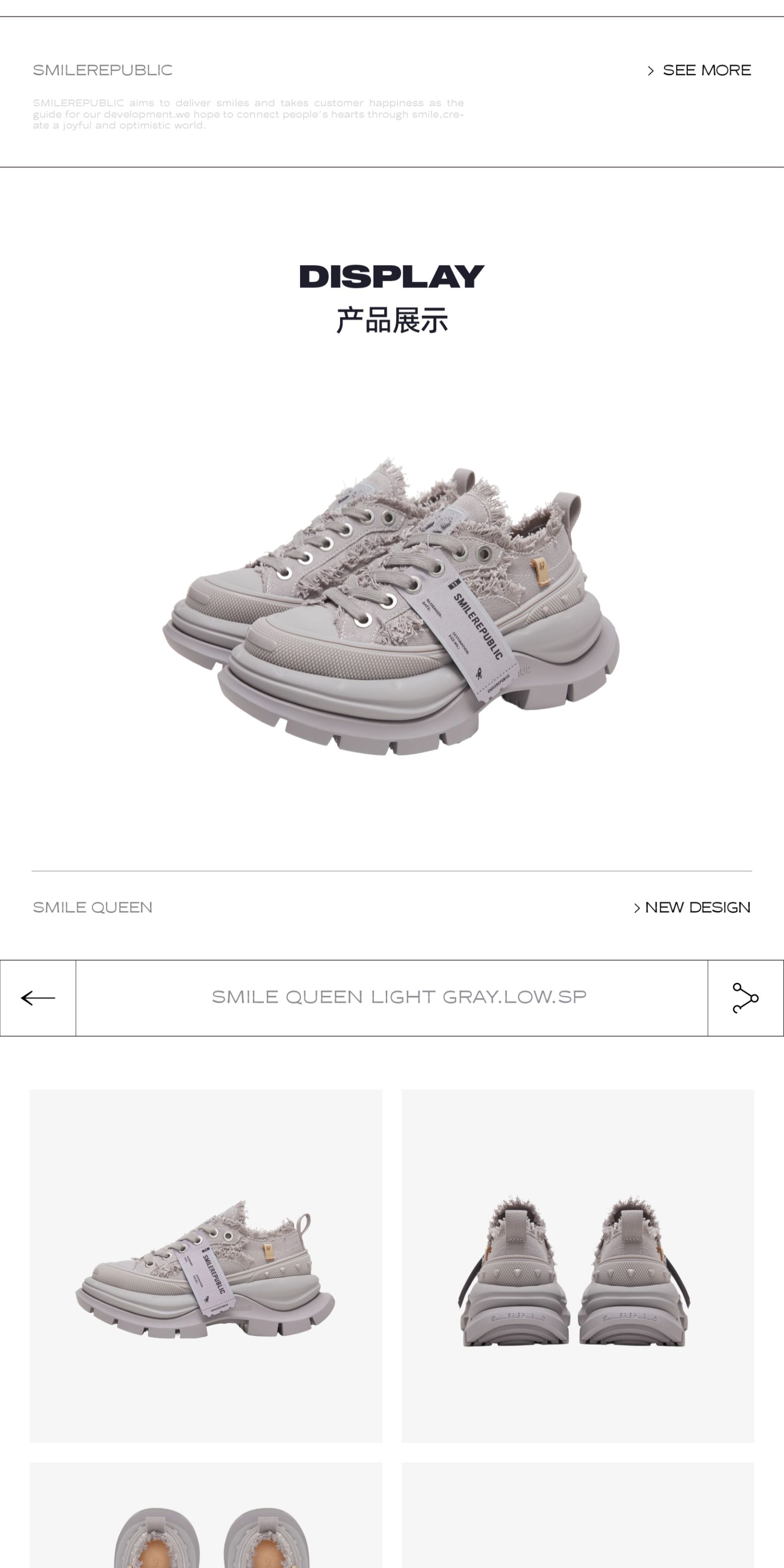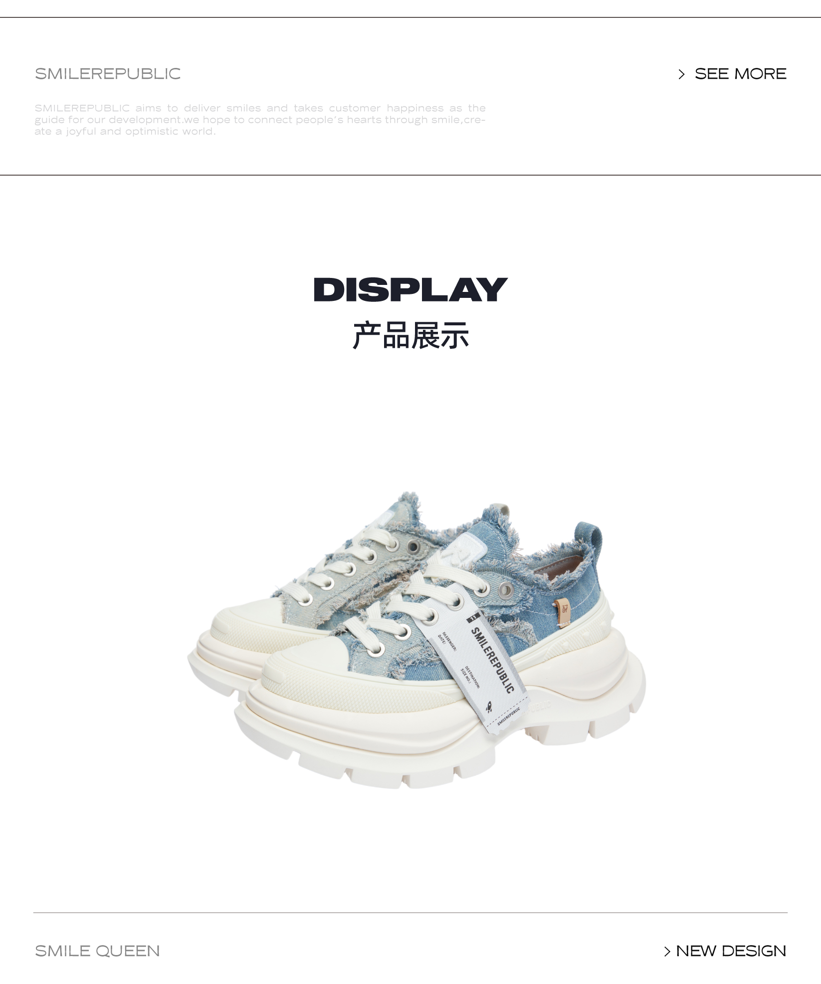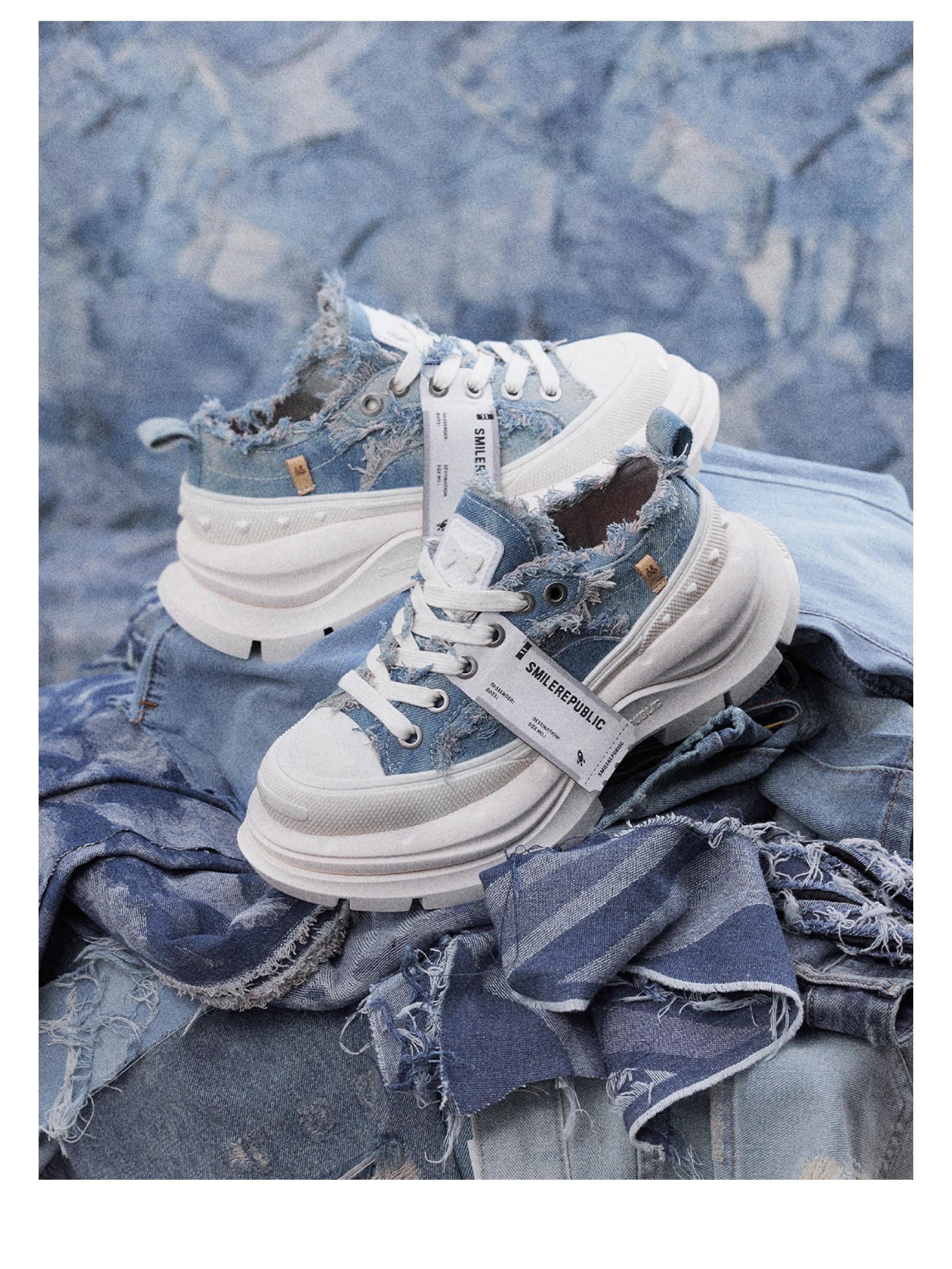 【Double 11】Smilerepublic Classic Low-Top Open Smile 2.0 Thick-Soled Height-Increasing Canvas Shoes Dad Shoes
