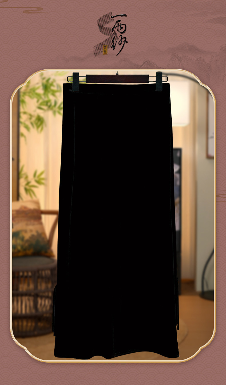 Mulberry Silk Velvet ● Skirt - Black】258175 Shen Haha Mulberry Silk Velvet Skirt 48 Weft