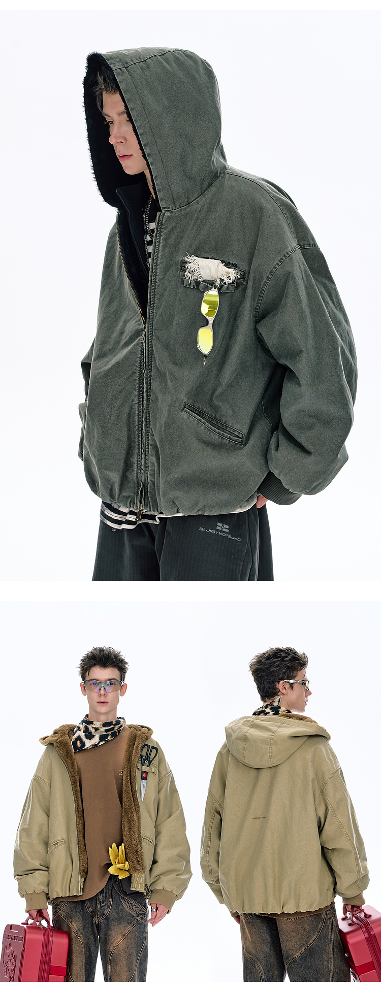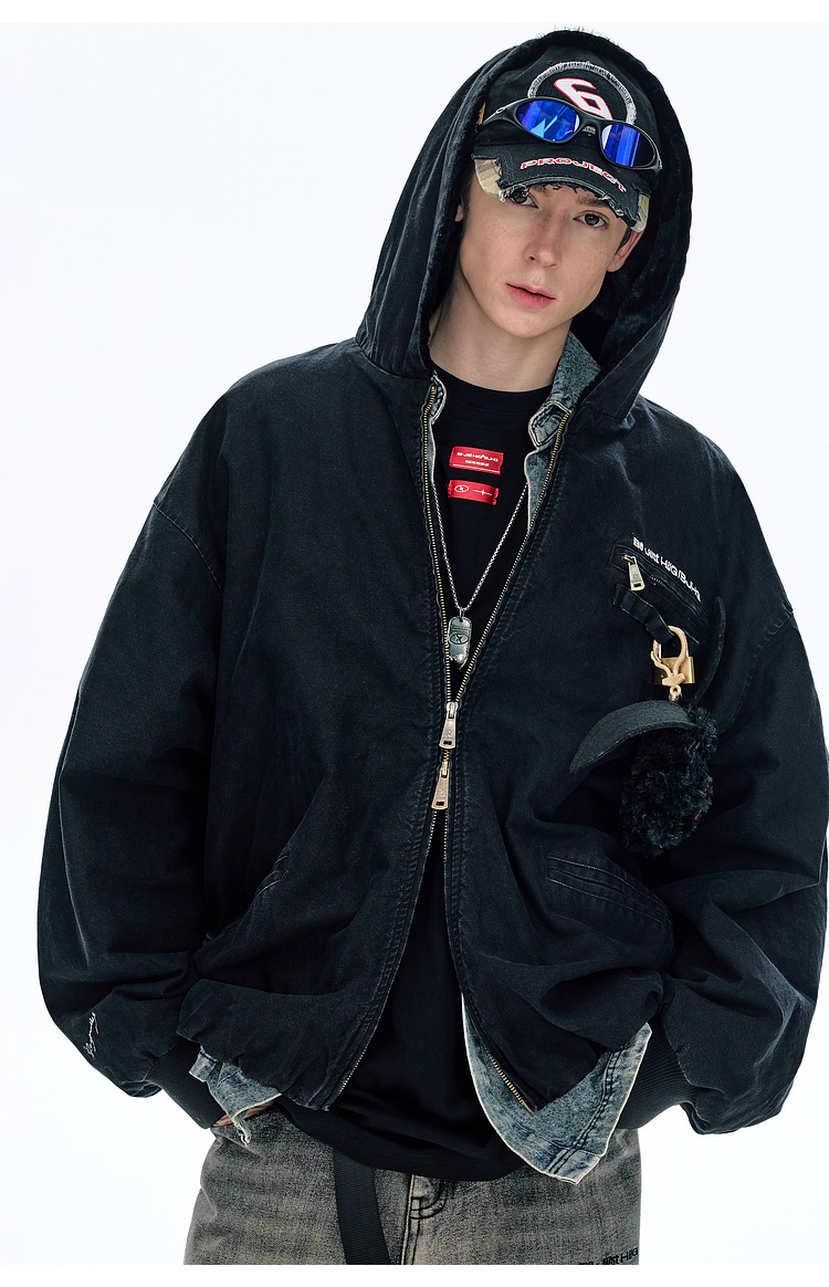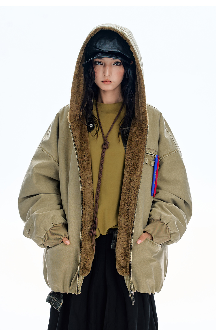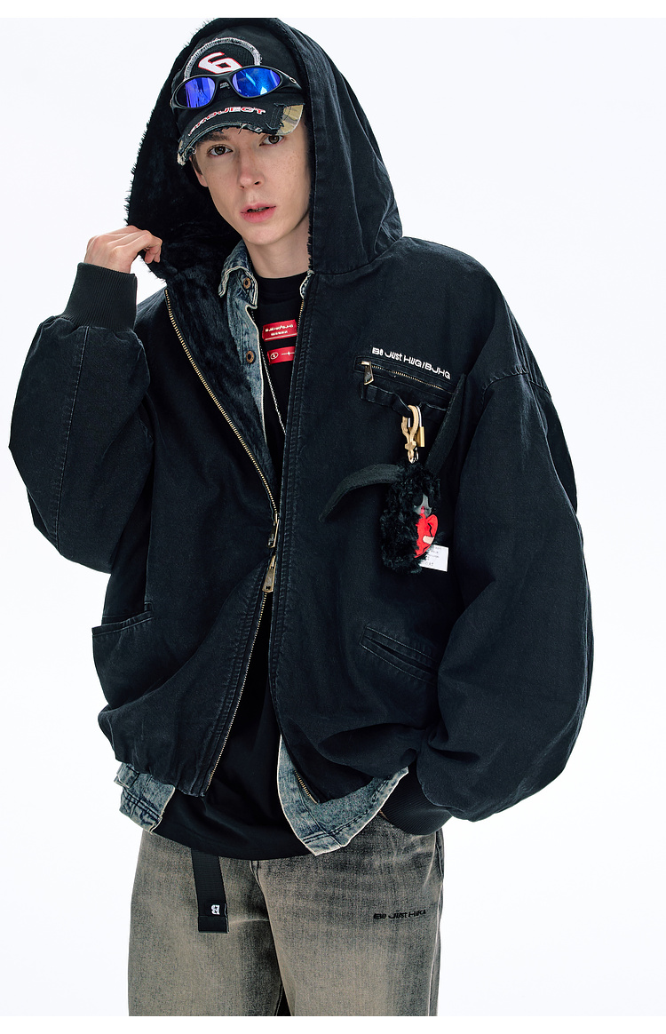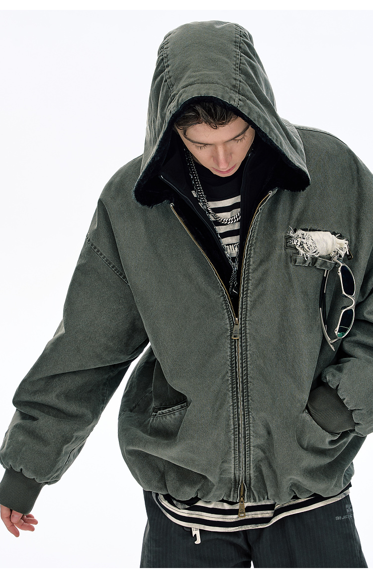 Bjhg Reckless Mountain Carving Workwear Cotton Jacket Men's Winter Canvas Vintage Distressed Thick American-Style Cotton Coat Women's
