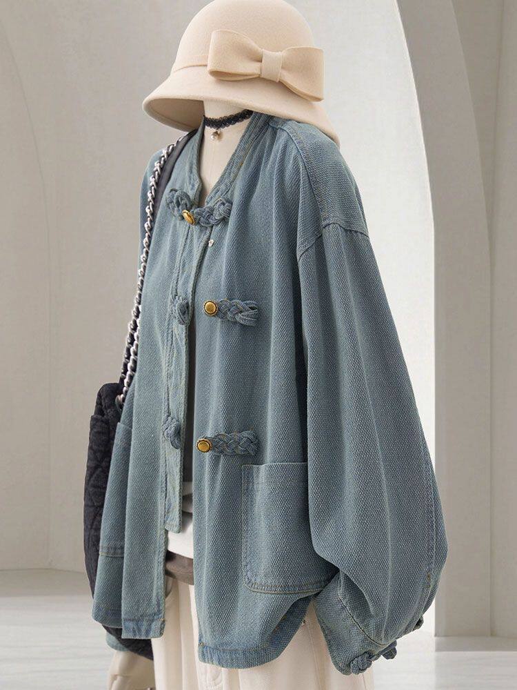 Extra Large Size 150kg New Chinese Style National Style Button Denim Jacket for Men and Women Early Autumn New High-End Jacket Top 2