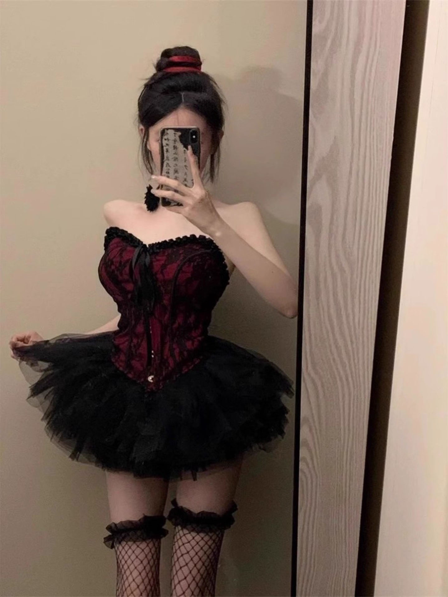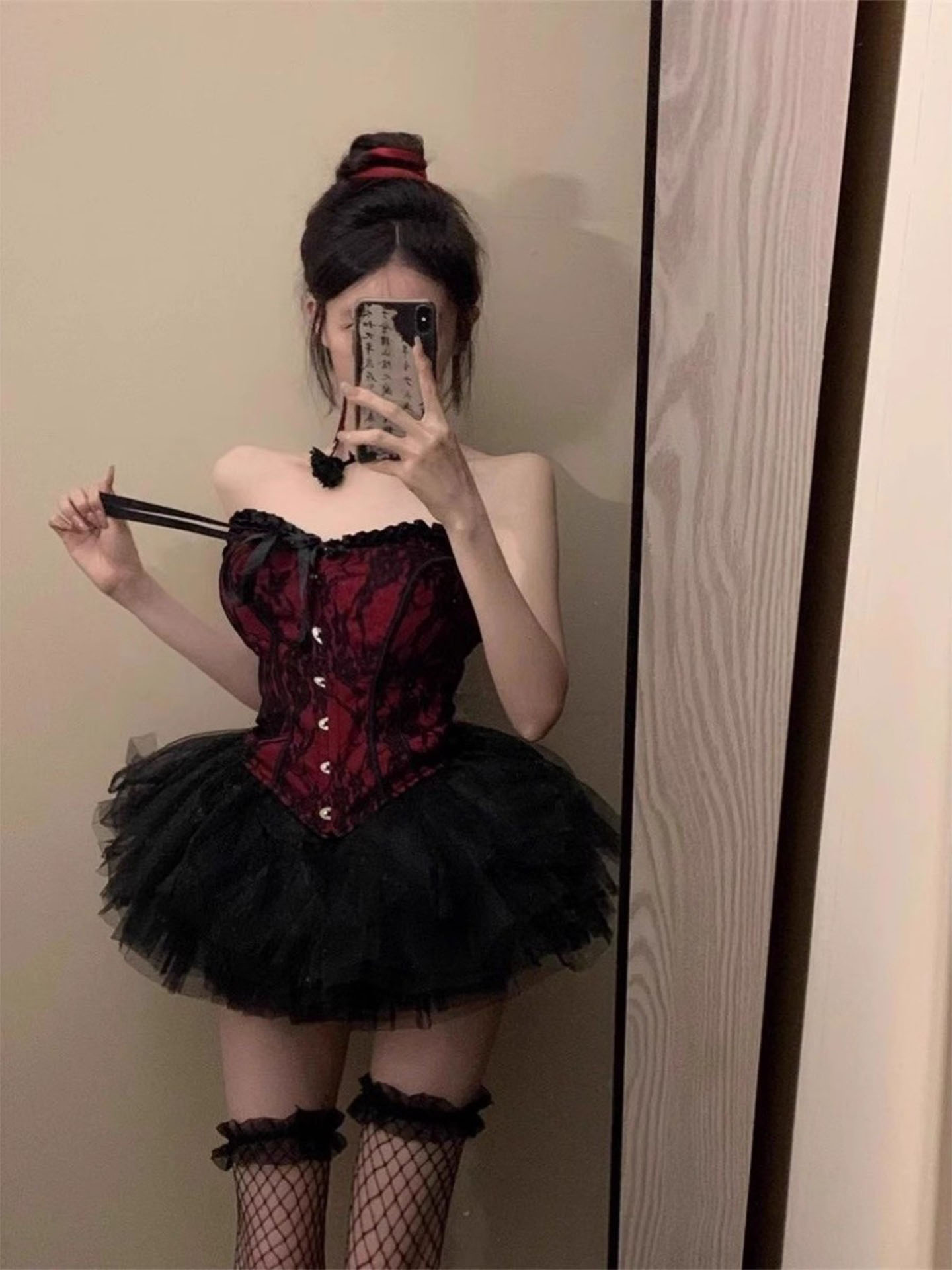 Little Devil* Sexy Hot Girl Halloween Costume Cosplay Tube Top Slimming Puffy Skirt Short Skirt Outfit for Women