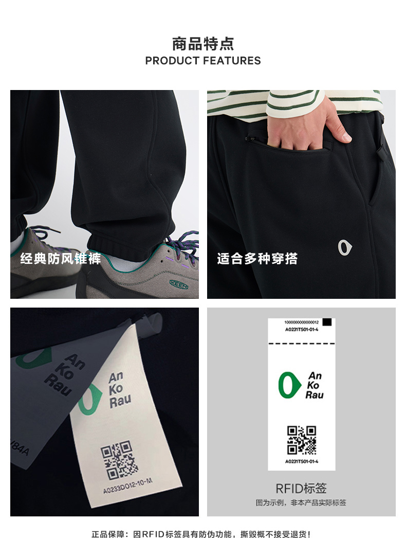 Men's New Winter Outdoor Windproof and Warm Knitted Coated Fabric Tapered Pants | Ankorau an Gao Ruo