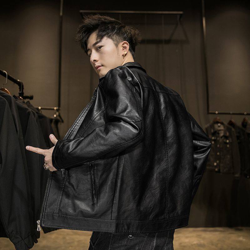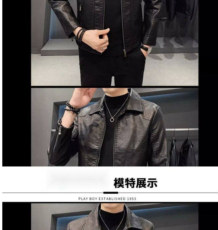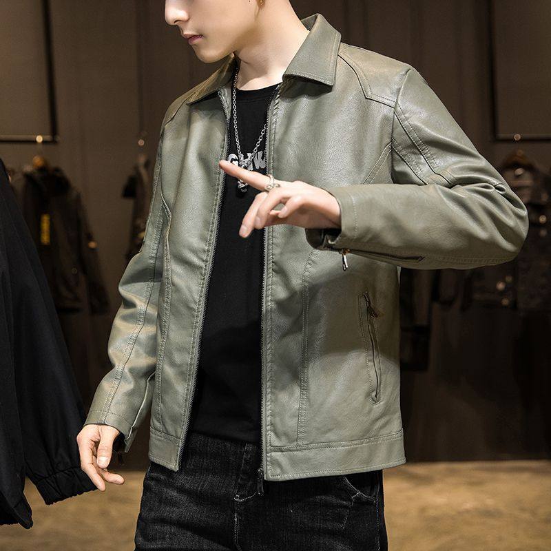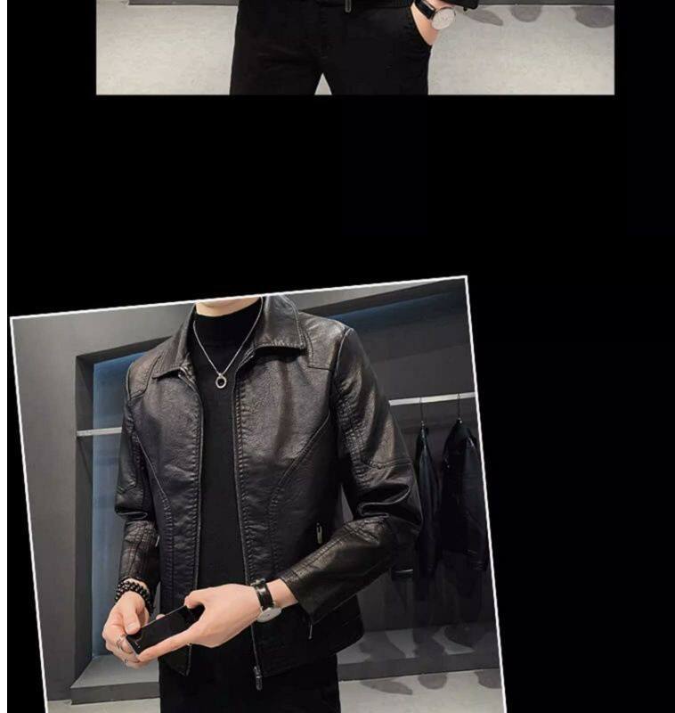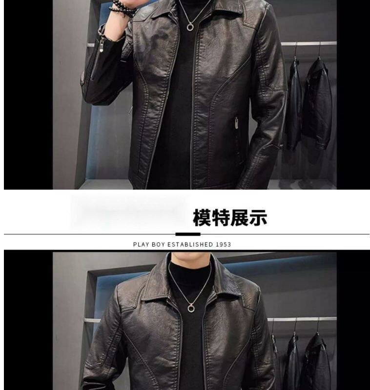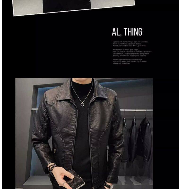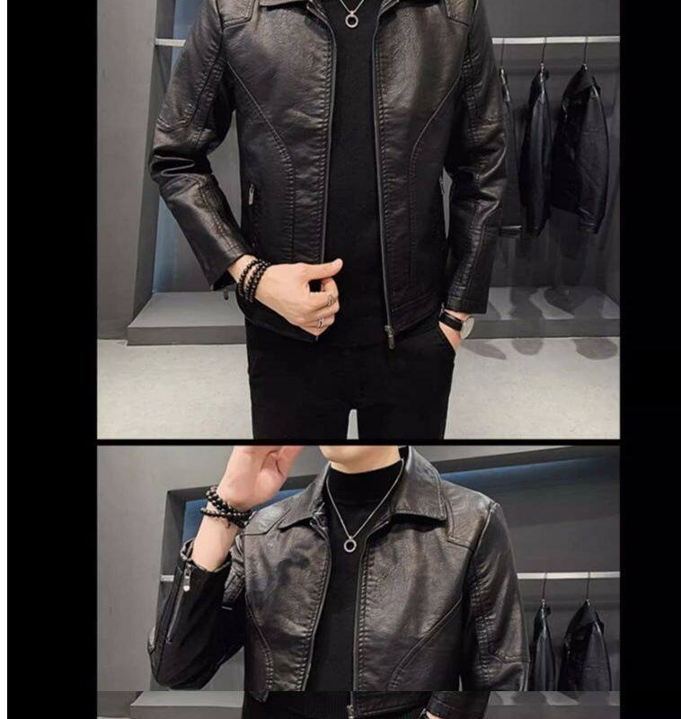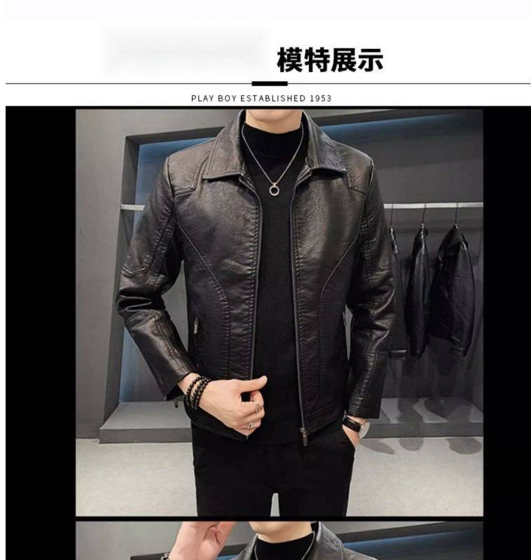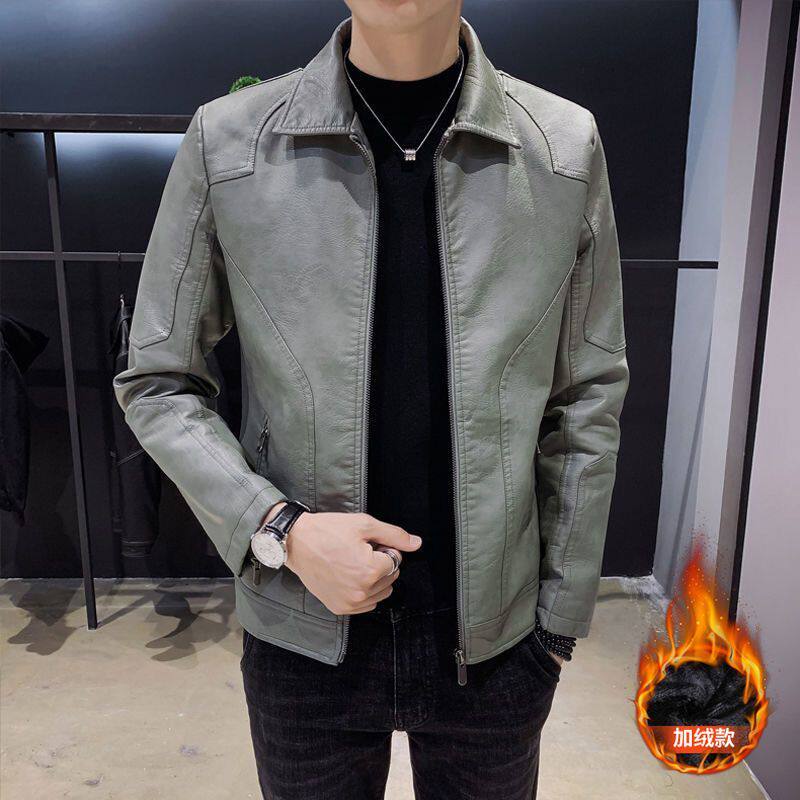Men's Genuine Leather Jacket, New Slim-Fit Leather Jacket, Trendy Korean Style Casual Fleece-Lined Thickened Lapel Biker Jacket