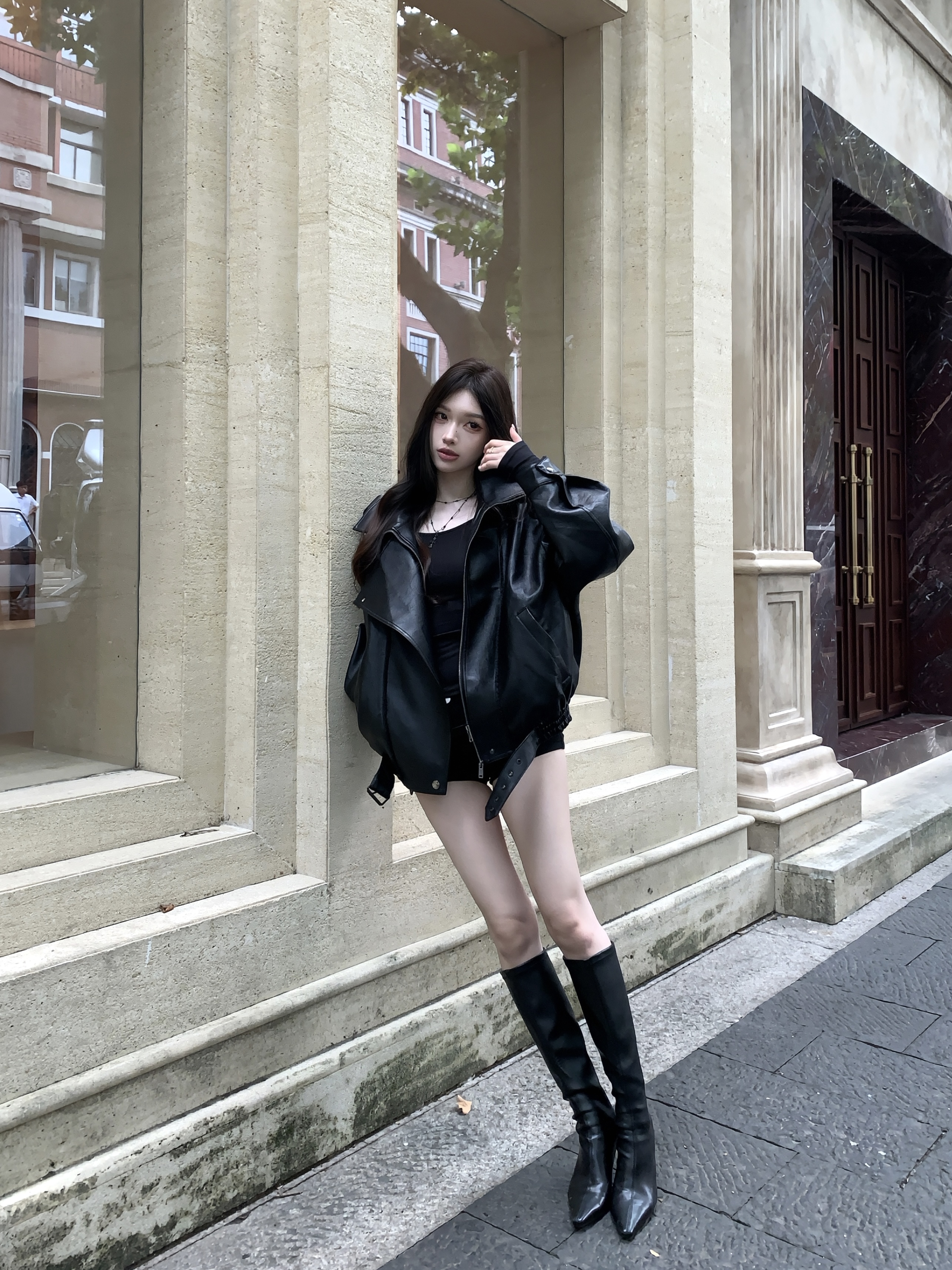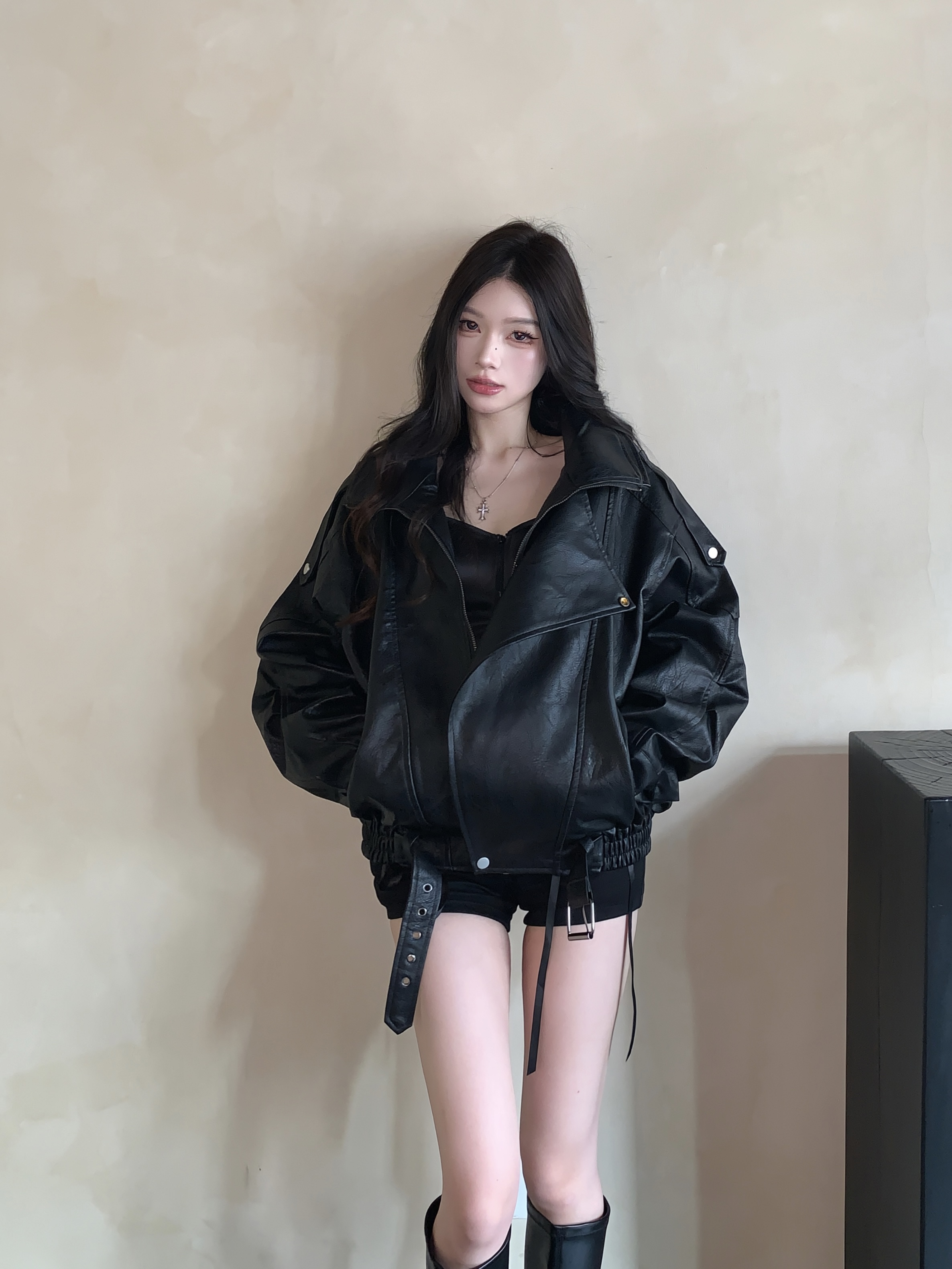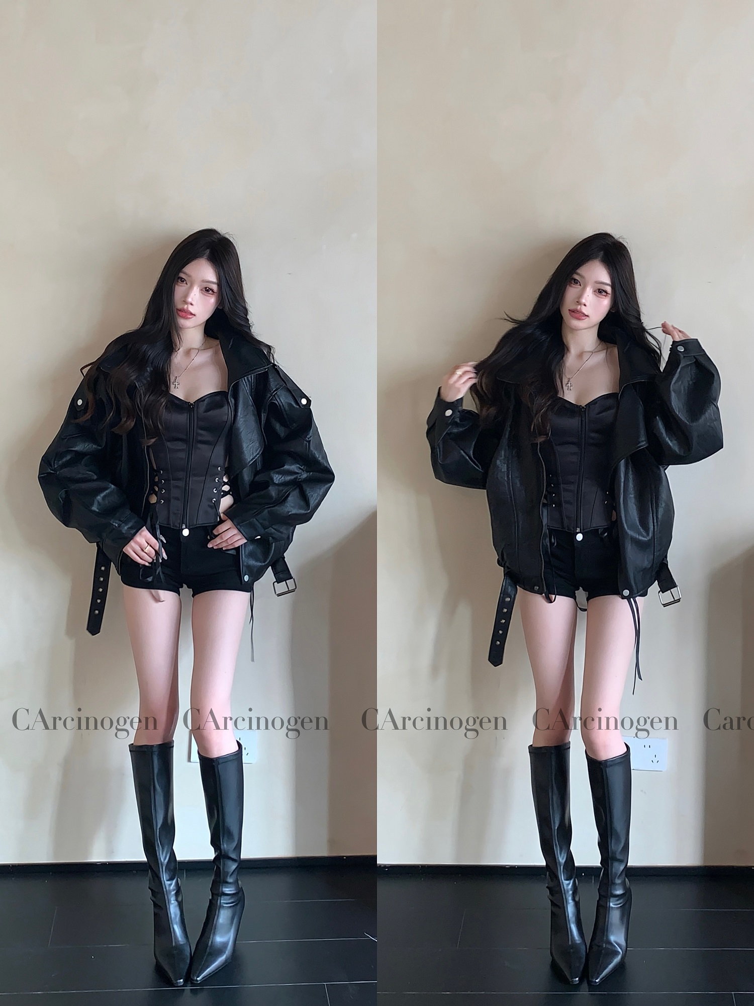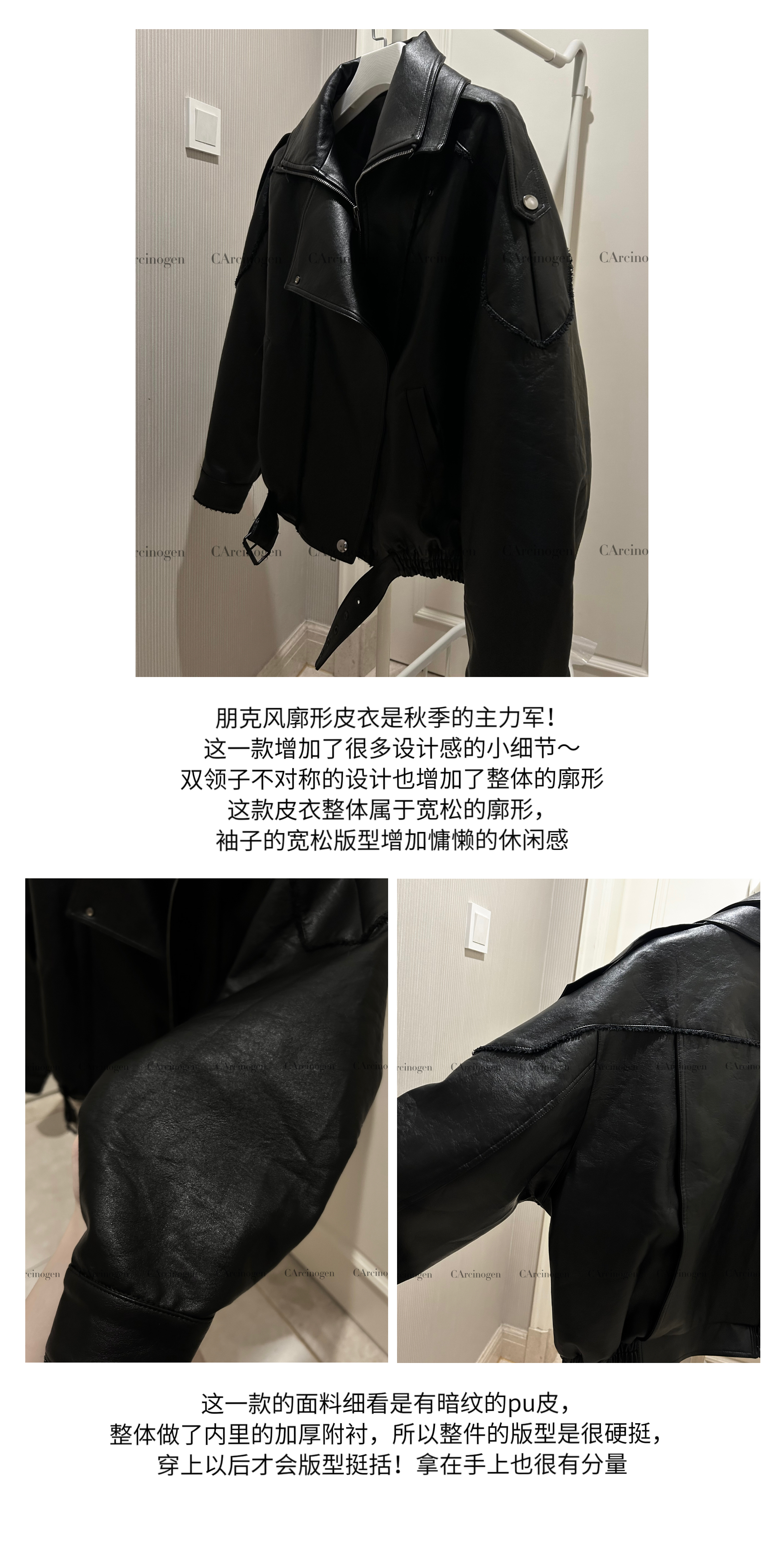 Carcinogen* Autumn Black Pu Loose Retro Punk Distressed Leather Jacket