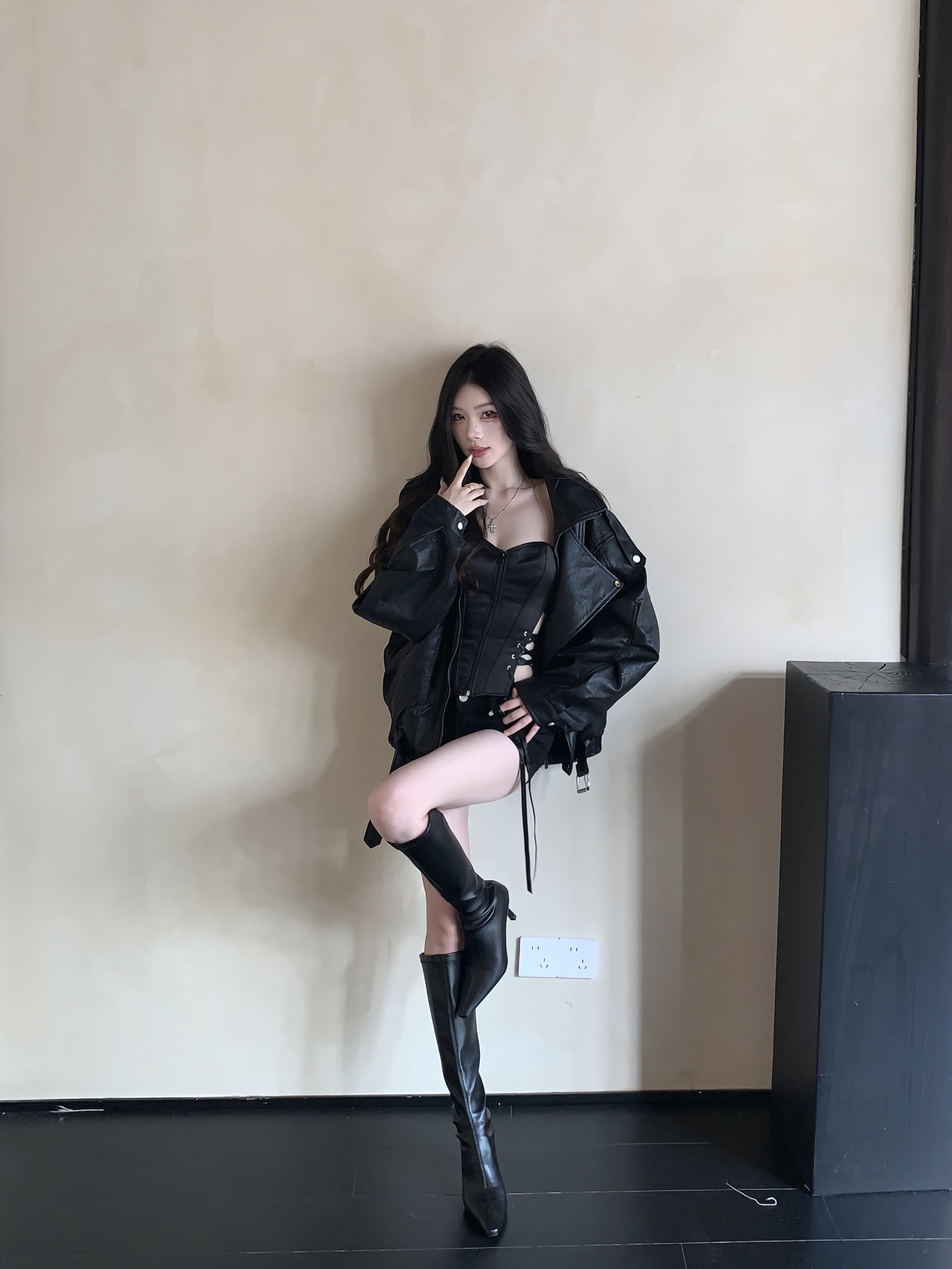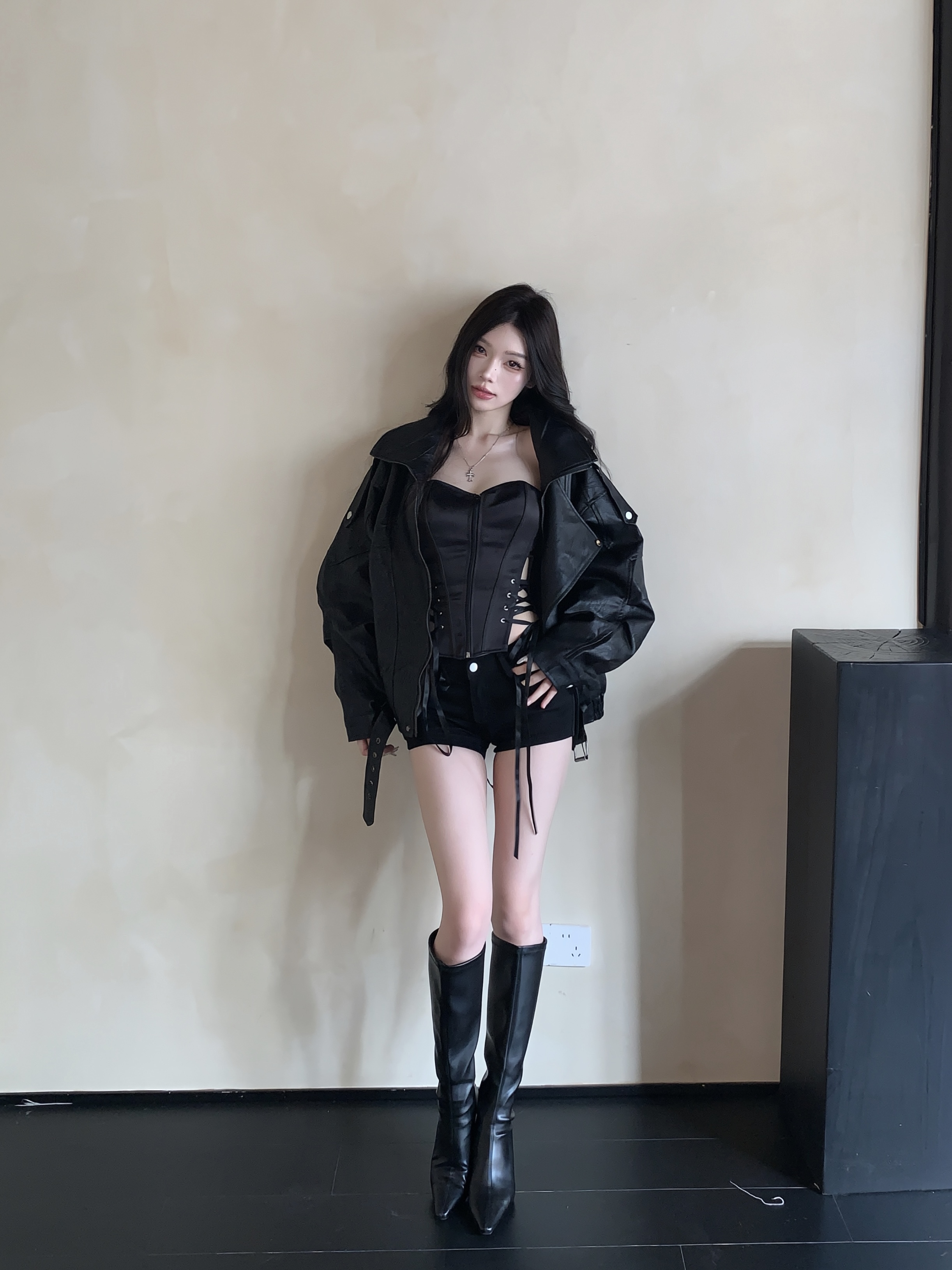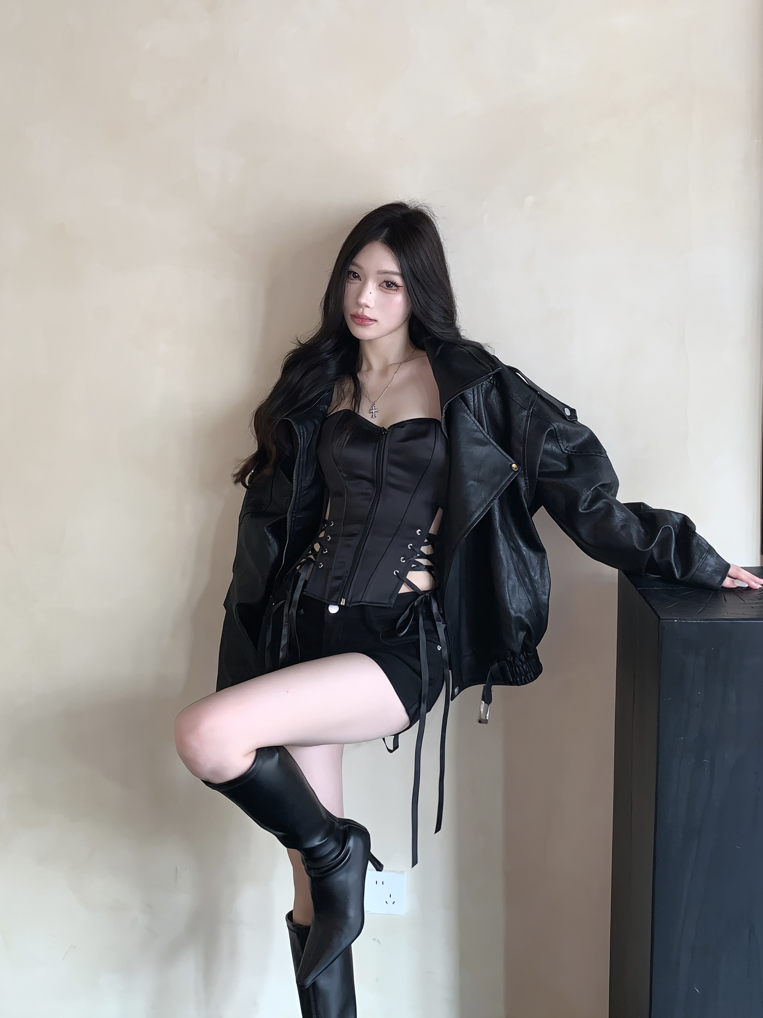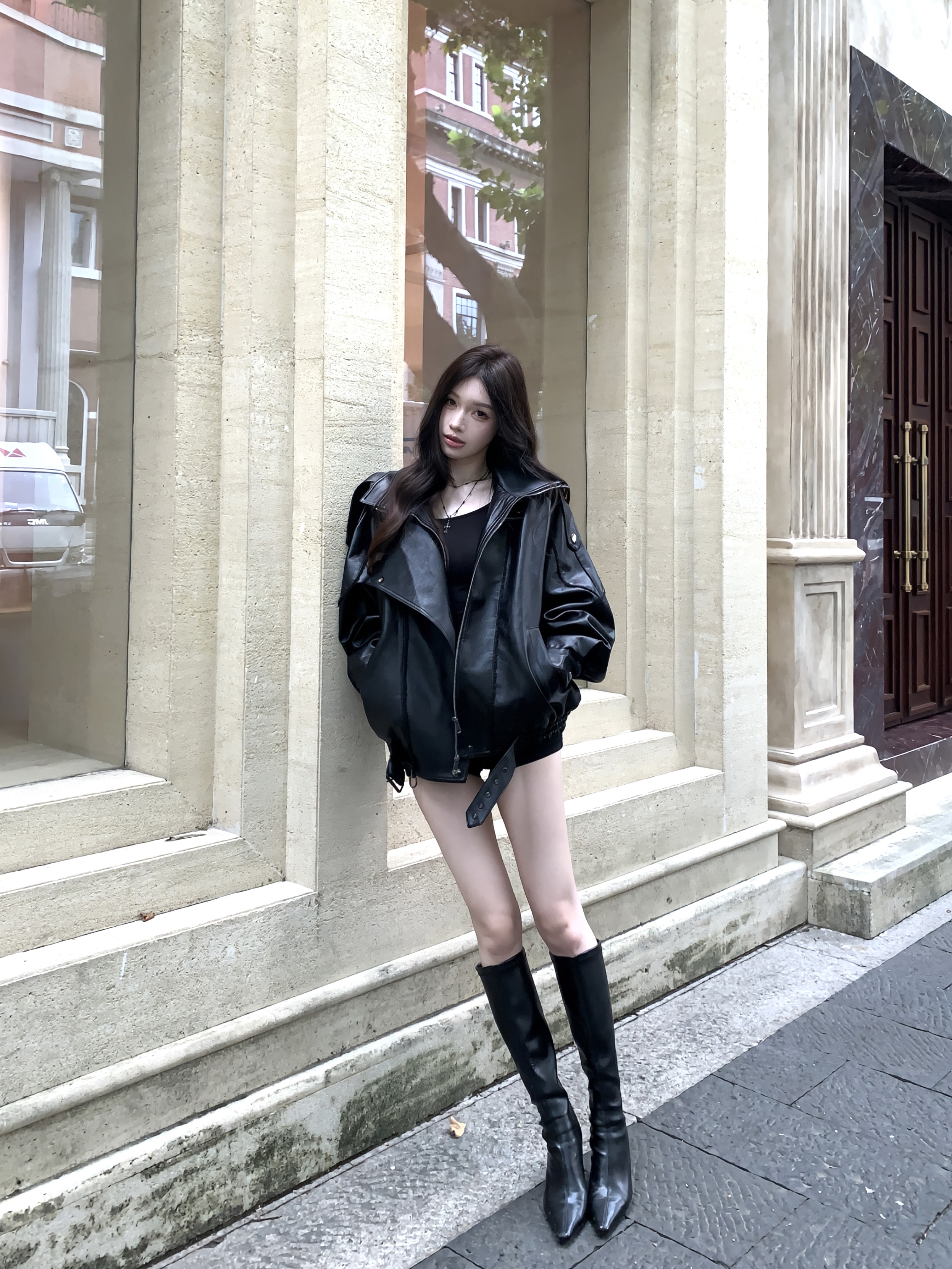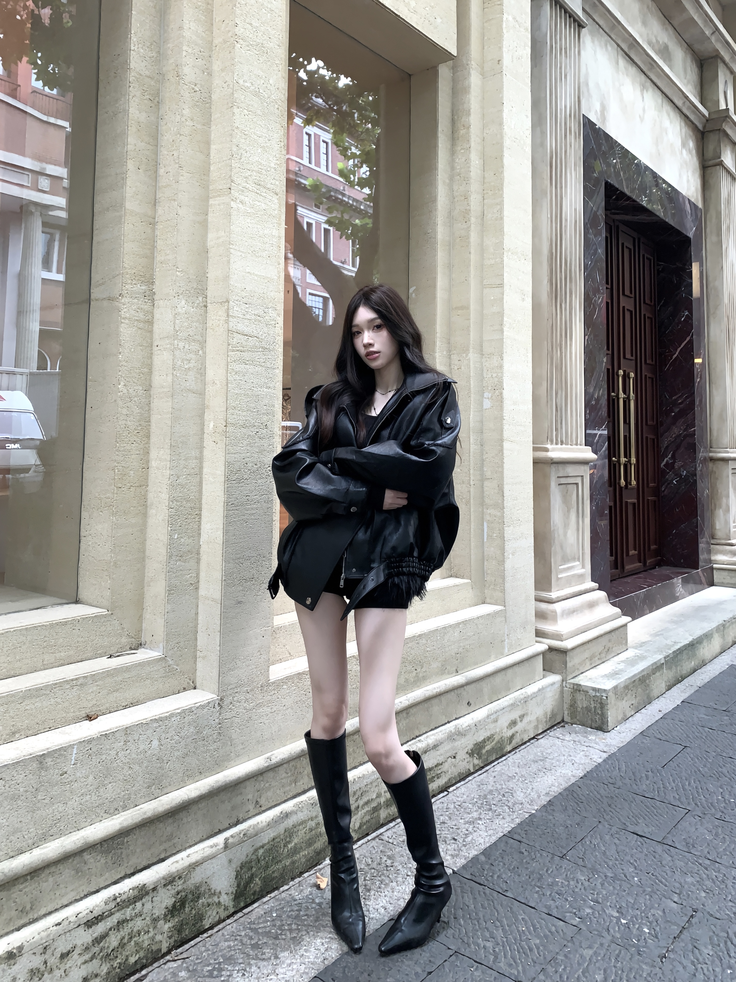 Carcinogen* Autumn Black Pu Loose Retro Punk Distressed Leather Jacket