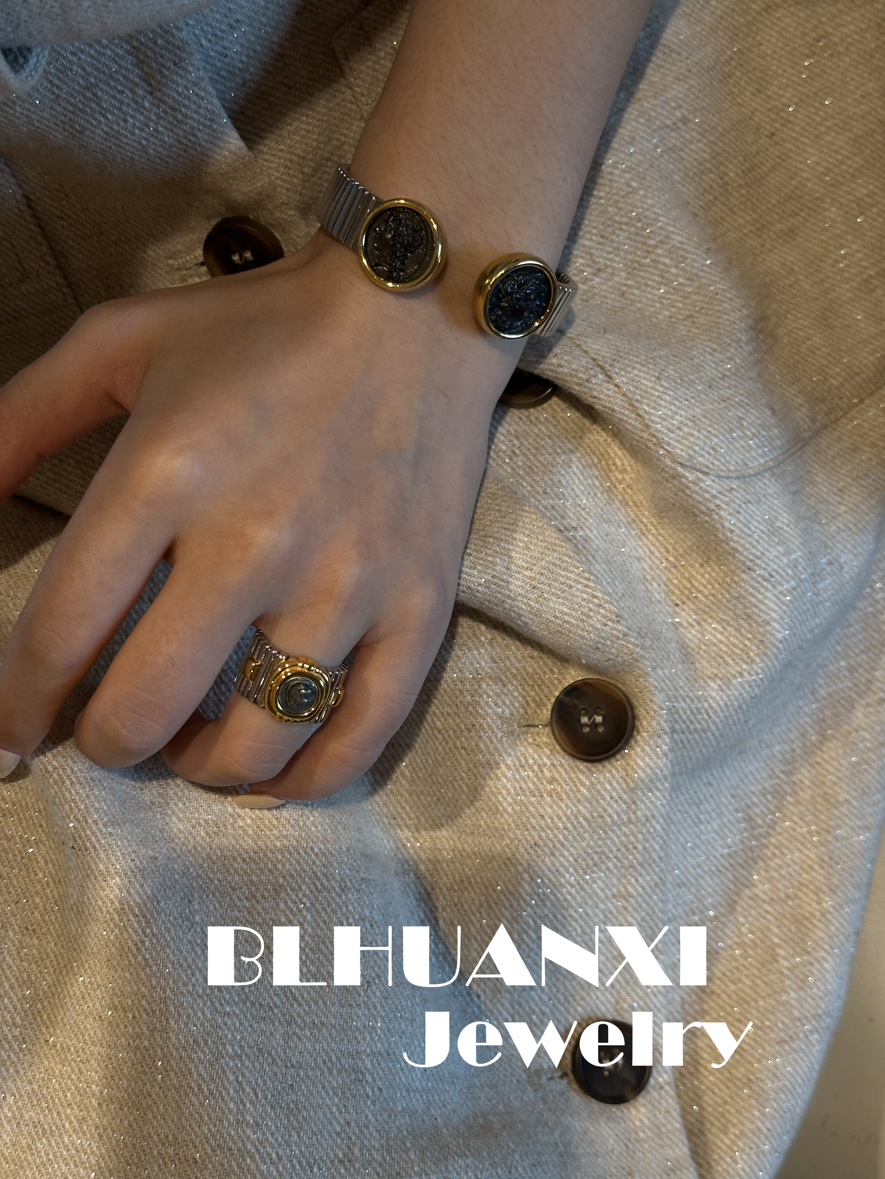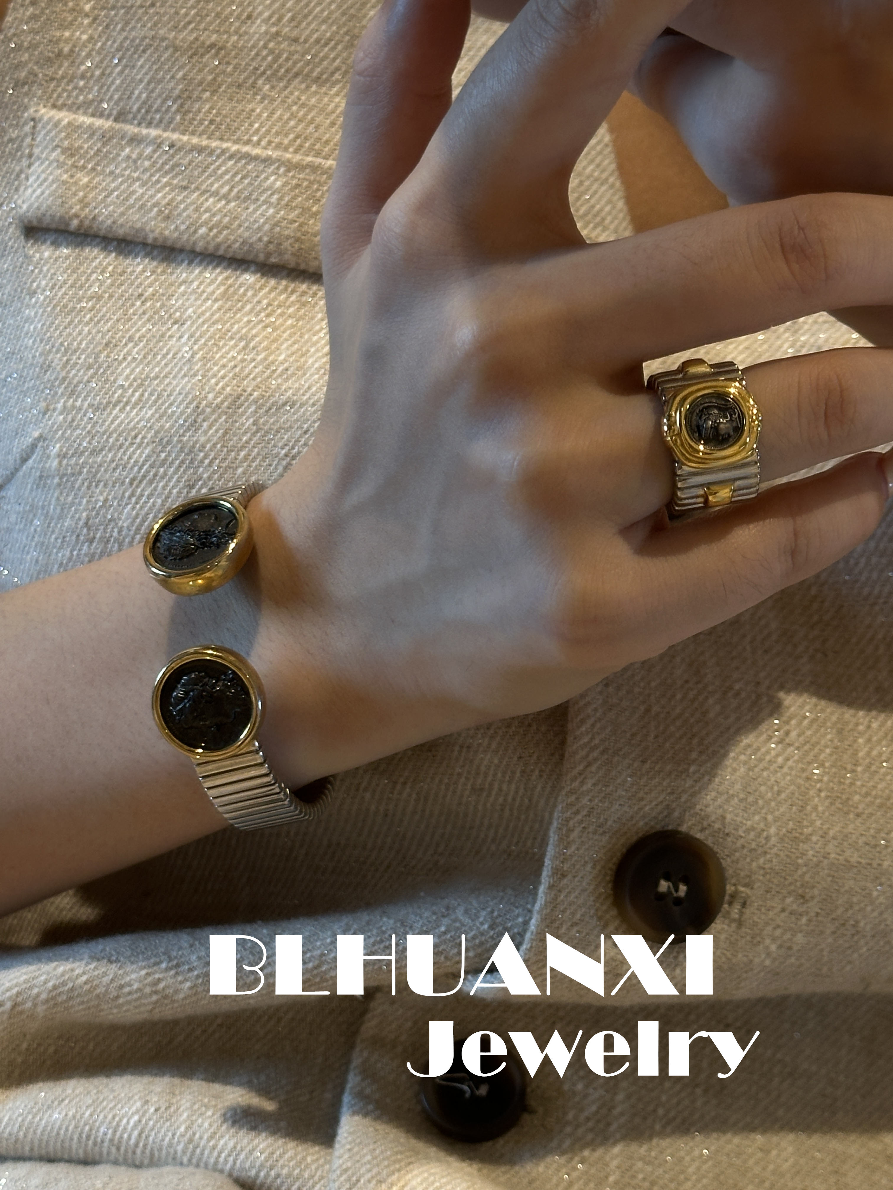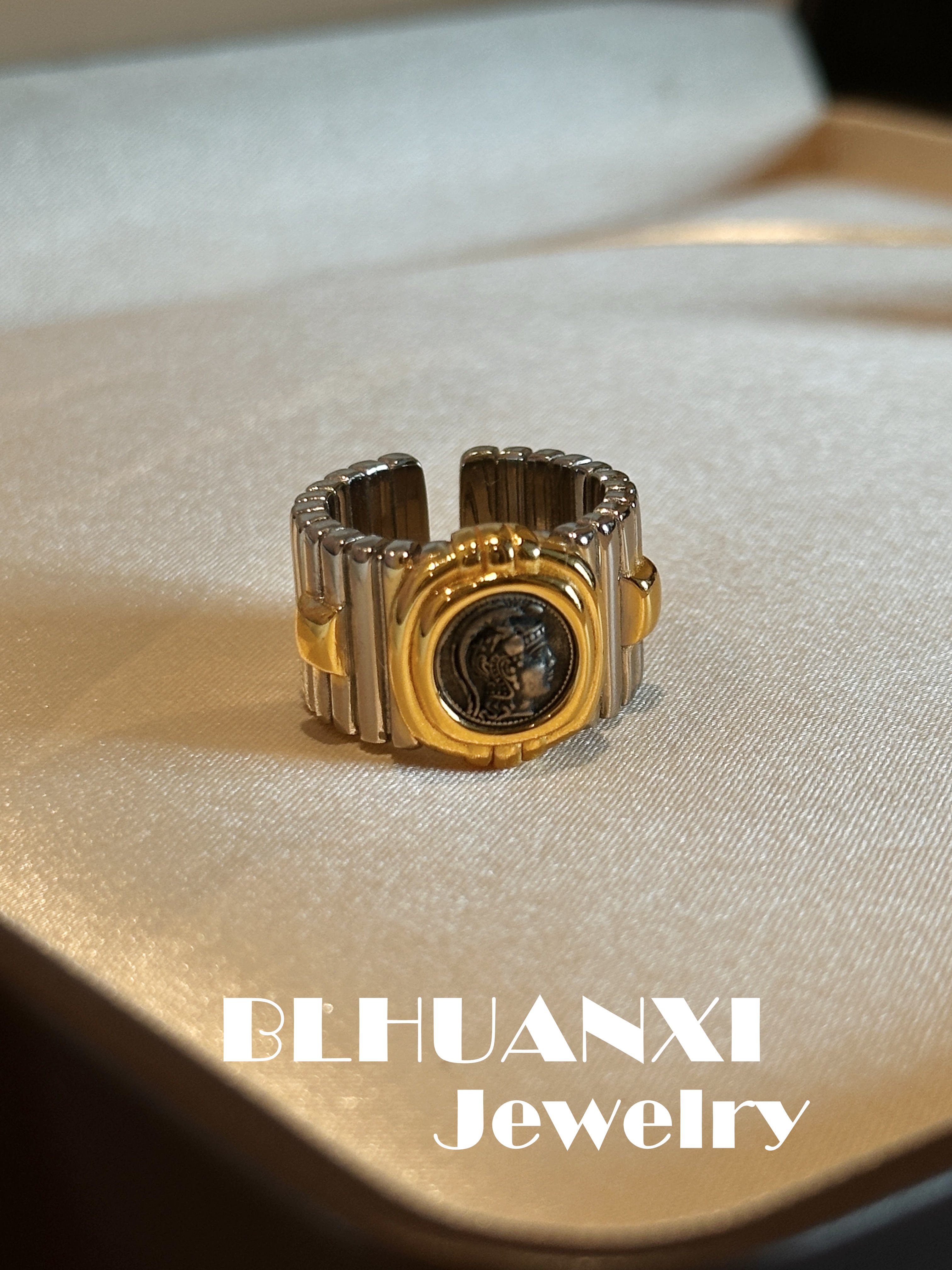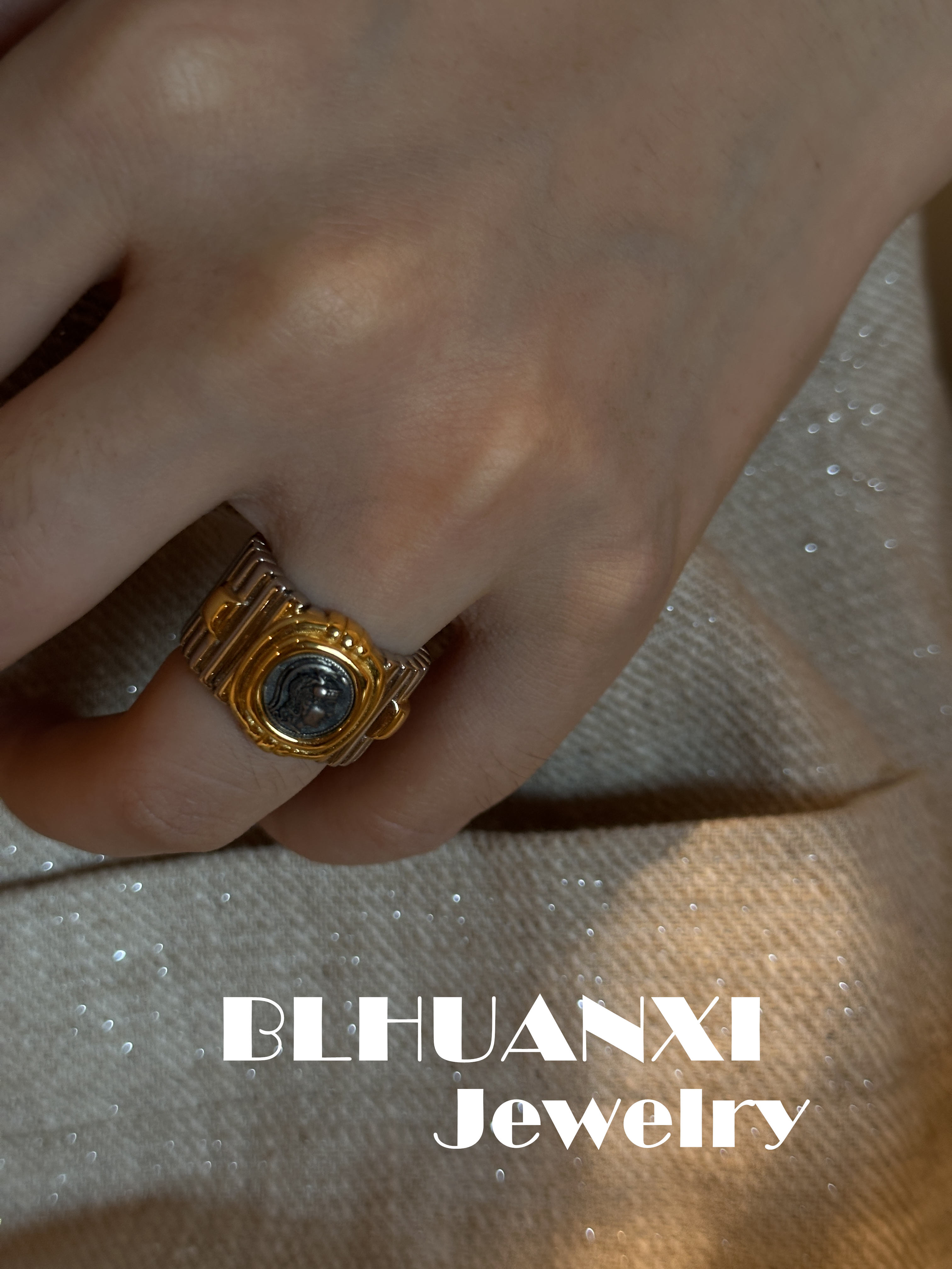 [Look for Joy] 925 silver gold-plated Heavy weight classic Athena thick gold ancient coin ring 19g
