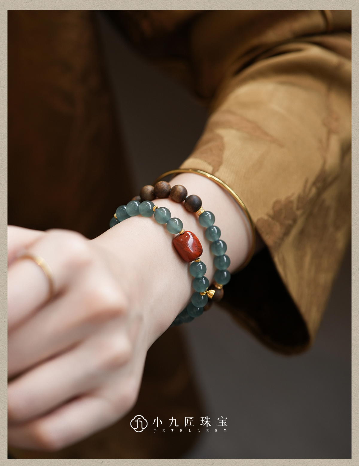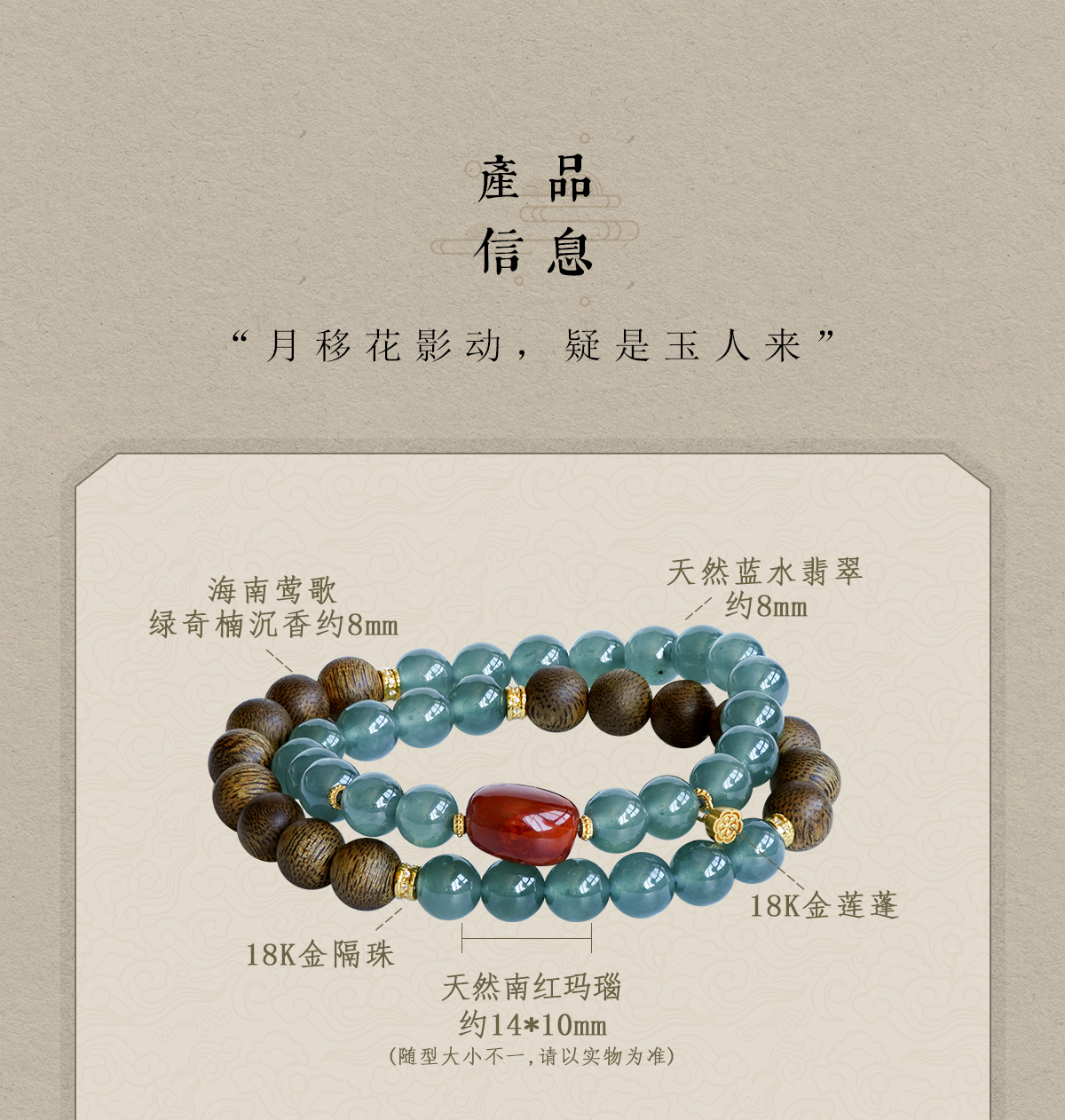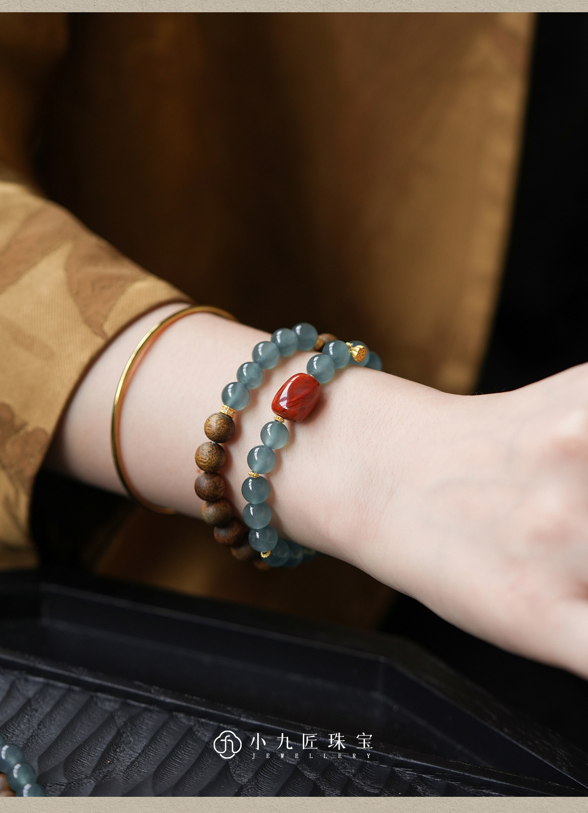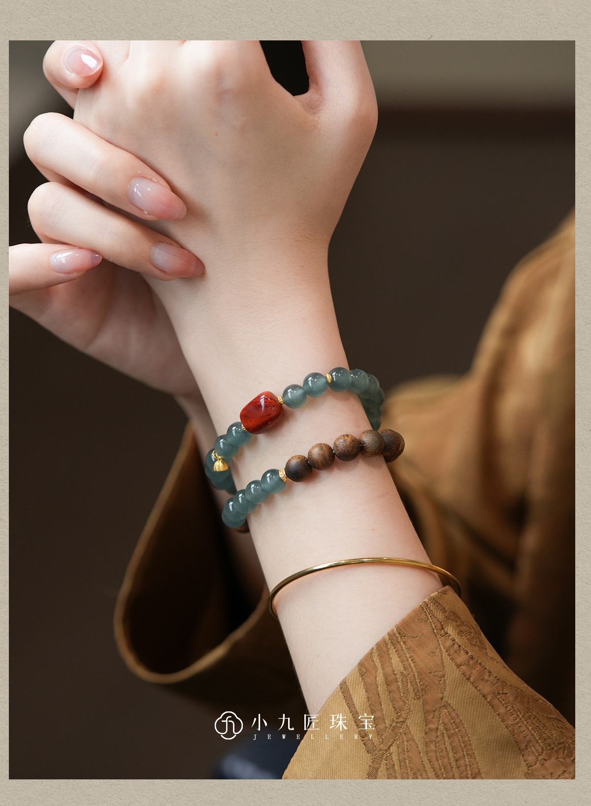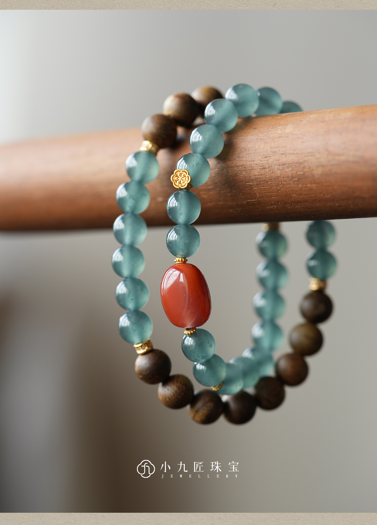 Fanyu Natural Blue Water Ice Jade Double Circle Bracelet for Women 18K Gold Southern Red Jade Agarwood Bracelet