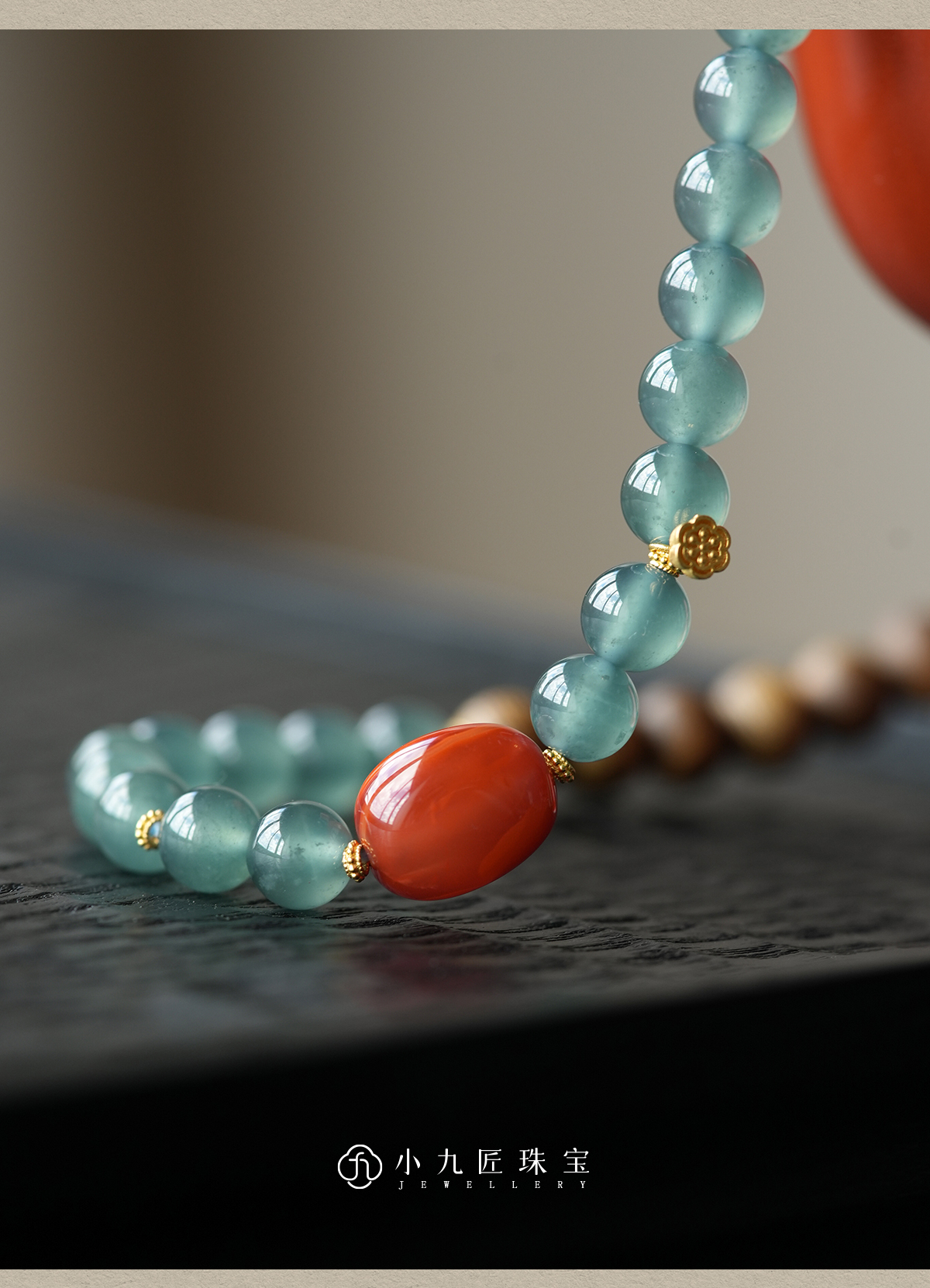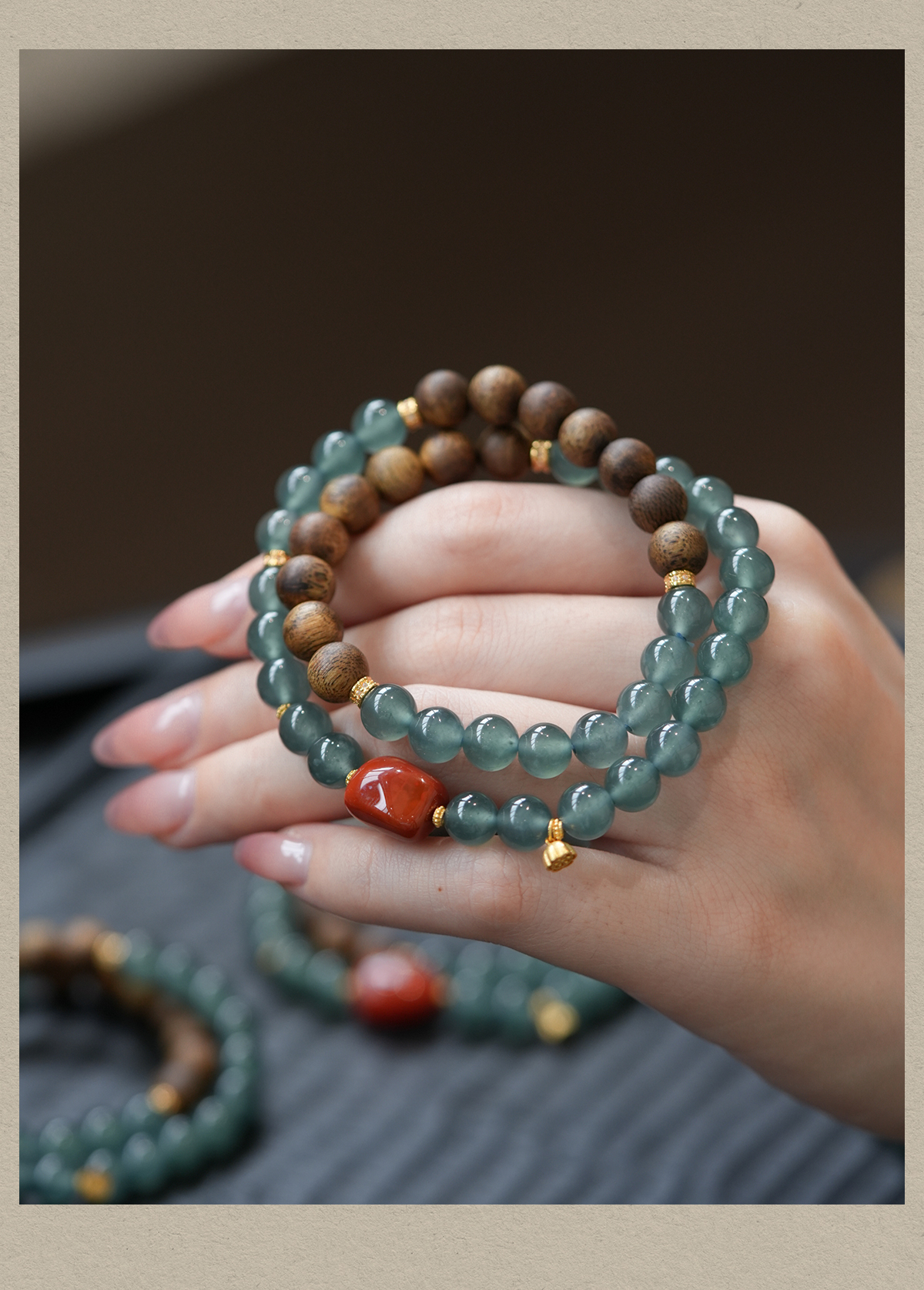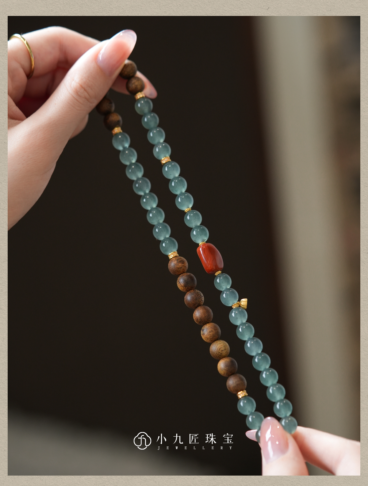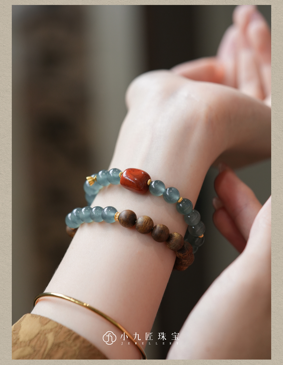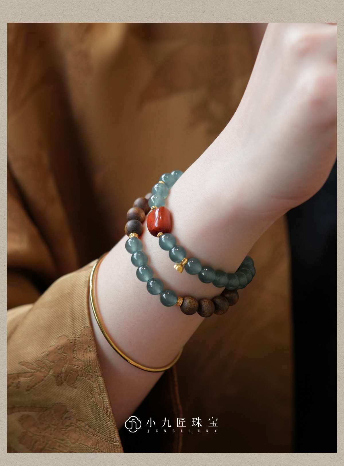 Fanyu Natural Blue Water Ice Jade Double Circle Bracelet for Women 18K Gold Southern Red Jade Agarwood Bracelet