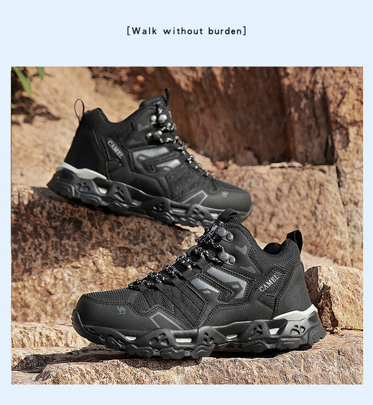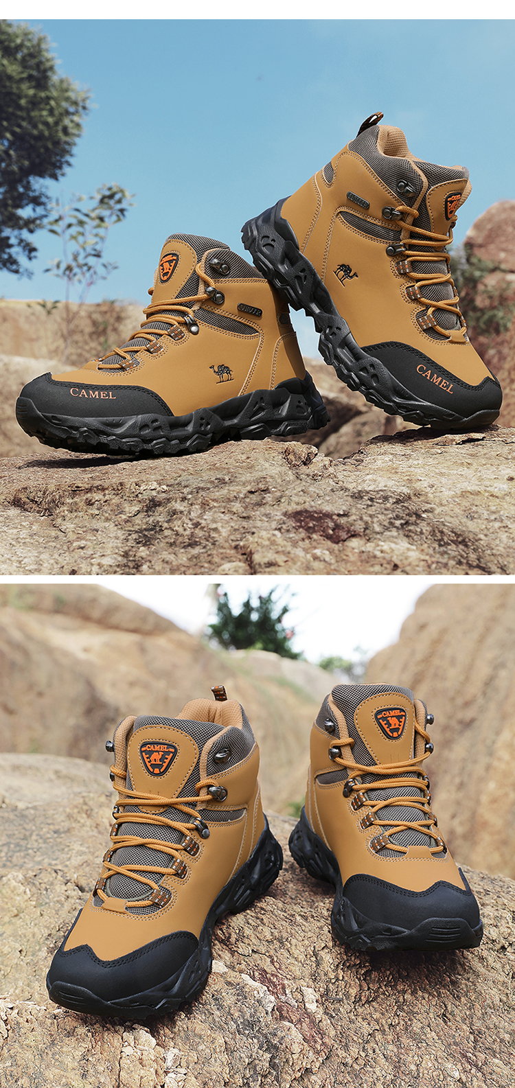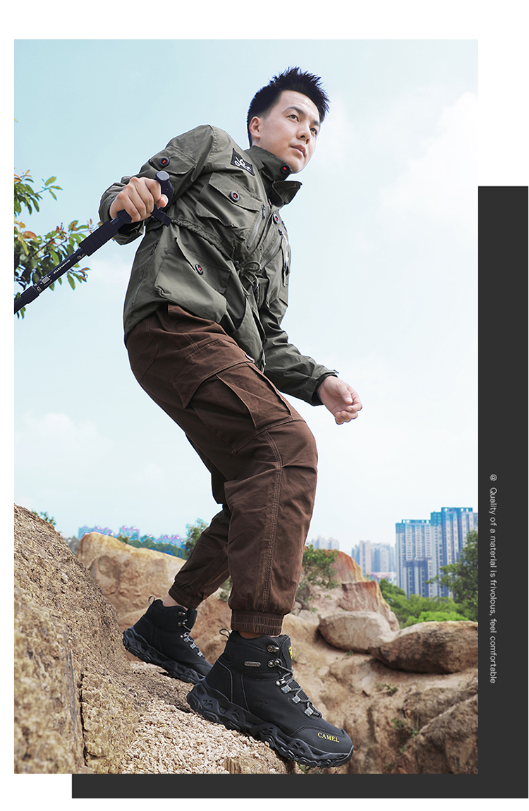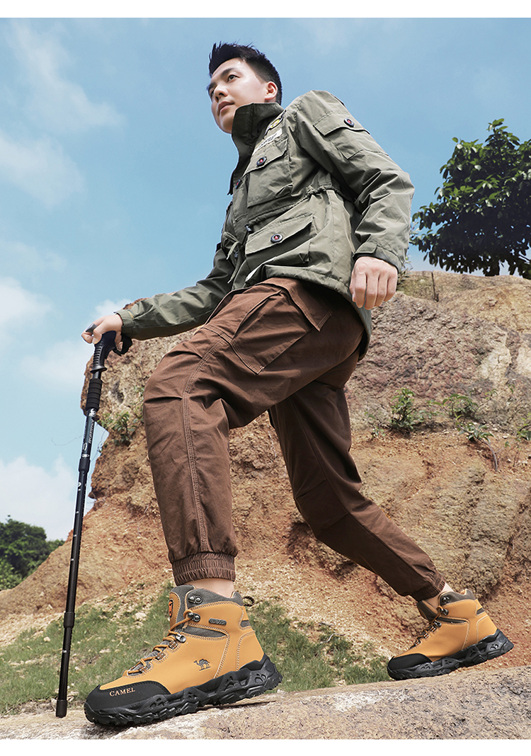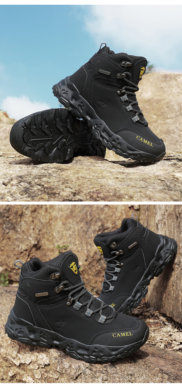 Camel Men's High-Top Outdoor Hiking Shoes, Waterproof, Non-Slip, Autumn and Winter Fleece-Lined Cotton Shoes, Walking Shoes, Casual Sports Shoes