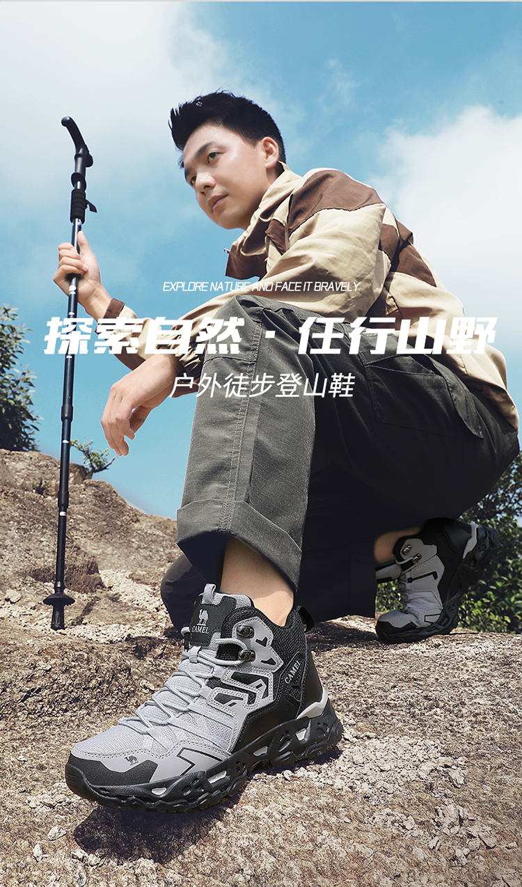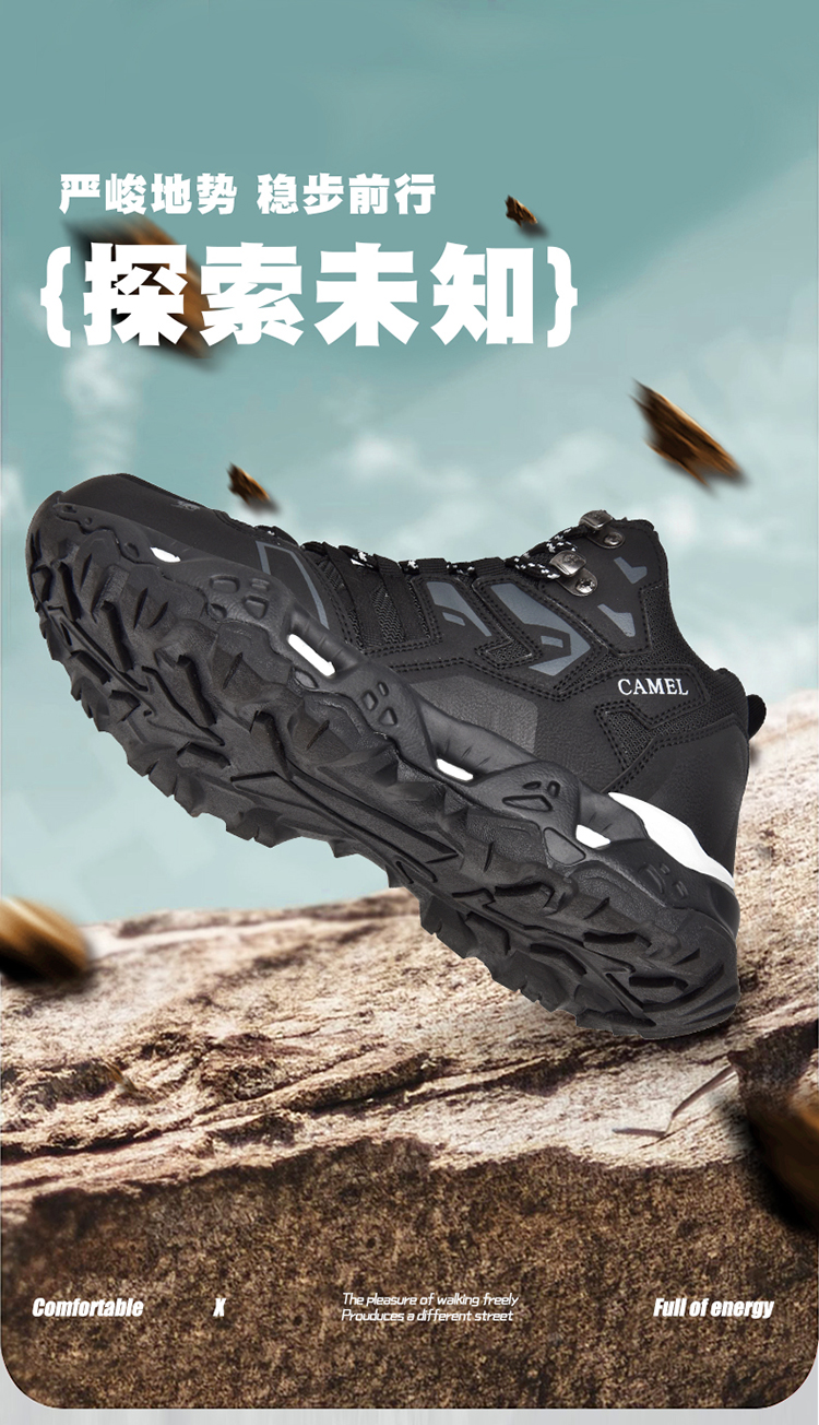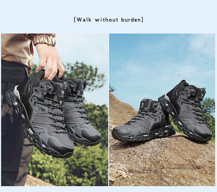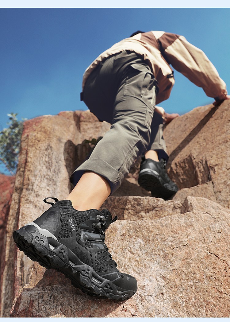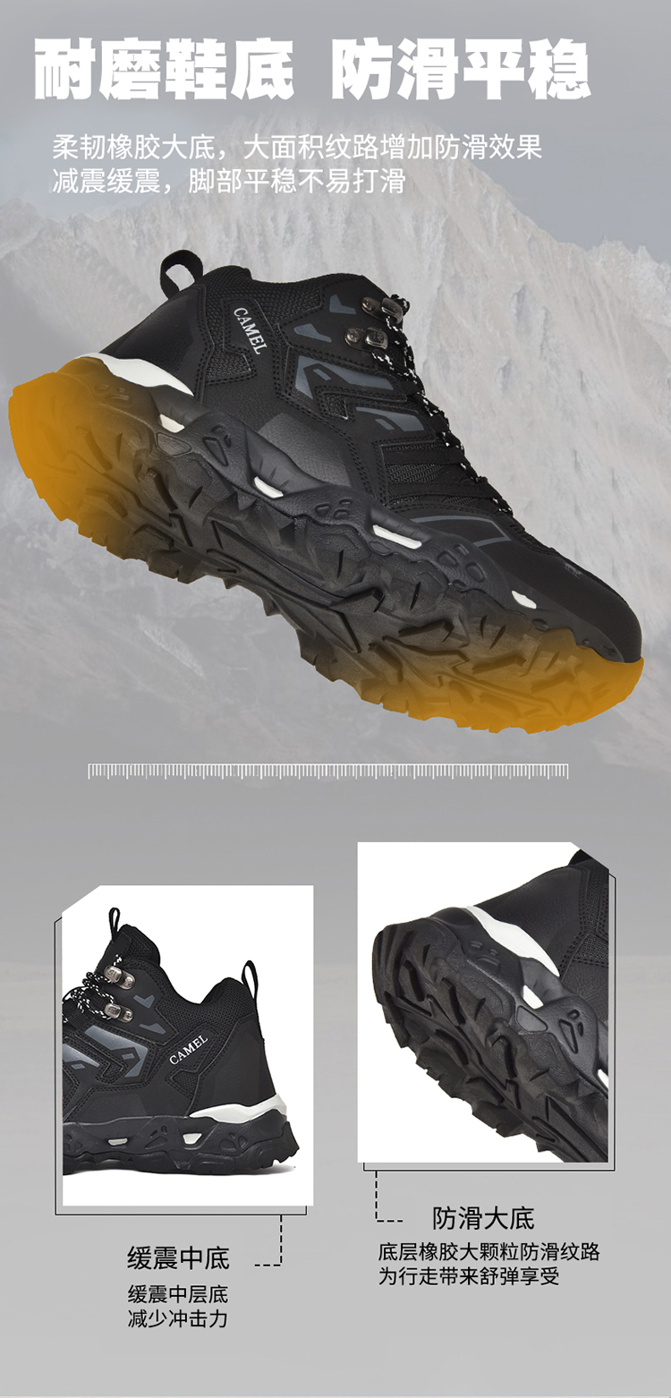 Camel Men's High-Top Outdoor Hiking Shoes, Waterproof, Non-Slip, Autumn and Winter Fleece-Lined Cotton Shoes, Walking Shoes, Casual Sports Shoes